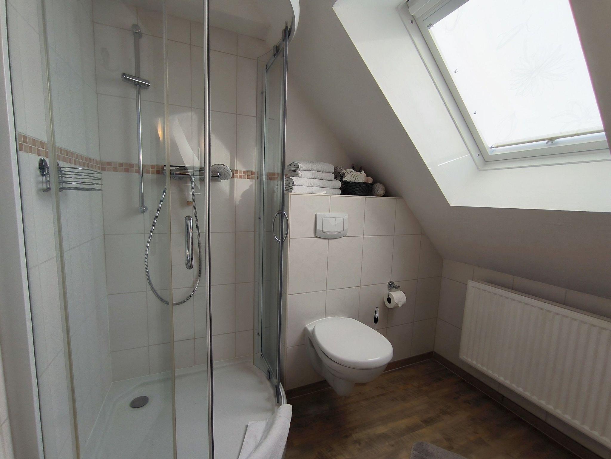 Im Apartment 1 (mit separater Küche) erwartet Sie ein Schlafzimmer, ein Bad und eine separate Küche: das Schlafzimmer ist mit Doppelbett, TV, Schrank und Sitzecke ausgestattet. Das Bad verfügt über eine Dusche, einen Waschtisch, ein WC und Tageslicht. Die Küche ist bestens ausgestattet mit Wasserkocher, Kaffeemaschine, Kühlschrank, Herd und Backofen sowie einer Mikrowelle und einem Esstisch für zwei Personen.