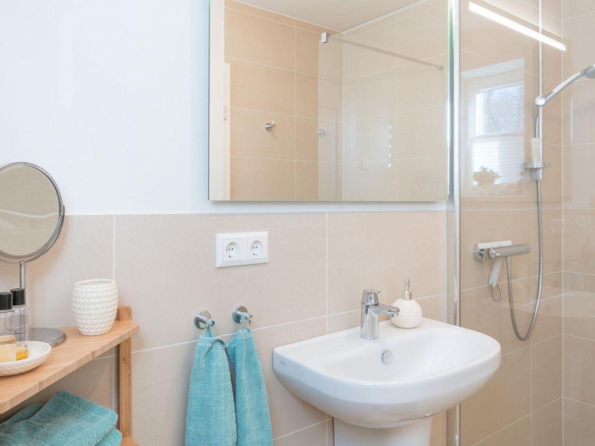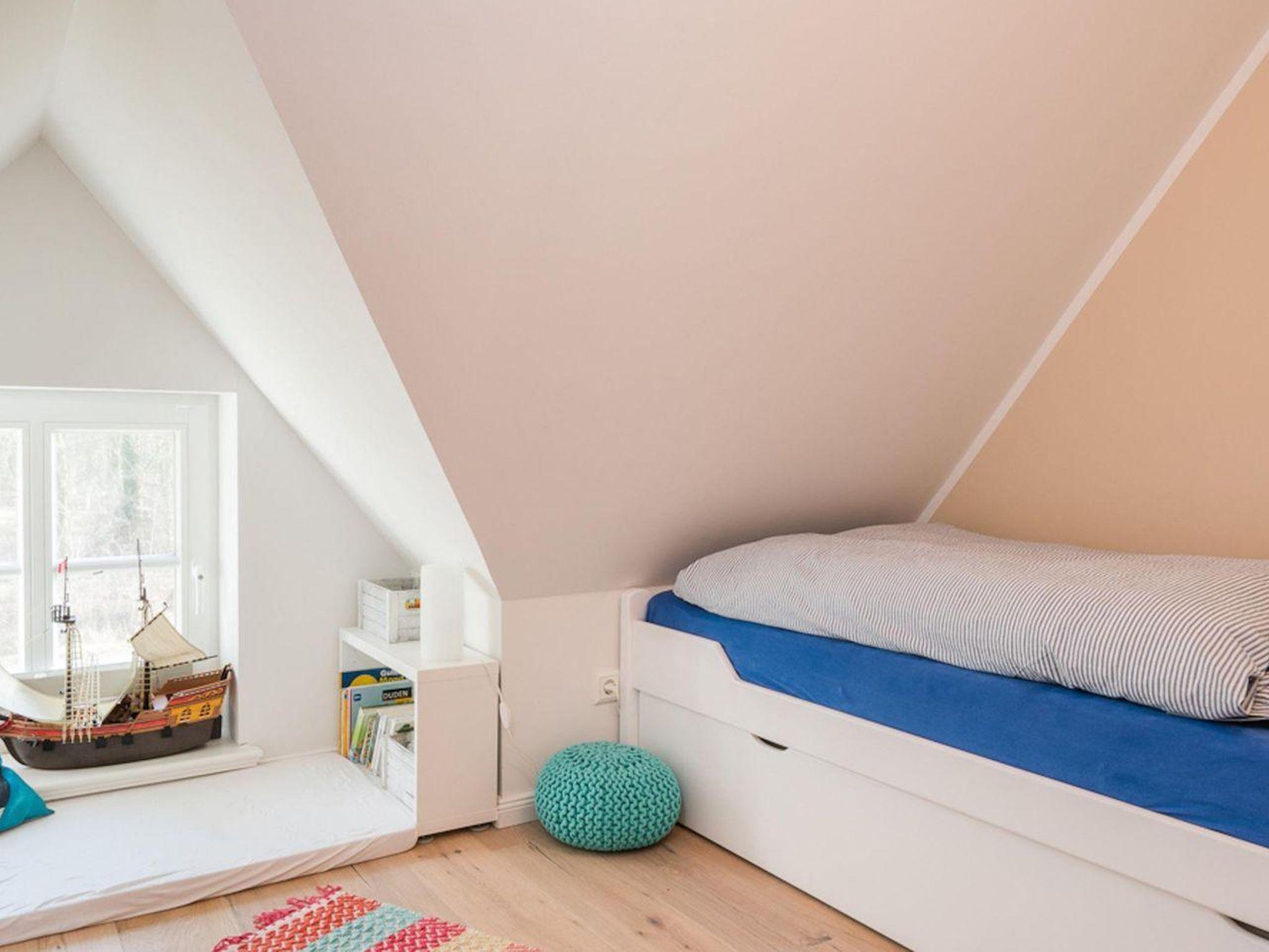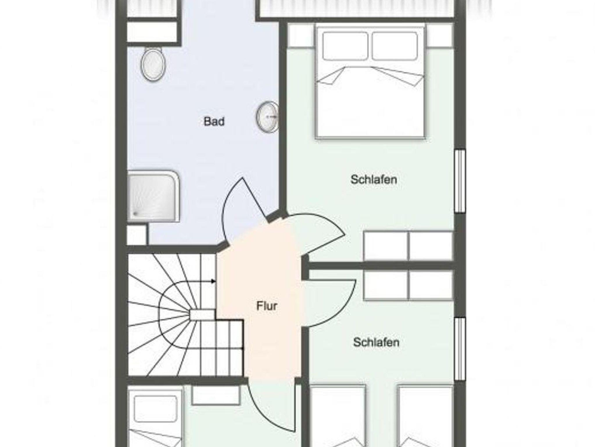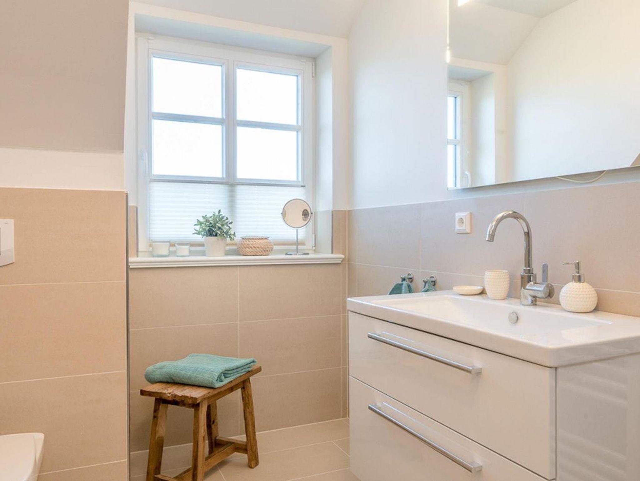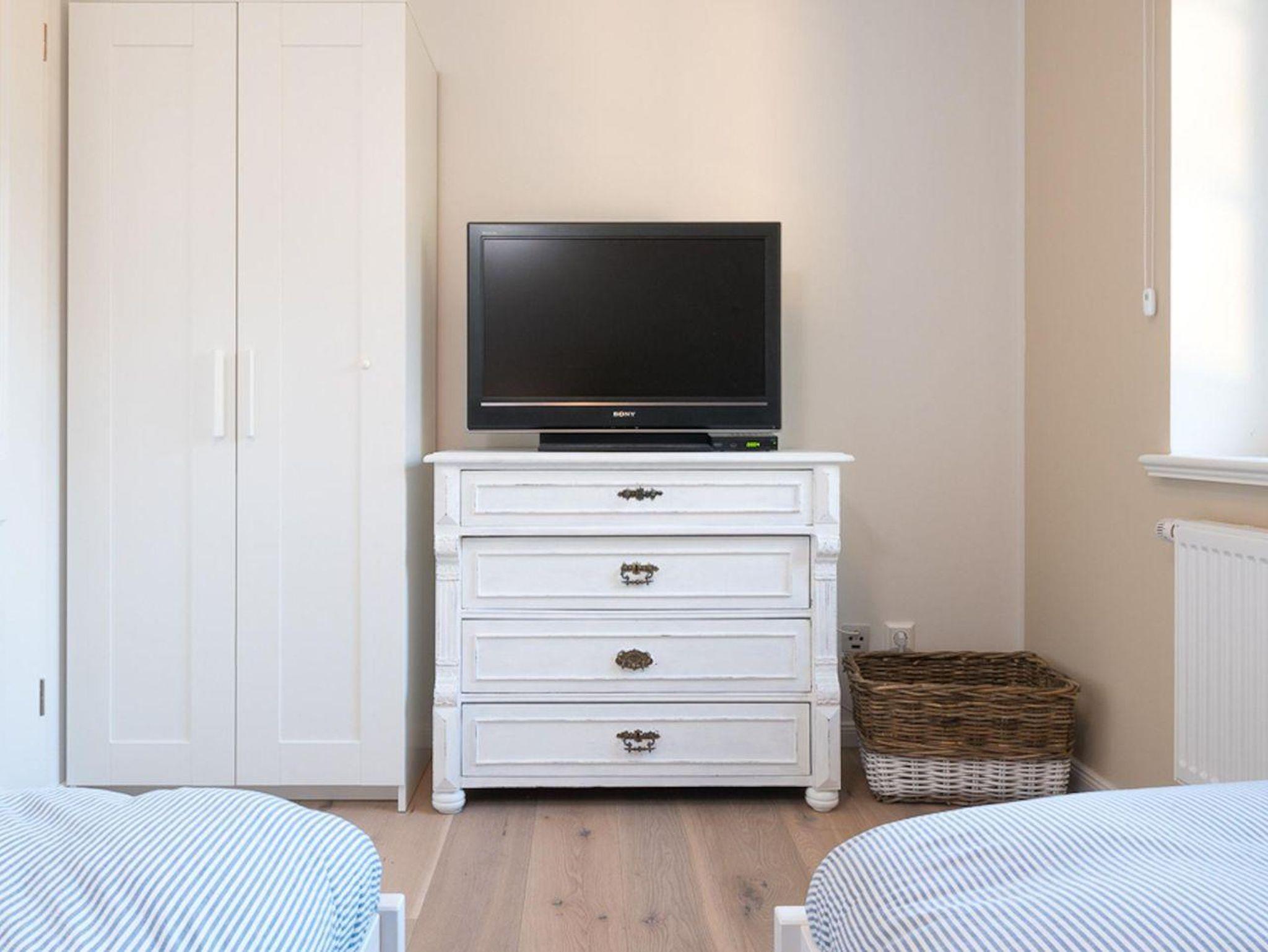 Über eine schöne weiße Holztreppe gelangt man in das mit Parkett ausgelegte Obergeschoss. Hier befinden sich ein Schlafzimmer mit einem Doppelbett (180 x 200cm), ein Schlafzimmer mit 2 Einzelbetten (je 90 x 200cm) und TV. Außerdem ist im Obergeschoss eine Kuschelkoje mit einem Einzelbett (90 x 200cm) vorhanden zum Zurückziehen oder Spielen. Alle Schlafzimmer verfügen über ein Verdunkelungsrollo und sehr gut getestete Matratzen für einen angenehmen gesunden Schlaf. Schränke gewähren Ihnen hinreichend Ablageflächen. Darüber hinaus befindet sich im Obergeschoss ein weiteres, geräumiges Bad mit Dusche. Auch für die kleinen Gäste ist gesorgt: Es gibt Spielzeug, ein Reisebett, einen Kinderhochstuhl, Kindernachtleuchten, einen Kinderhocker im Bad und einen Kinder-WC-Sitz.