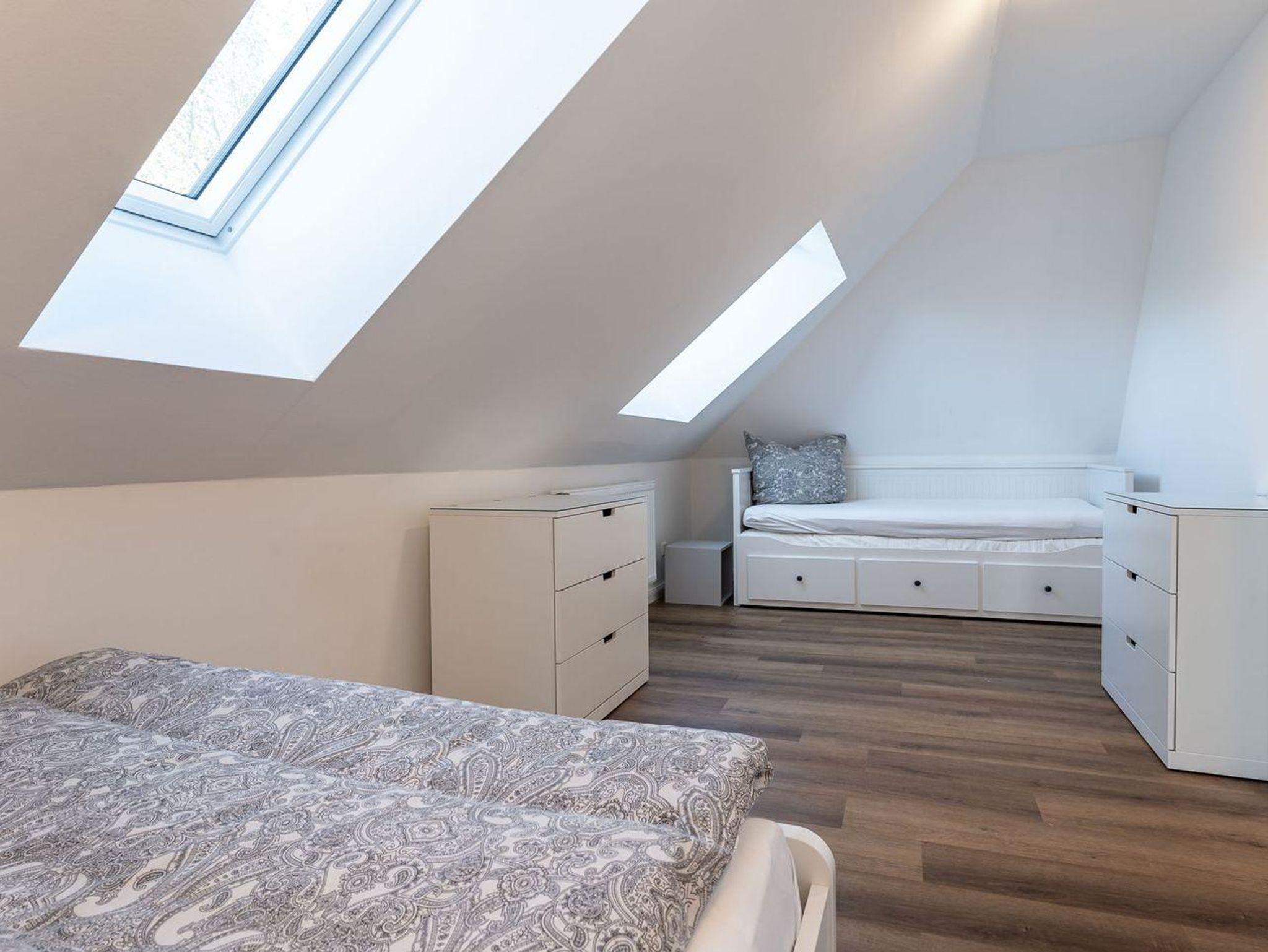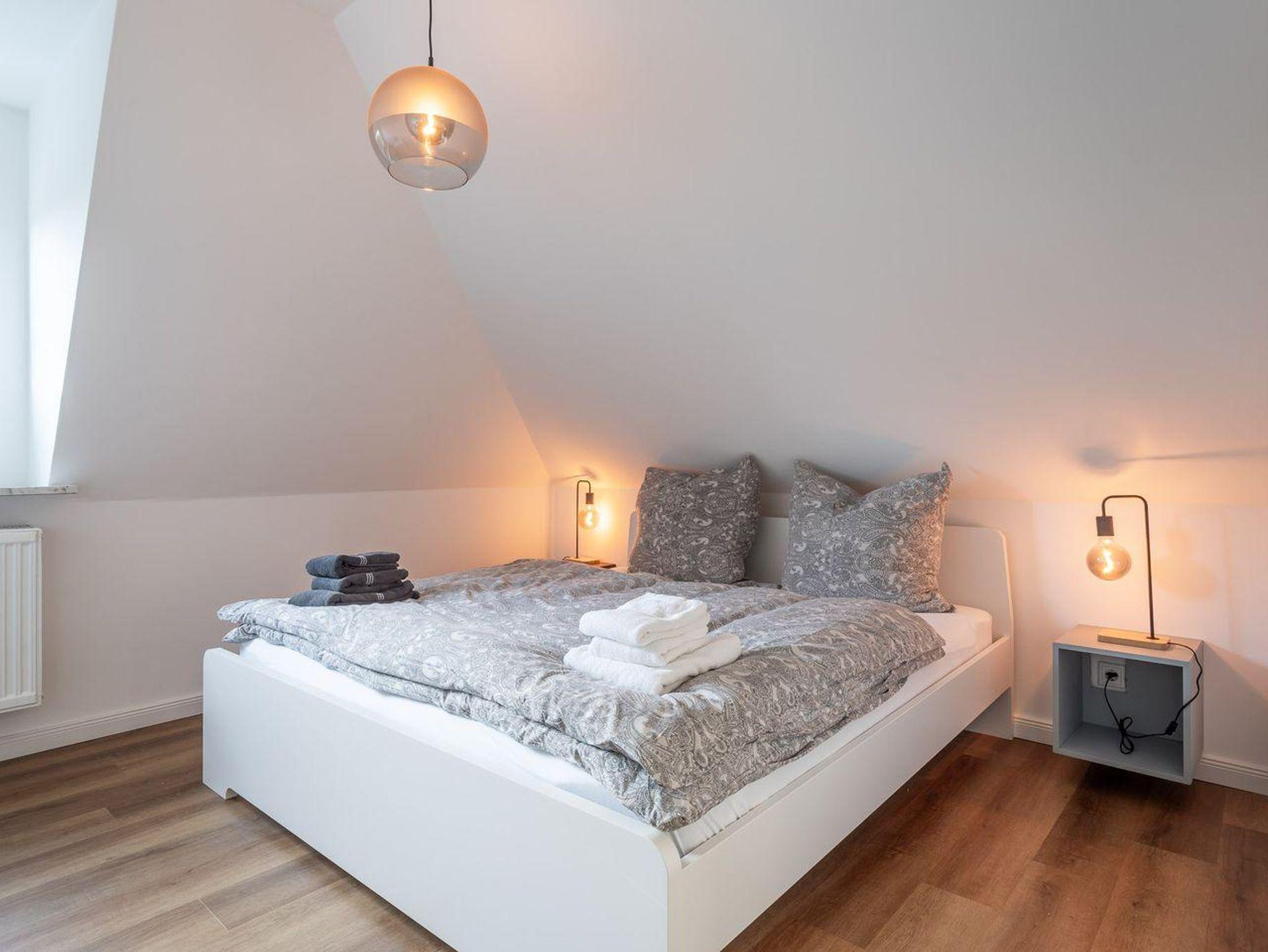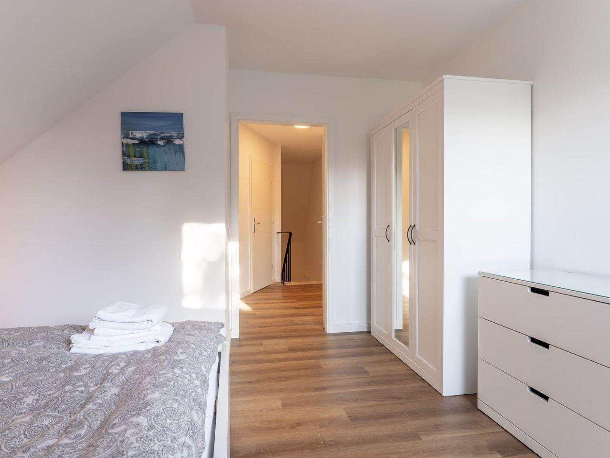 Die Doppelhaushälfte verfügt über 2 gemütliche Schlafzimmer, die jeweils mit bequemen Betten ausgestattet sind (1 SZ mit Doppelbett, 1 SZ mit kleinem Doppelbett und ausziehbarem Kojenbett), um Ihnen eine erholsame Nachtruhe zu ermöglichen. Zudem stehen Ihnen 2 moderne Badezimmer zur Verfügung, die für Komfort und Privatsphäre sorgen.