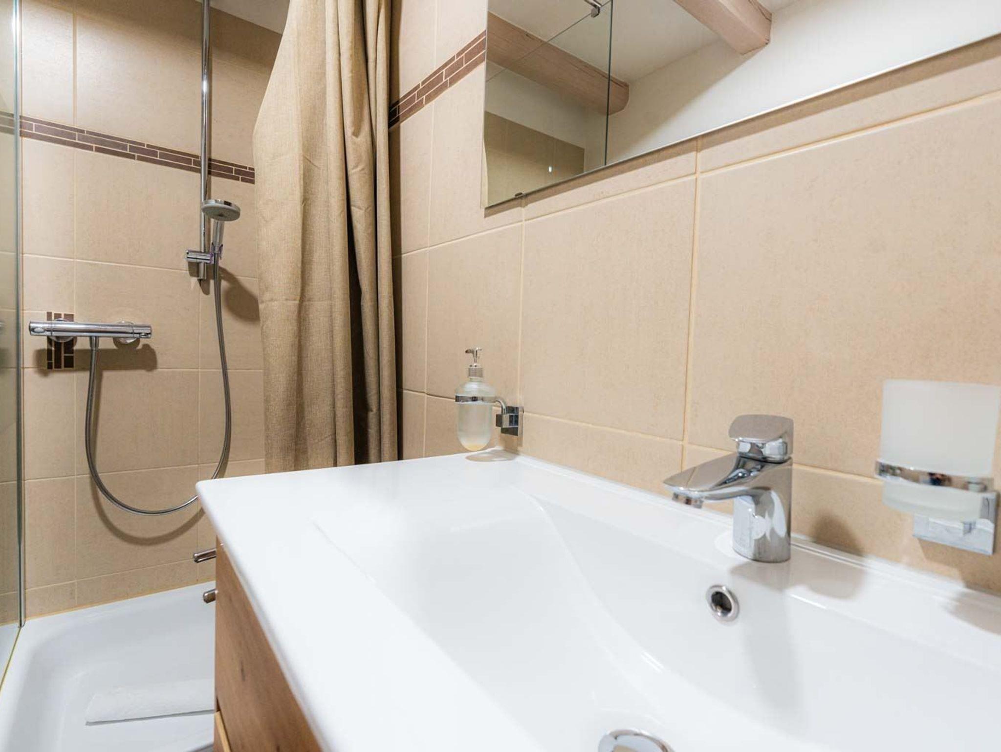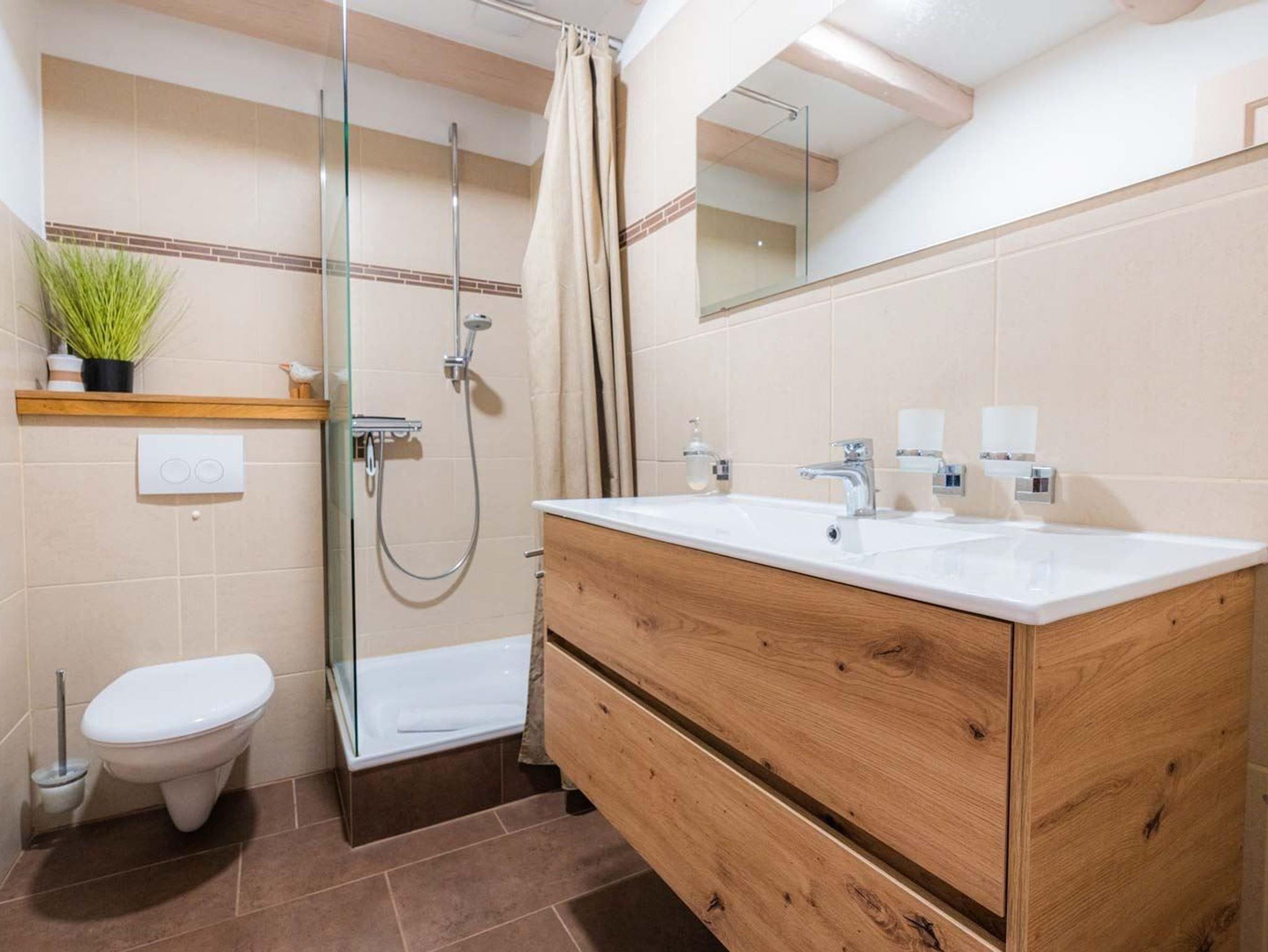 Badezimmer (Duschbad) mit Dusche, WC und Föhn.