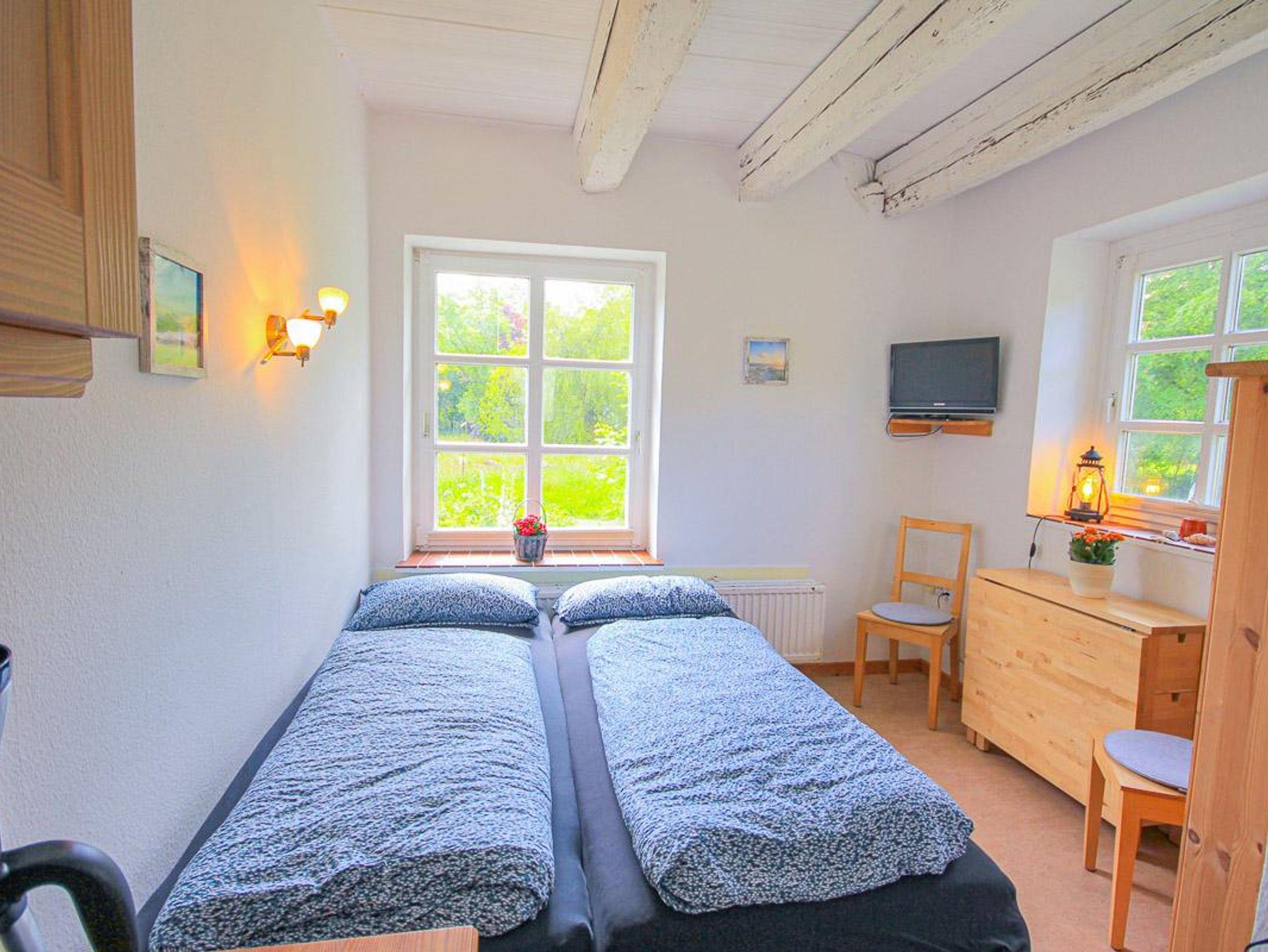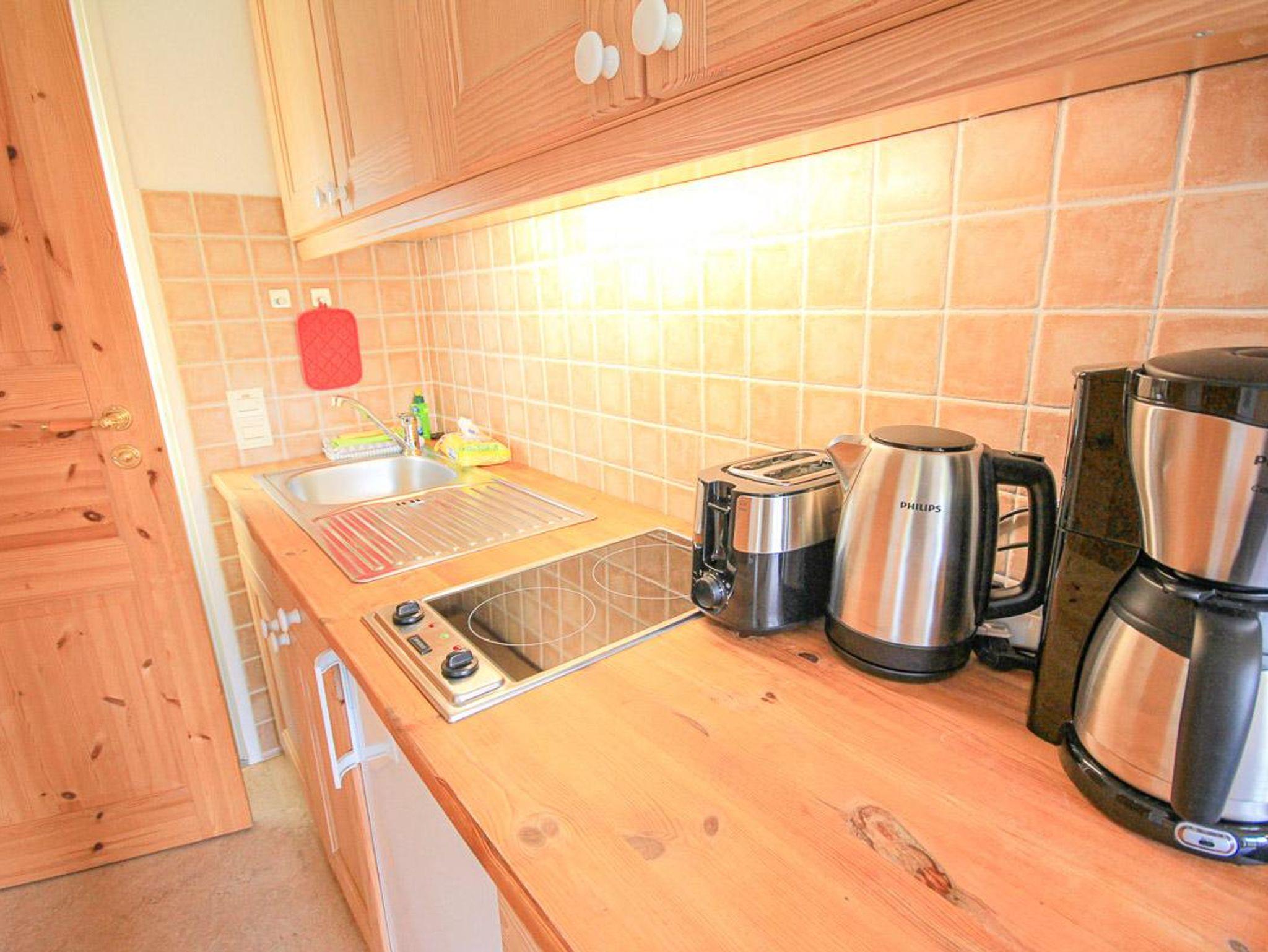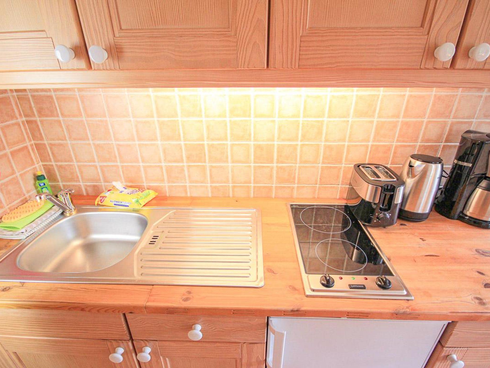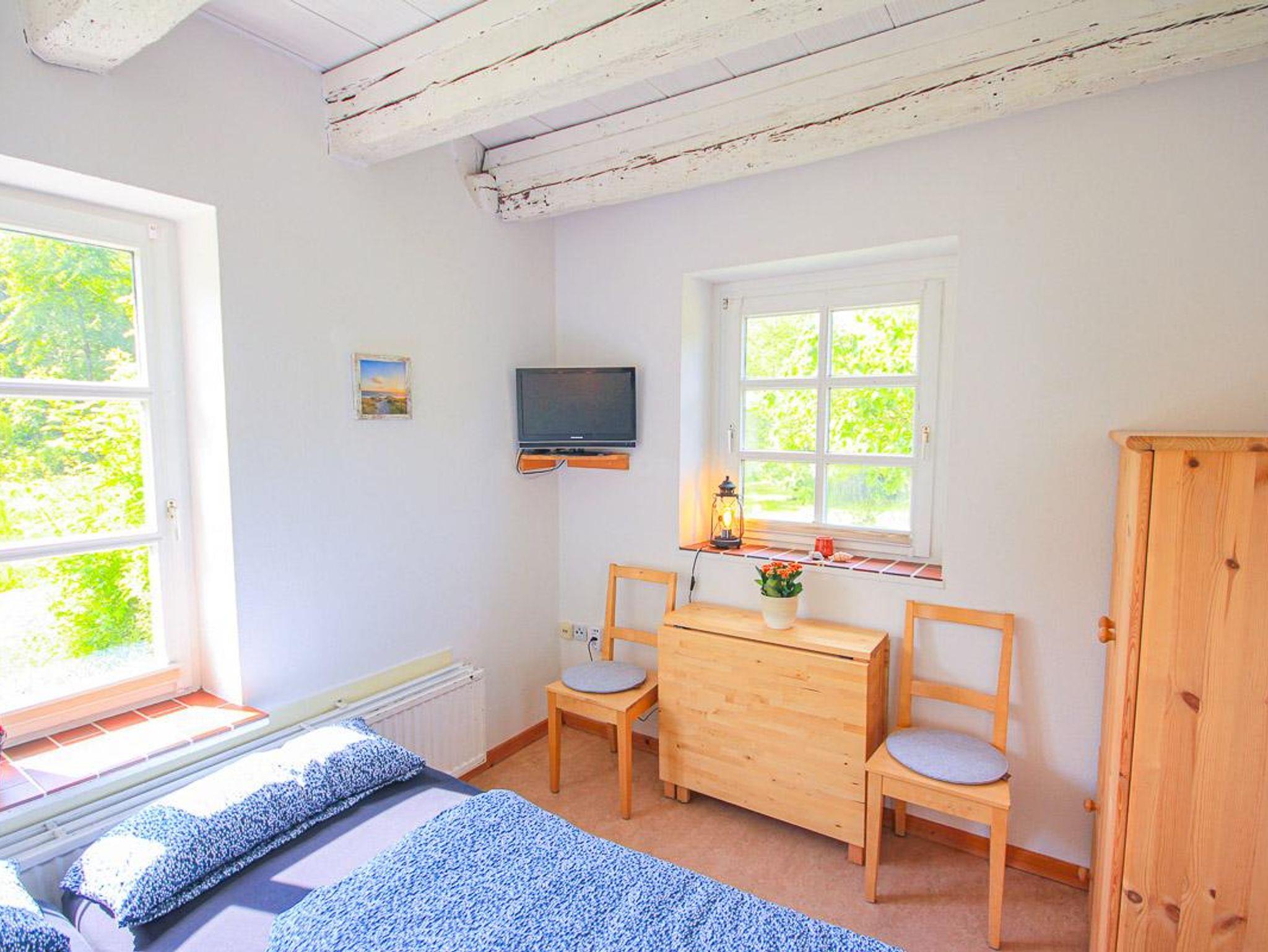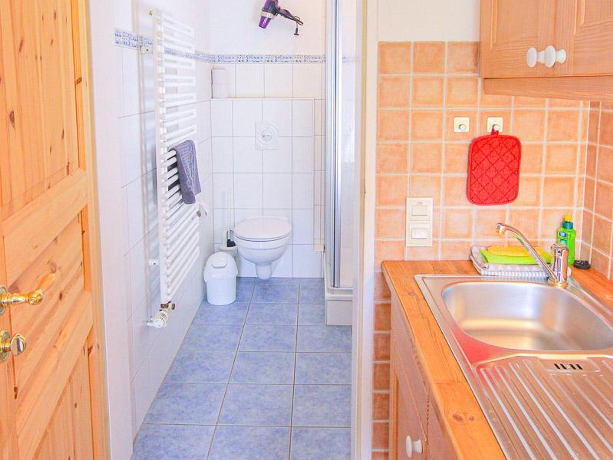 Unsere kleine Eckwohnung mit Gartenblick befindet sich im Erdgeschoss und bietet mit einer Fläche von 15 m² Platz für bis zu 2 Personen. Wohn-/Schlafraum mit Schlafsofa und Essecke, Sat-TV, integrierter Pantry Küche mit 2 Platten-Ceran-Kochfeld, Mikrowelle, Kühlschrank mit Gefrierfach. Kaffeemaschine und Wasserkocher. Duschbad mit WC. Nichtraucherwohnung, Hunde willkommen. W-LAN.