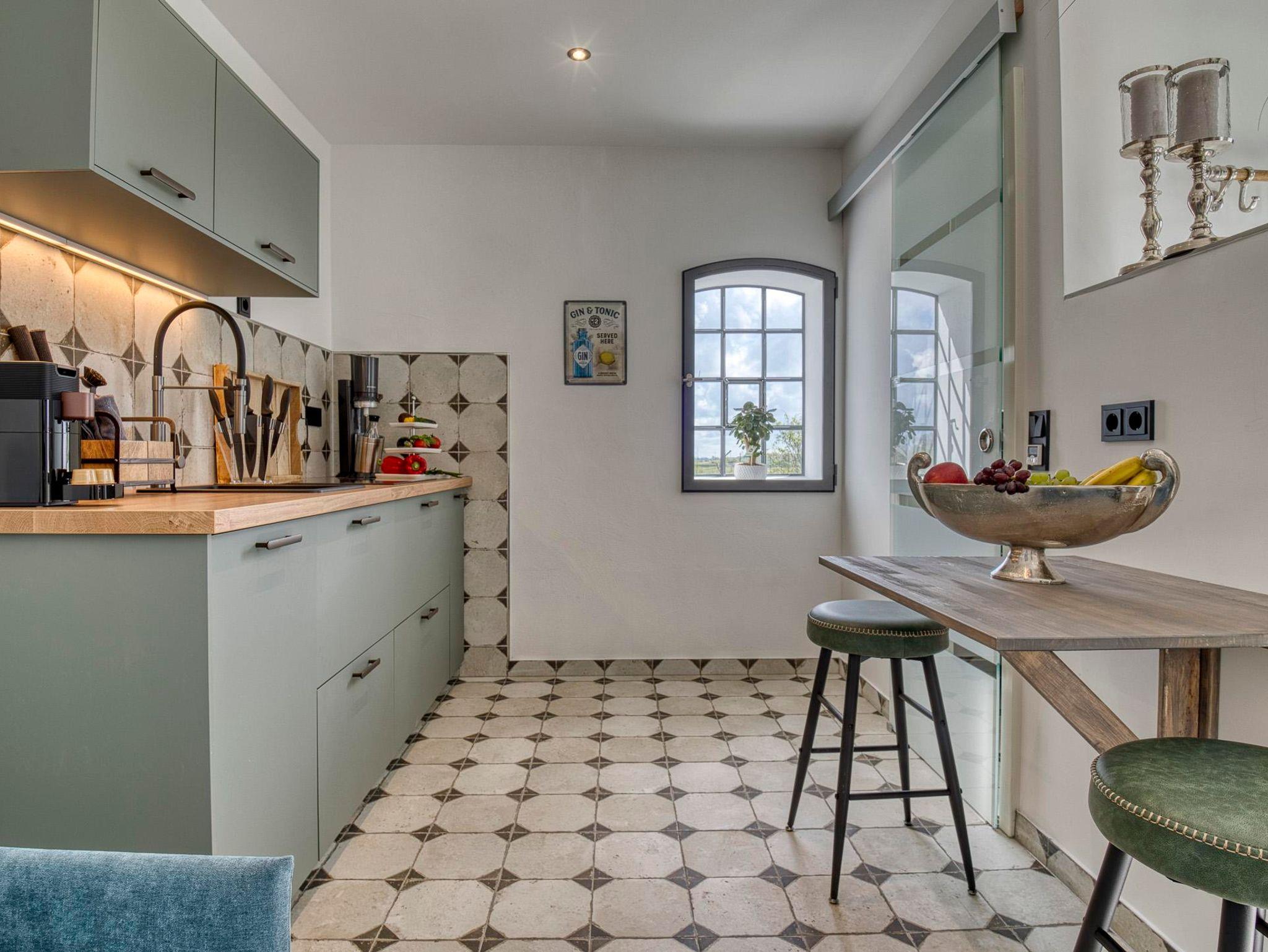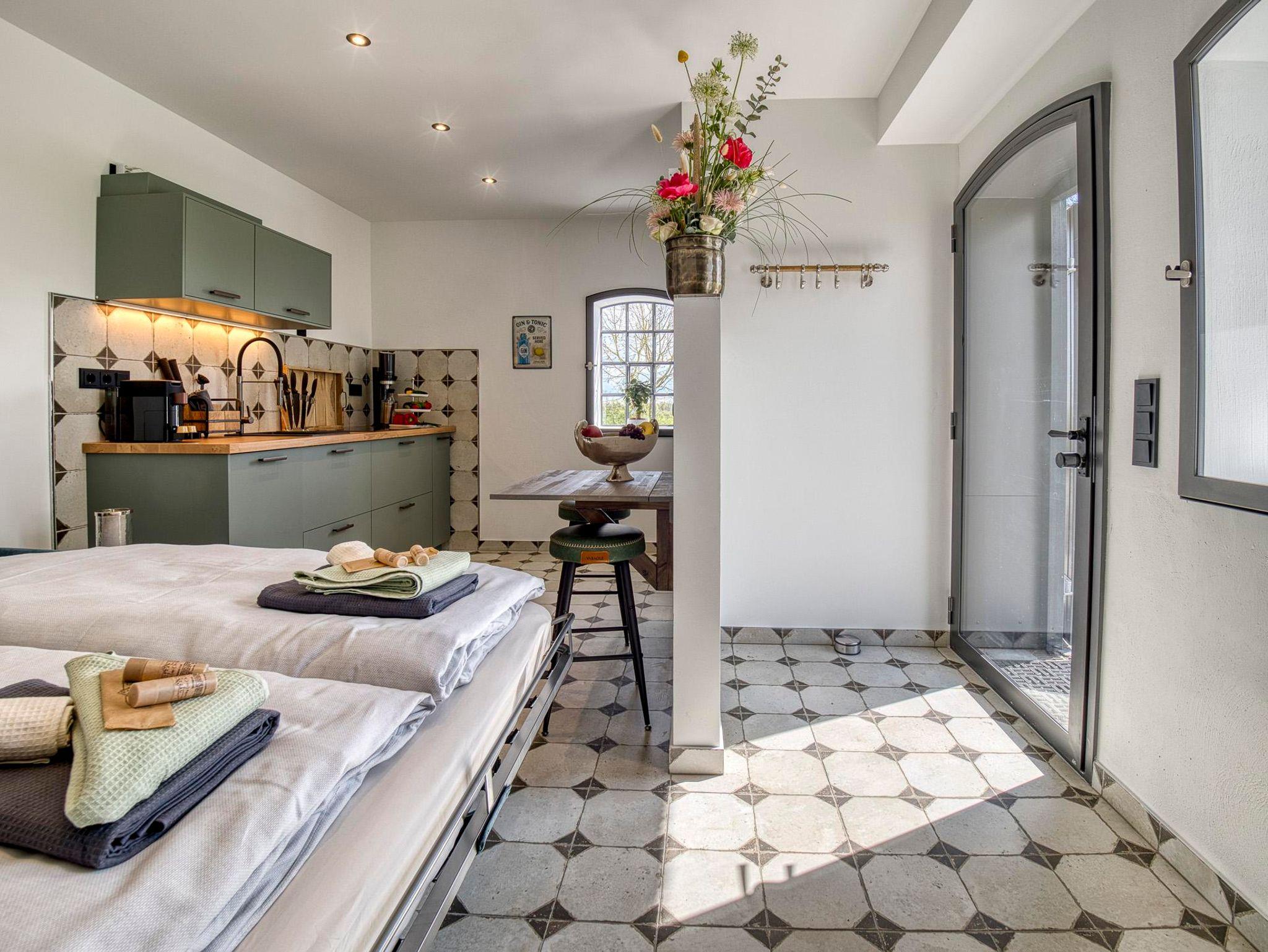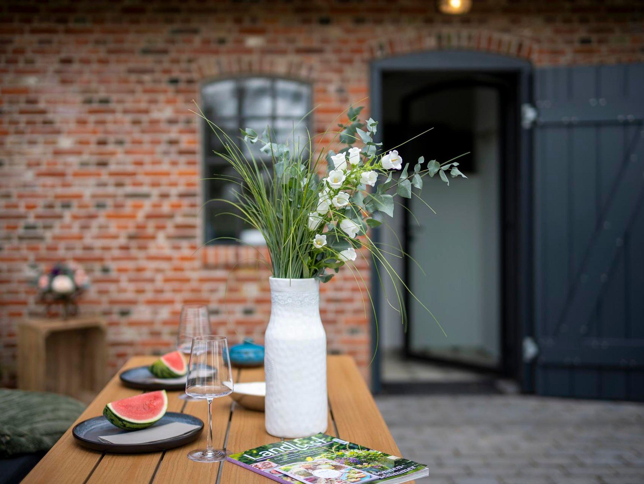 Erleben Sie einen Mix aus modernen Wohnelementen, Retro-Einflüssen und stilvollen Accessoires, die ein einladendes Ambiente schaffen. Entspannen Sie sich auf dem komfortablen Schlafsofa, starten Sie den Tag mit einem Frühstück auf der großzügigen Süd-Terrasse und lassen Sie sich von der Ruhe der einzigartigen Country Lodge Ole Steen umgeben.