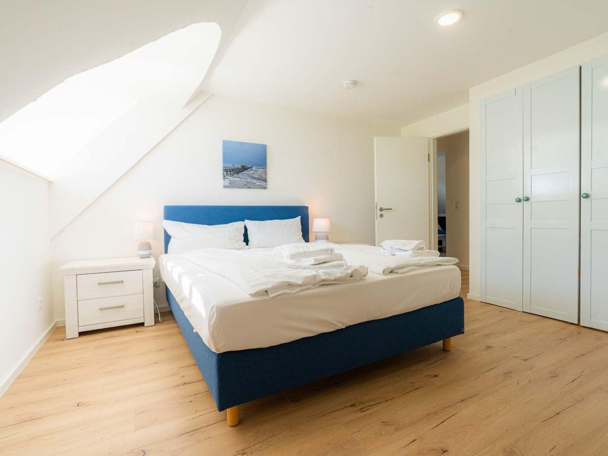 1. Schlafzimmer mit Doppelbett (160x200cm, Boxspring), Kleiderschrank, Kommode, Garderobe und SMART-TV.