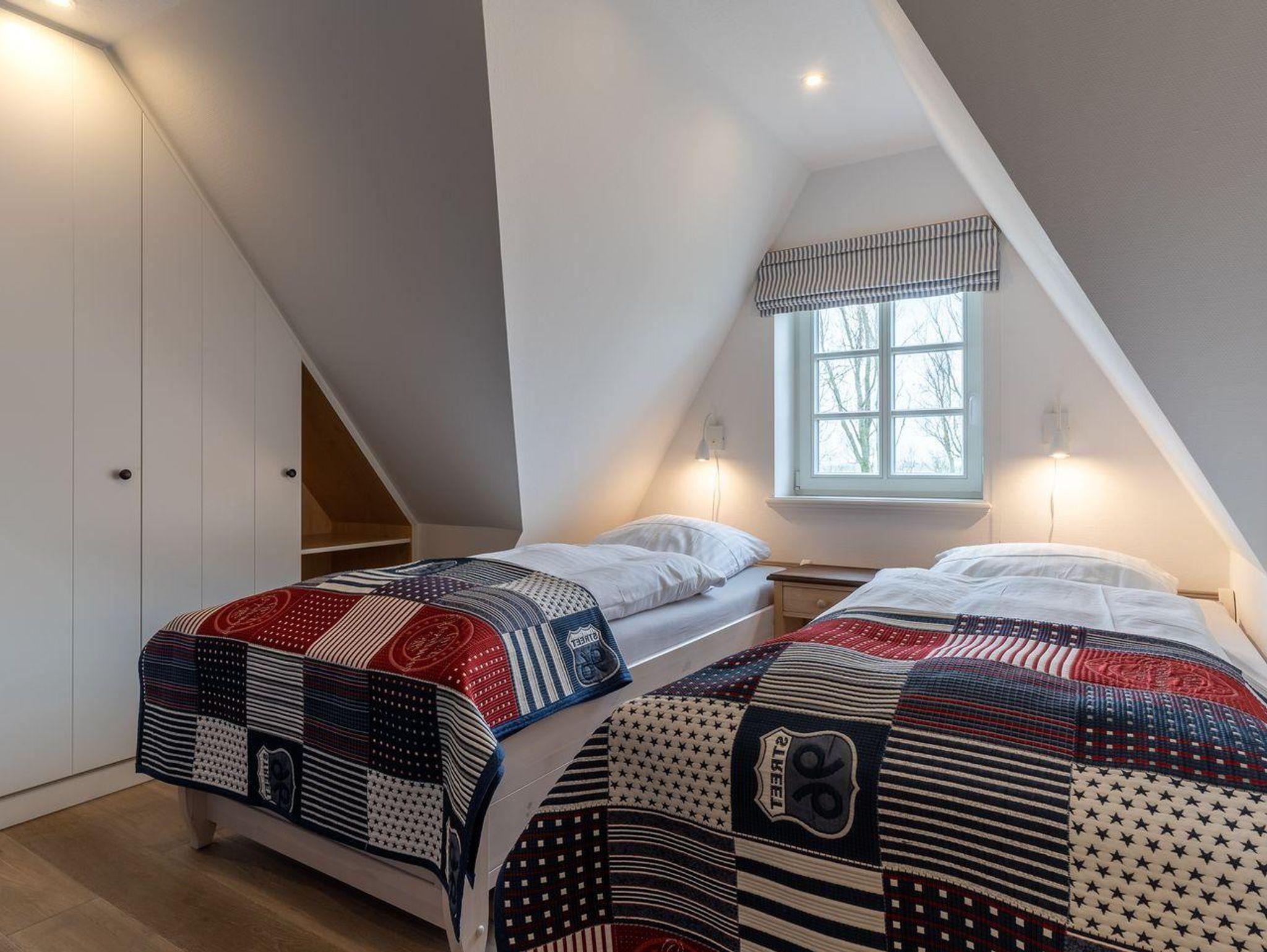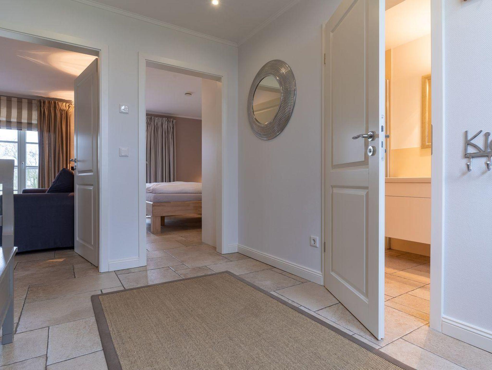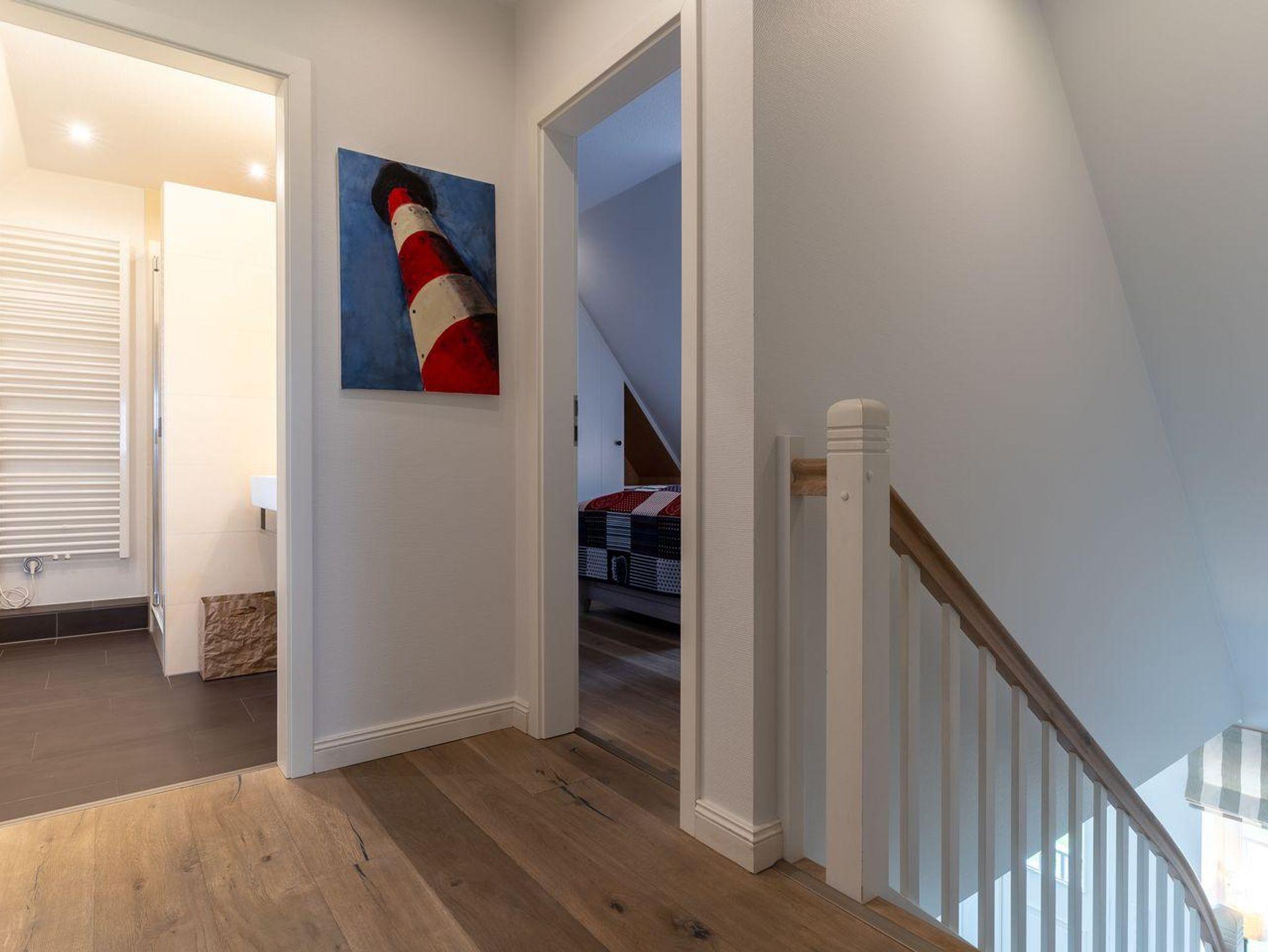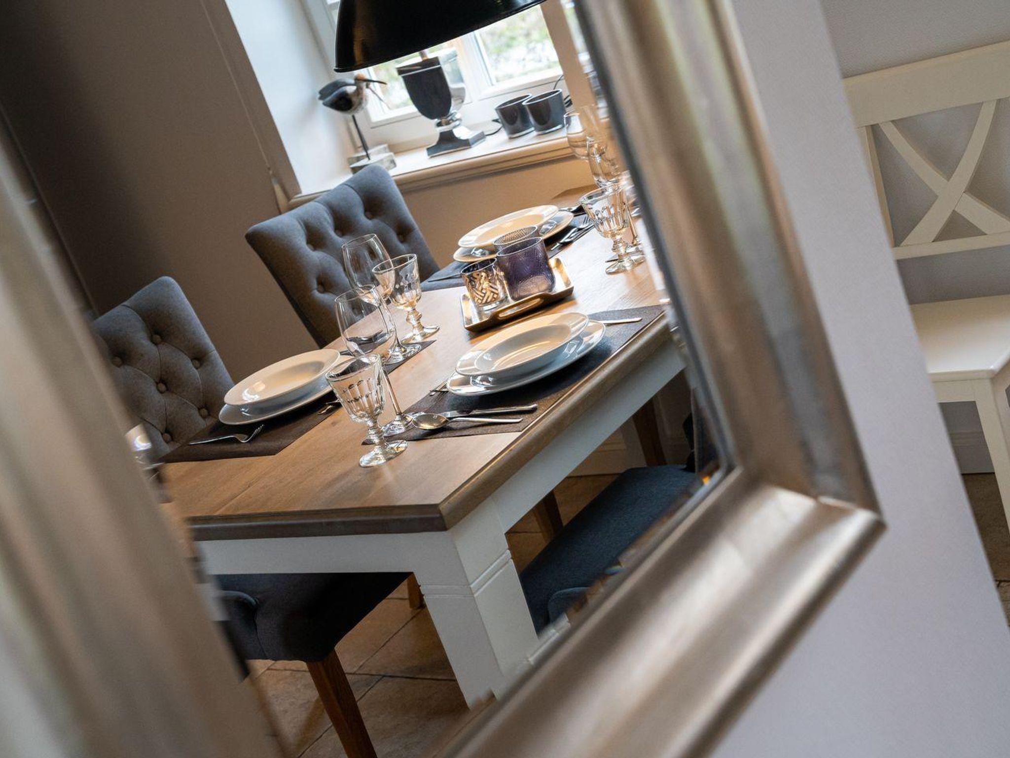 Eine Haushälfte unter Reet, ca. 100 m² Wohnfläche auf 2 Ebenen, auf großzügigem Grundstück mit ca. 1.200 m² und Terrasse. Im EG befinden sich ein Duschbad mit barrierefreier Dusche und WC, ein Schlafzimmer mit einem 1,60 x 2 m Doppelbett, das gemütliche Wohn/Esszimmer mit Kaminofen, offener, hochwertiger Küche sowie einem Wirtschaftsraum mit Waschtrockner. Im OG befinden sich das großzügige Elternschlafzimmer mit Boxspringbett 1,80 x 2 m und einem Einbauschrank, ein Kinderzimmer mit zwei Einzelbetten 1 x 2 m plus Einbauschrank sowie einem Duschbad mit Komfortdusche, Doppelwaschbecken und Handtuchheizung und WC. Im gesamten Haus liegt eine Fußbodenheizung, im EG unter Fliesen im OG unter weiß gekalkten Eichendielen.