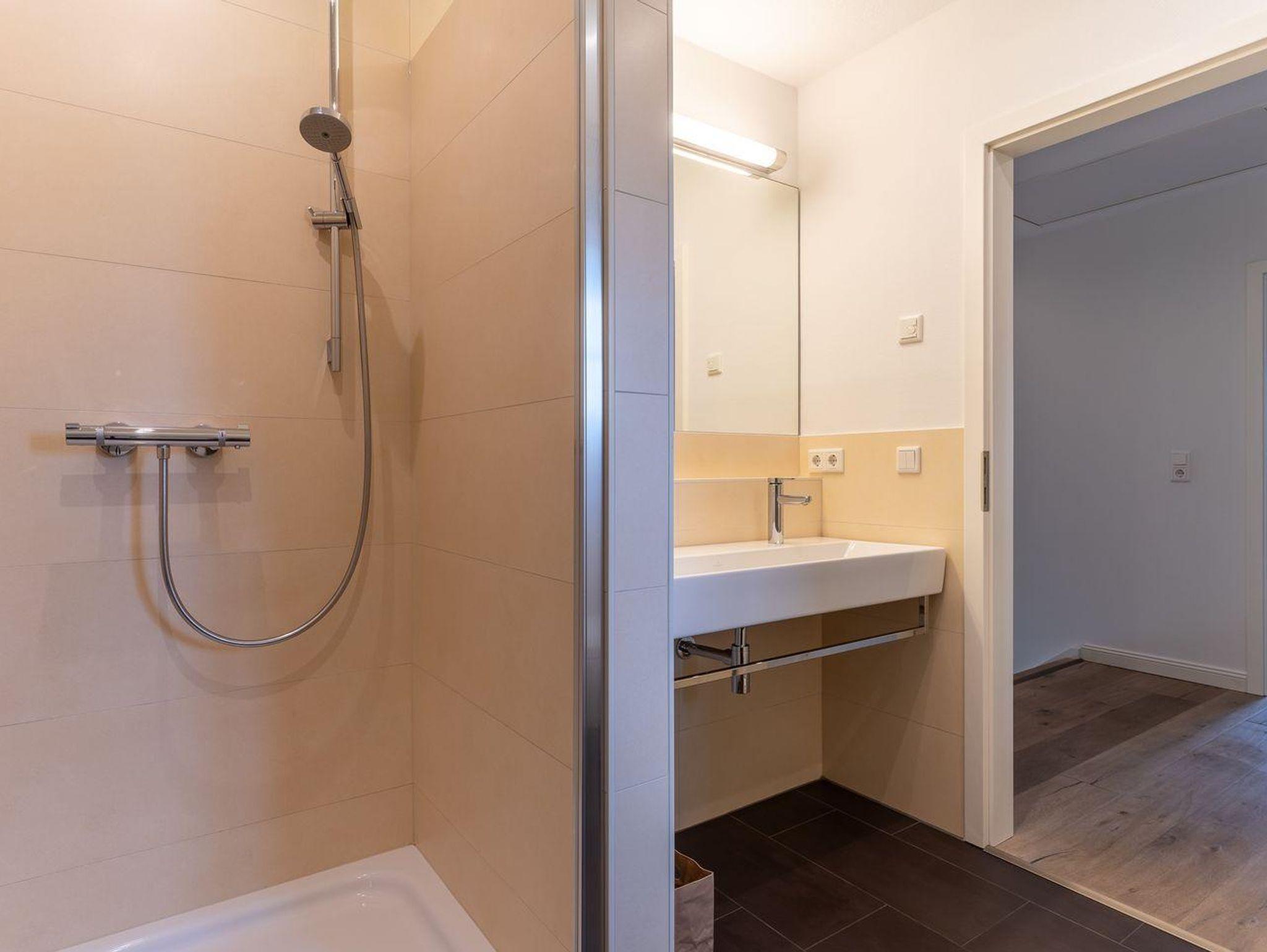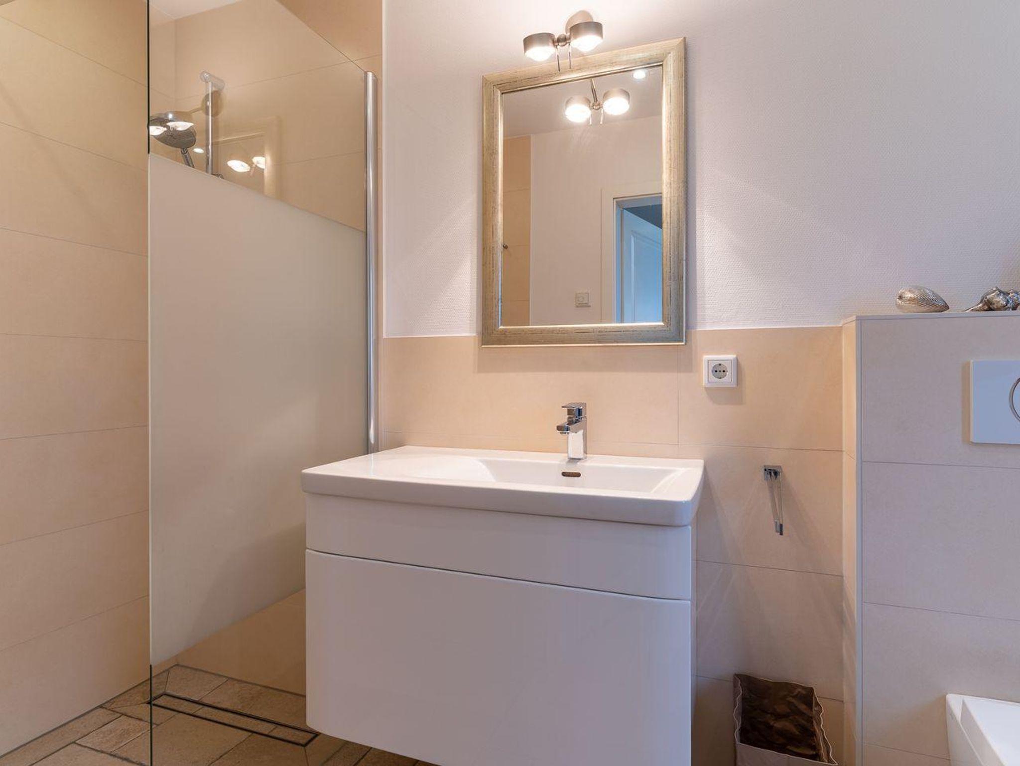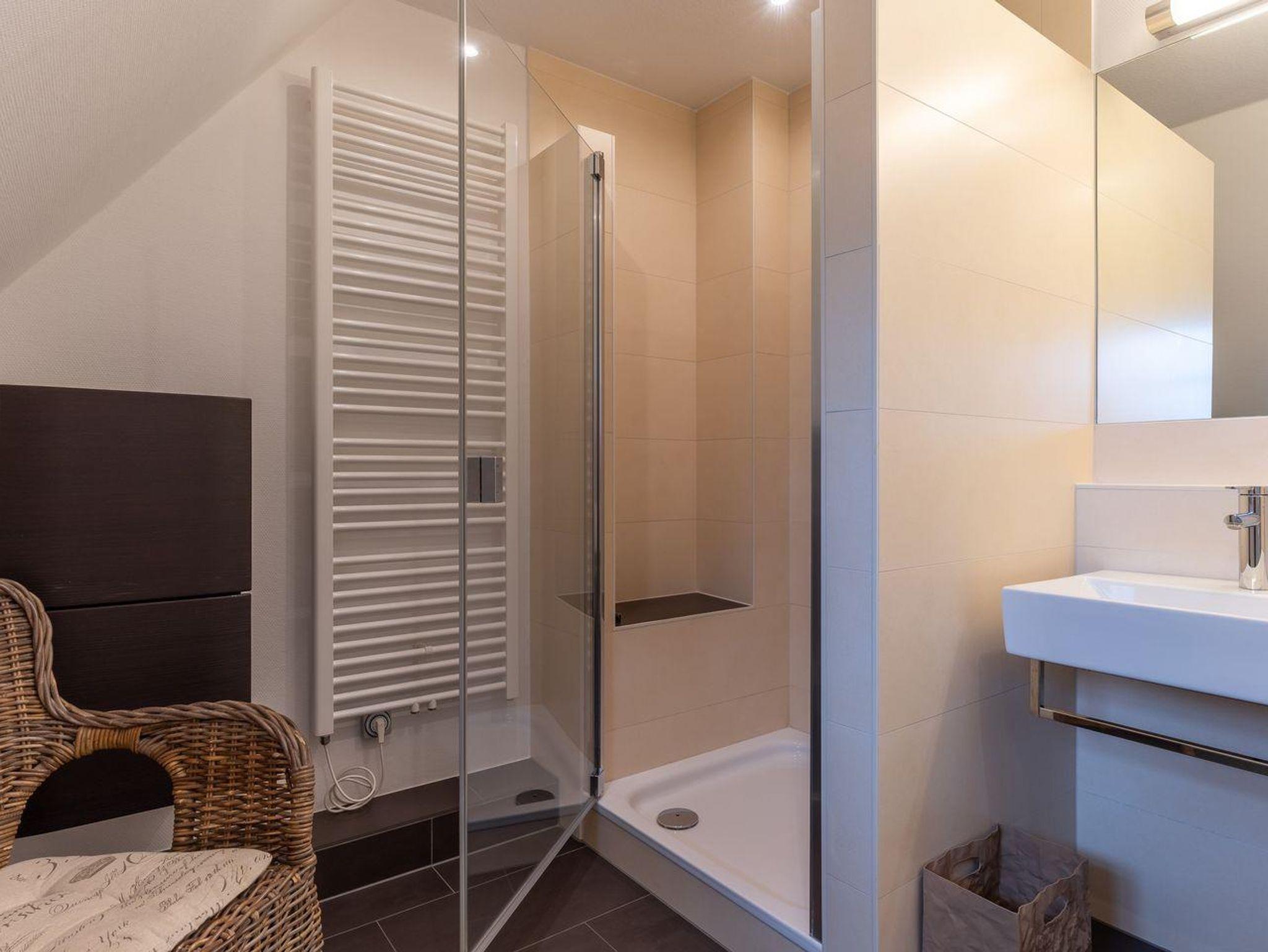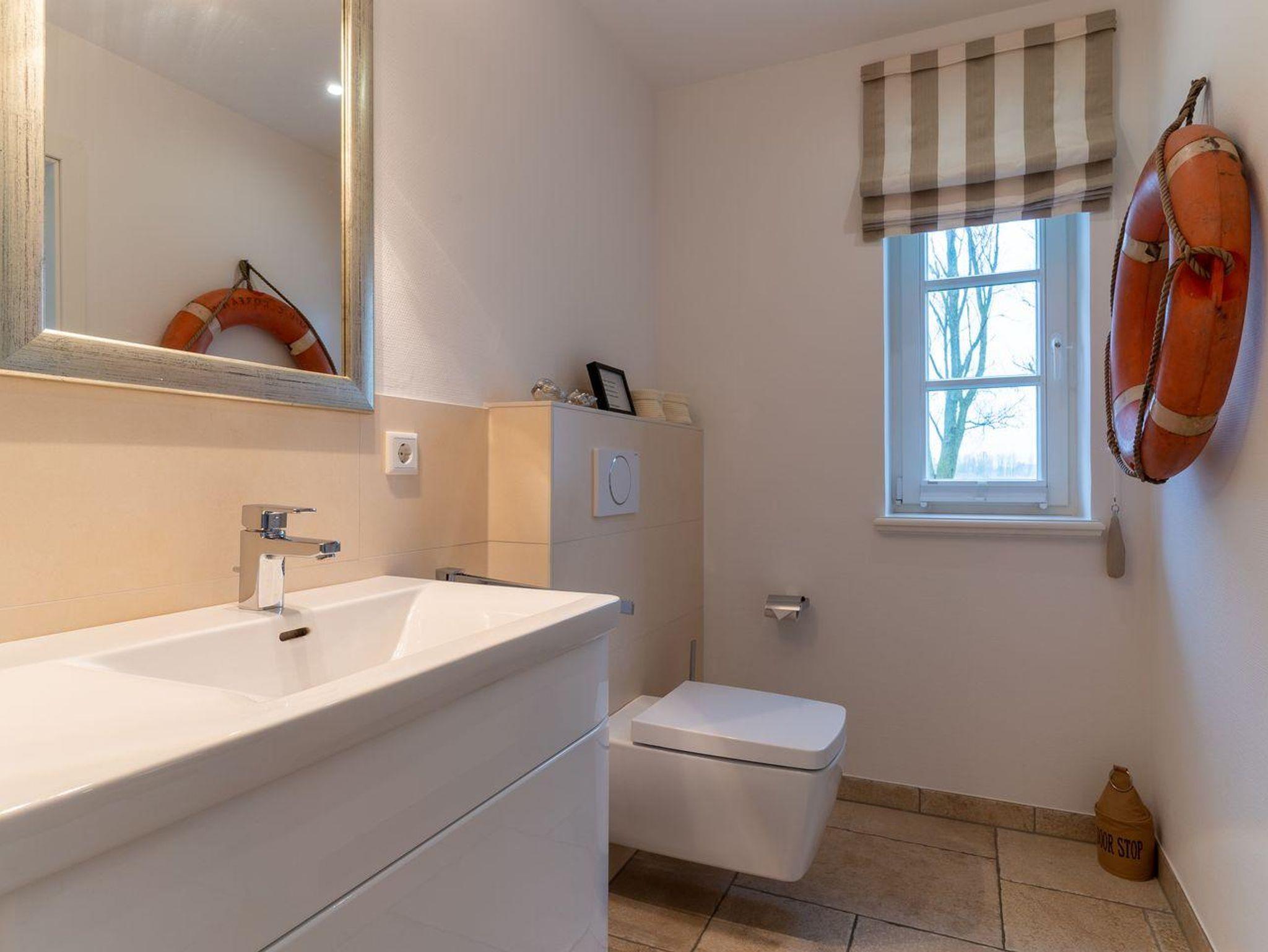 Eine Haushälfte unter Reet, ca. 100 m² Wohnfläche auf 2 Ebenen, auf großzügigem Grundstück mit ca. 1.200 m² und Terrasse. Im EG befinden sich ein Duschbad mit barrierefreier Dusche und WC, ein Schlafzimmer mit einem 1,60 x 2 m Doppelbett, das gemütliche Wohn/Esszimmer mit Kaminofen, offener, hochwertiger Küche sowie einem Wirtschaftsraum mit Waschtrockner. Im OG befinden sich das großzügige Elternschlafzimmer mit Boxspringbett 1,80 x 2 m und einem Einbauschrank, ein Kinderzimmer mit zwei Einzelbetten 1 x 2 m plus Einbauschrank sowie einem Duschbad mit Komfortdusche, Doppelwaschbecken und Handtuchheizung und WC. Im gesamten Haus liegt eine Fußbodenheizung, im EG unter Fliesen im OG unter weiß gekalkten Eichendielen.