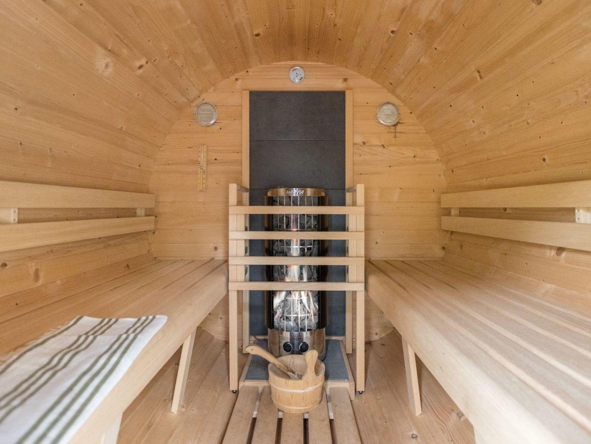 Flur mit Garderobe und Treppe zum OG im Eingangsbereich. Vor dem Eingang befinden sich die schöne möblierte Gartenterrasse (Norden) mit Strandkorb und die Außen-Sauna (kostenpflichtig). Großes Gartengrundstück (hundesicher eingezäunt) mit überdachtem Sonnenfreisitz.