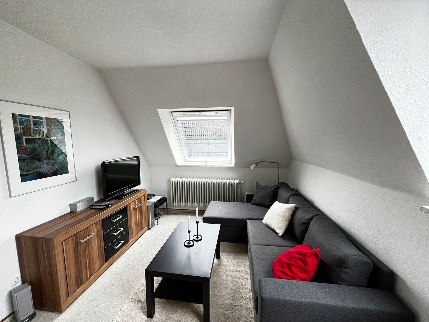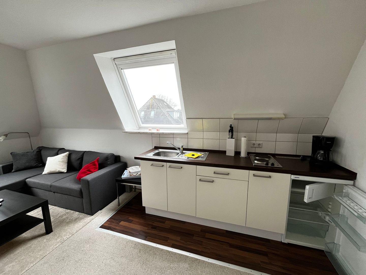 Wohnraum mit Sofa, SAT-TV, Küchenzeile,