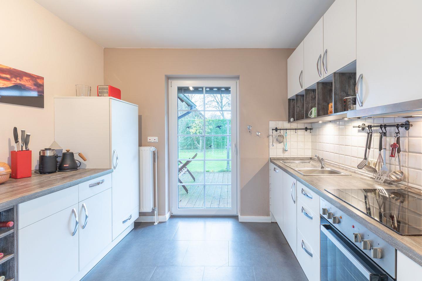 Zur Wohnung gehört eine geschlossene Küche, die sehr gut ausgestattet ist: Geschirrspüler, Kühlschrank, Gefrierfach, Backofen, Ceranfeld mit 4 Kochplatten, Dunstabzugshaube, Filterkaffee-Maschine (Filtergröße 4), Wasserkocher und ein Toaster.
