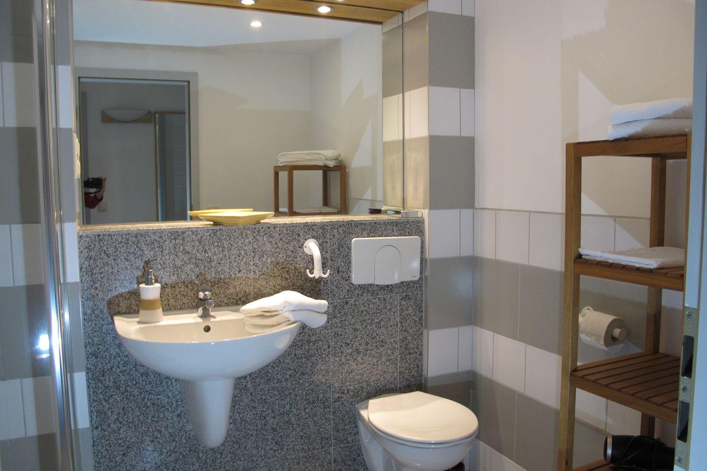Die 60 qm große Wohnung ist im Erdgeschoss mit Terrasse untergebracht. Sie besteht aus je zwei Doppelzimmern mit dazwischen liegendem Duschbad und einem großzügigen Wohn-Essraum (bis 4 Personen). Die Wohnung ist hochwertig ausgestattet. Die Wohnräume sind gefliest, in den Schlafräumen sind Echtholzdielen verlegt.