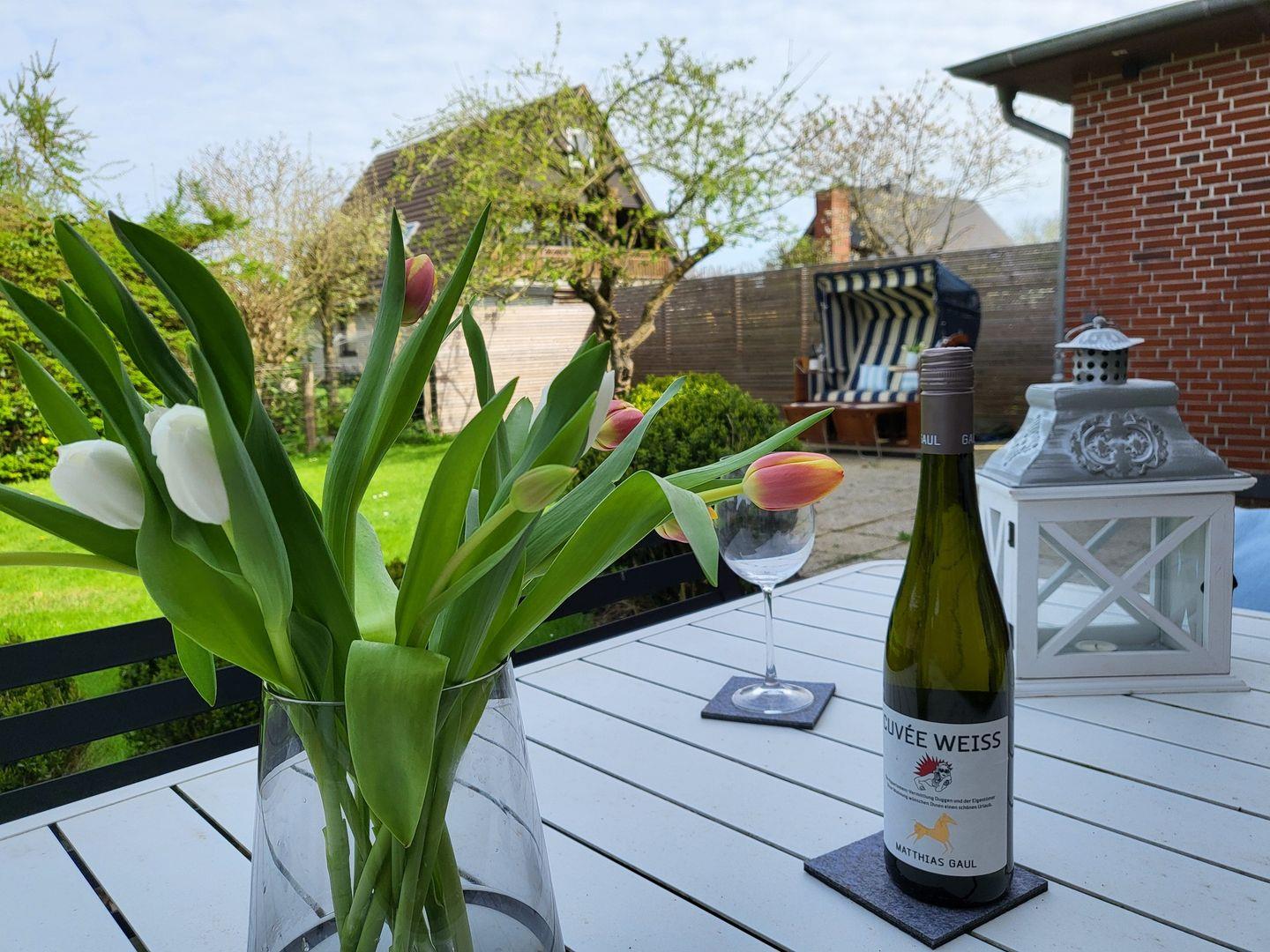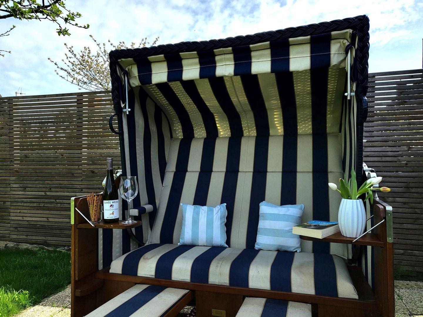 Das große Grundstück verfügt über einen alten Baumbestand (inkl. Apfel-, Kirsch- und Mirabellenbaum), bietet ausreichend Sichtschutz und Platz zum Toben, Spielen und Entspannen und punktet mit einer möblierte Terrasse inkl. Außenkamin, der sich auch zum Grillen eignet. Ein Strandkorb lädt zum Sonnenbad ein. In dem abschließbaren Gartenhaus können eBikes sicher verstaut werden. Das Grundstück wird rechtzeitig zu Vermietungsbeginn vollumfänglich eingezäunt.