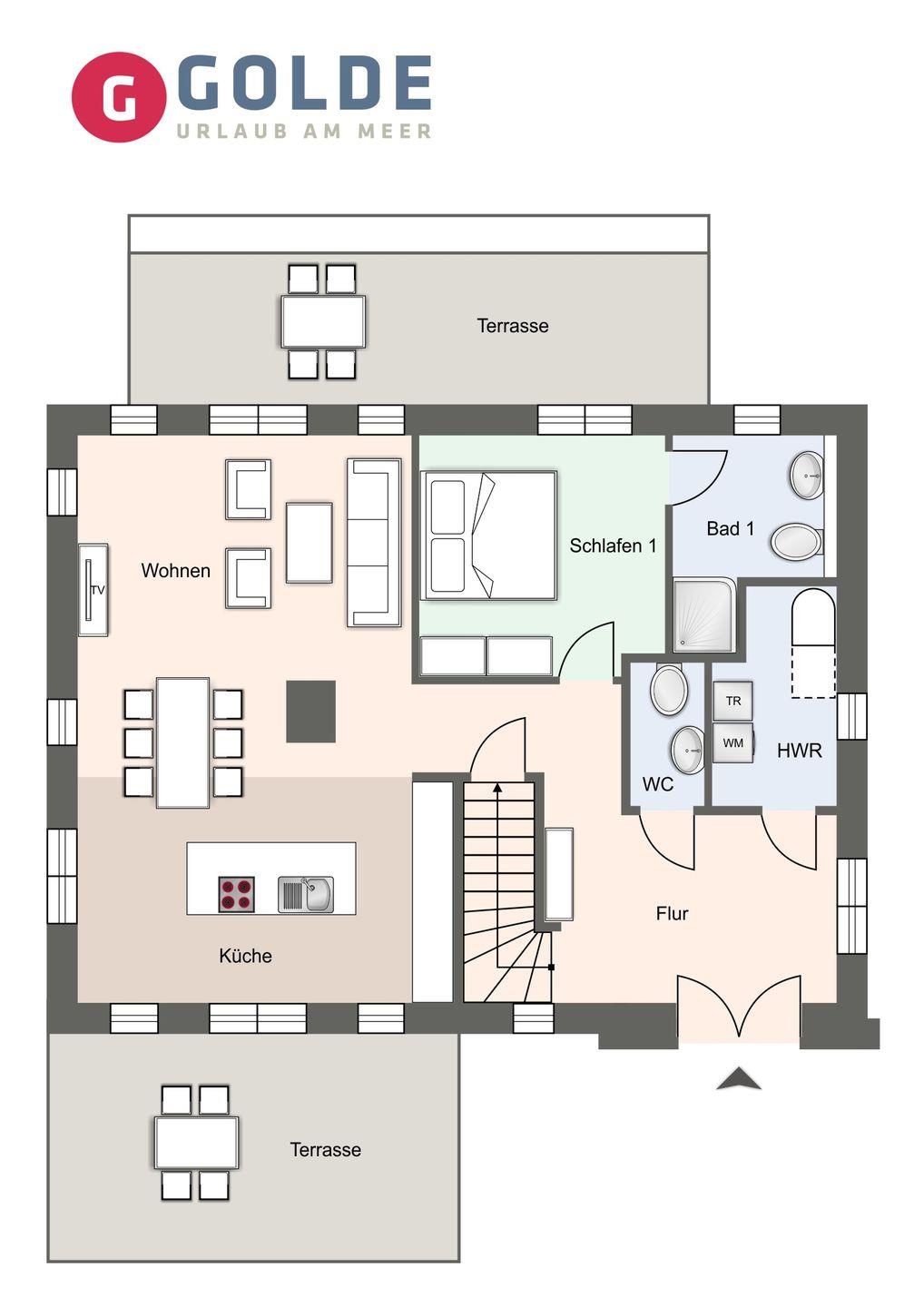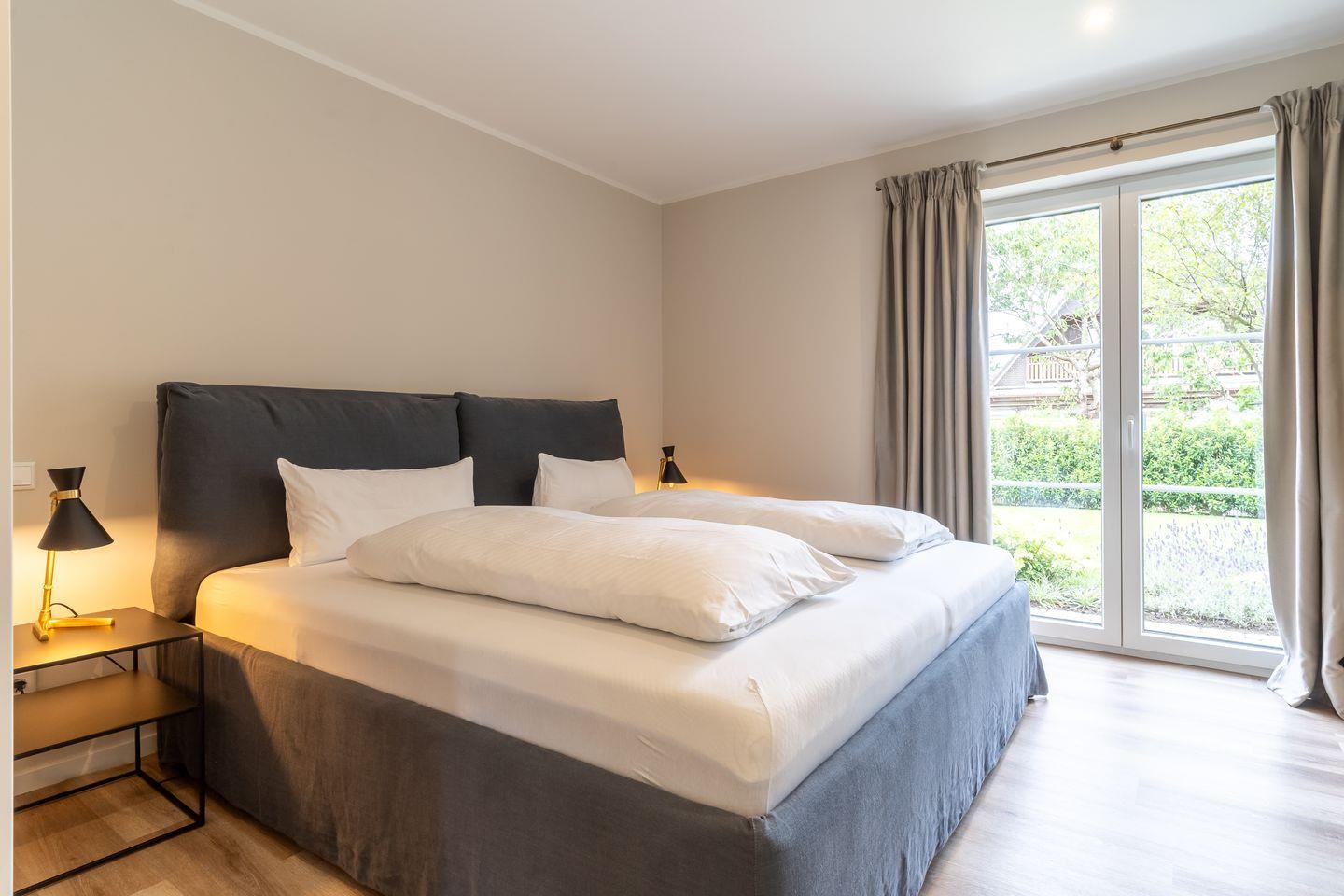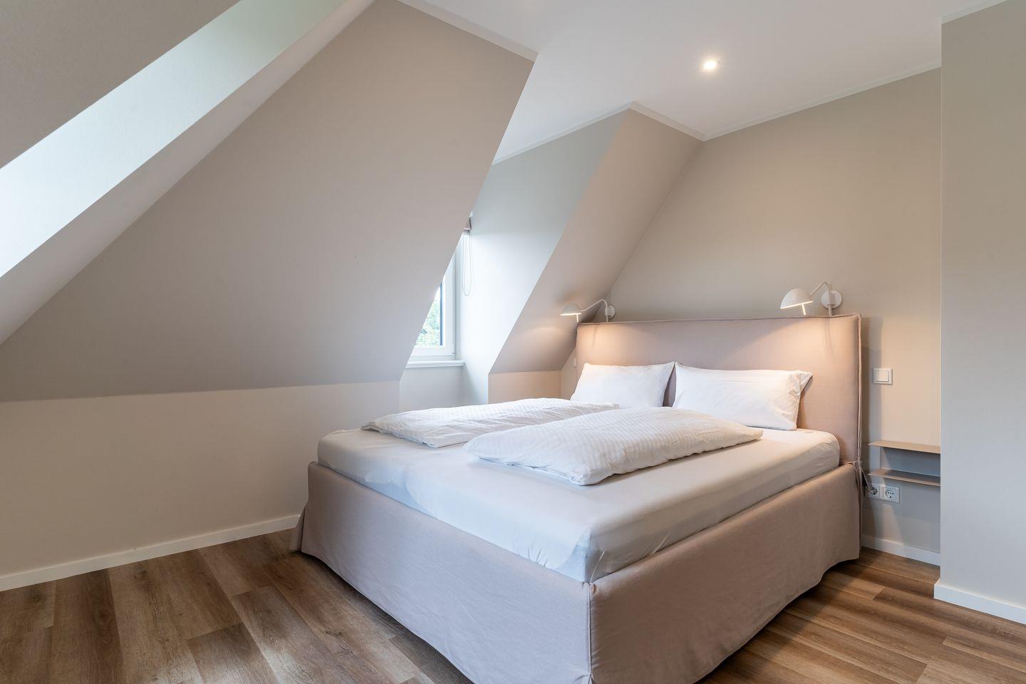 Das Ferienhaus besticht durch hochwertige Möbel und ein harmonisches Ambiente. Im lichtdurchfluteten Wohnzimmer mit TV können Sie herrlich entspannen und die offene Küche mit hochwertigen Elektrogeräten (Weinkühlschrank, Thermomix 5, Nespresso, großer Kühl- und Gefrierschrank, Bora Induktionsherd, etc.) lädt zum gemeinsamen Kochen ein. Hier befindet sich außerdem ein gemütliches Esszimmer. Ob Morgensonne oder Abendsonne - vom Küchenbereich, sowie vom Wohnzimmer gelangen Sie jeweils auf eine große Terrasse mit hochwertigen Gartenmöbeln. Im Erdgeschoss befindet sich ebenso ein Doppelschlafzimmer (200 x 200 cm) und ein angrenzendes, modernes Duschbad. Vom großzügigen Flur mit Hauswirtschaftsraum und Gäste WC gelangen Sie über eine Holztreppe ins Obergeschoss. Hier befinden sich drei weitere gemütlich eingerichtete Schlafzimmer mit komfortablen Boxspringdoppelbetten (180 x 200 cm) Ein geräumiges Badezimmer mit Dusche und Badewanne sorgt für zusätzlichen Komfort.