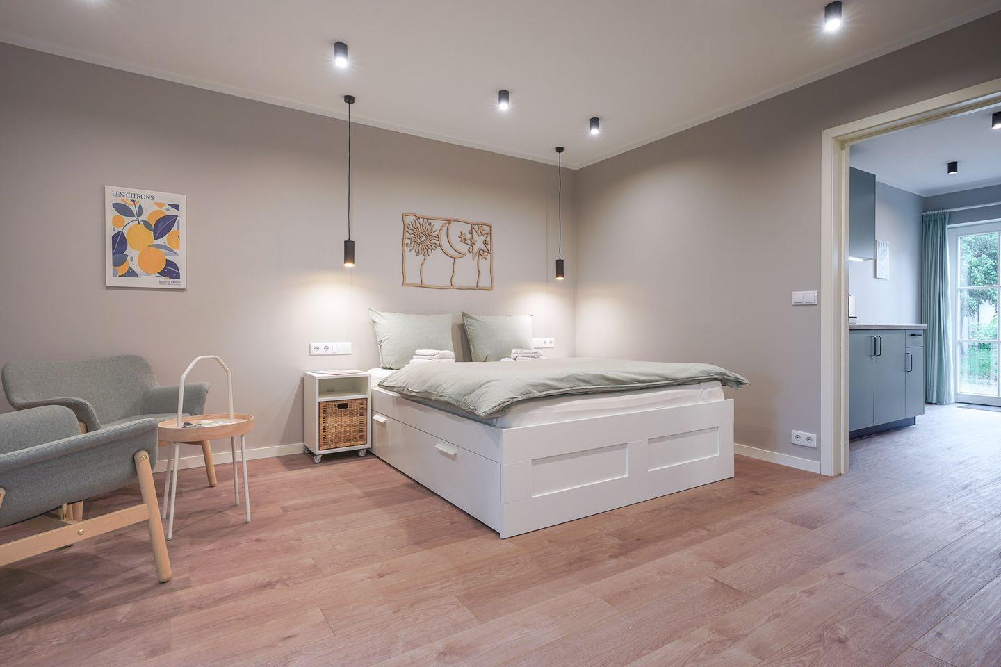 Serviced Apartments sind, als abgeschlossene, eigenständige Wohneinheiten vermietete Wohngebäude im Sinne des § 3 Abs. 1 Nr. 33 GEG. Dies umfasst ausdrücklich auch voll ausgestattete Apartments für Kurz-, Mittel- und Langzeitaufenthalte. Genau das erwartet Sie hier: funktional, stilvoll und komplett eingerichtet – für Workation- und Freizeitaufenthalte gleichermaßen.