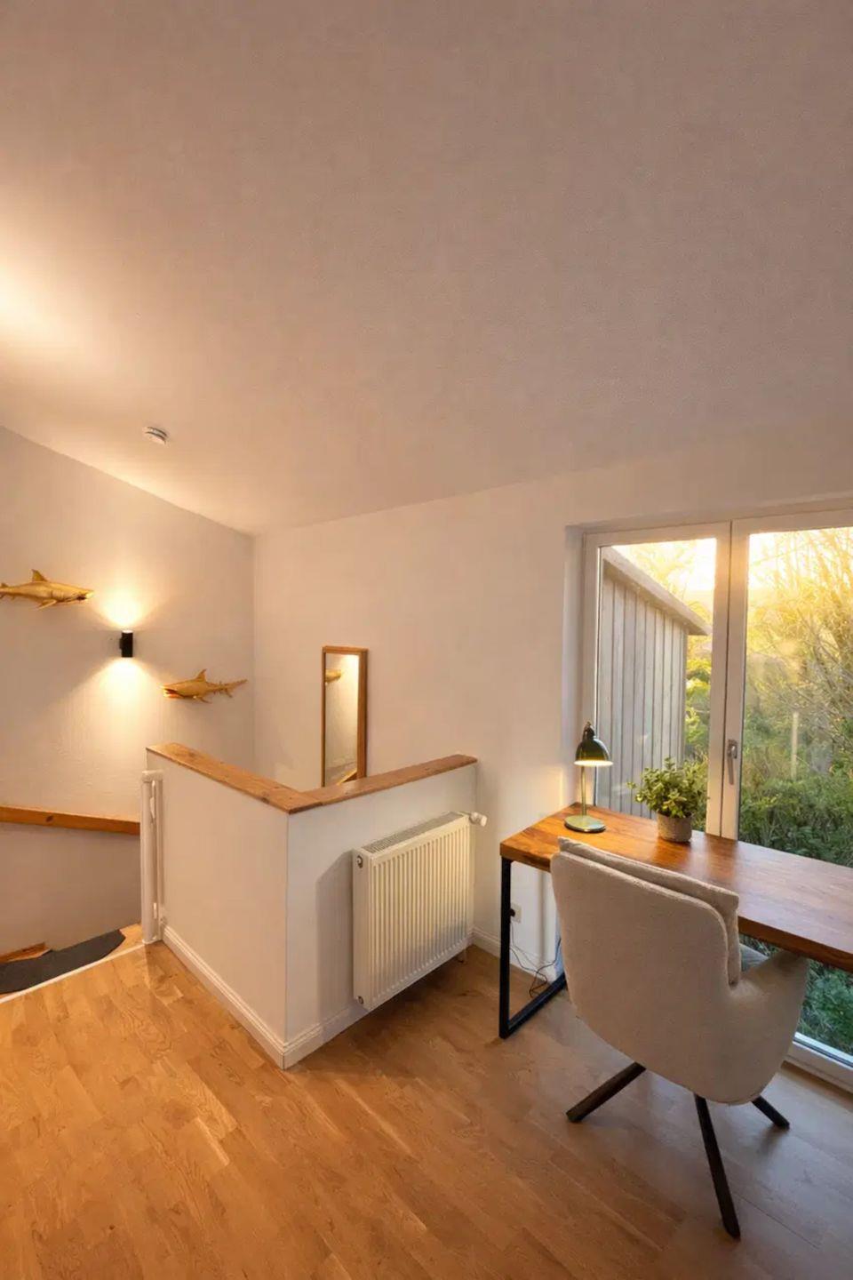 Auf jeder Etage stehen Ihnen zwei gemütliche Doppelschlafzimmer sowie ein großzügiges Duschbad zur Verfügung. Die offen gestaltete Wohnküche ist Treffpunkt für gemeinsame Mahlzeiten und lange Abende, während der helle Wohnbereich mit großen Fensterflächen den Blick in die Weite der Landschaft freigibt.