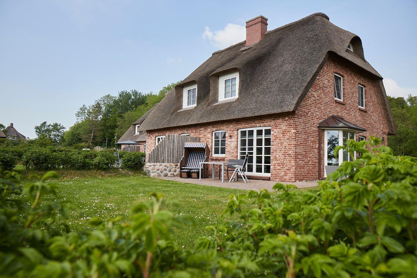 Vor den Toren St. Peter-Ordings liegt das mit Reet gedeckte Doppelhaus in traumhafter Lage, mit Blick über die Wiesen. Sonnenterrasse, großes Grundstück, traumhaft möbliertes Haus mit ca. 95qm Wohnfläche. Es bietet Platz für 1-7 Personen über 3 Etagen. In dem wunderschönen Ferienhaus sind max. zwei Haustiere zugelassen.