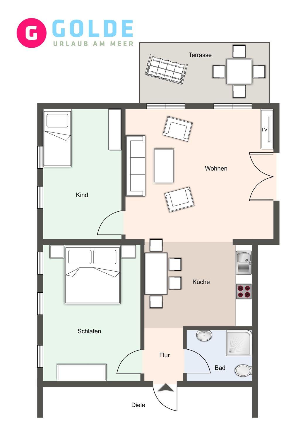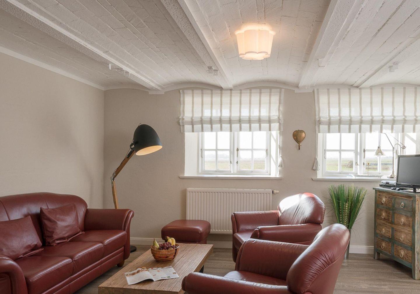 In der Erdgeschosswohnung befindet sich ein großzügiger Wohnraum mit einer offenen Küche und einem gemütlichen Essbereich. Für ruhevolle Entspannung sorgen 2 Doppelschlafzimmer. Eines mit Doppelbett und das andere mit einem Einzelbett. Die Wohnung verfügt über ein Duschbad. Sie haben einen Eingang über die stilvolle Diele. Das volle Wohlfühlprogramm erwartet Sie im Saunabereich, mit Ruheoase und eine sehr geräumigen Sauna, die gegen Gebühr von 5 Wohnung nutzbar ist.