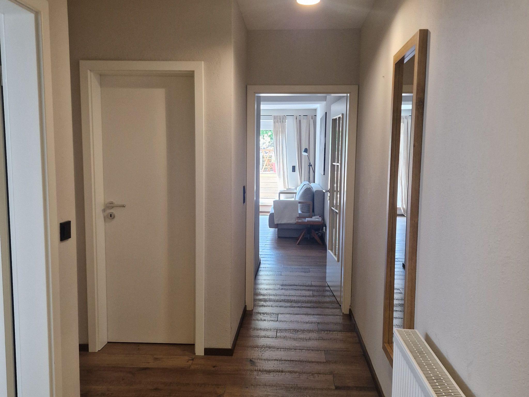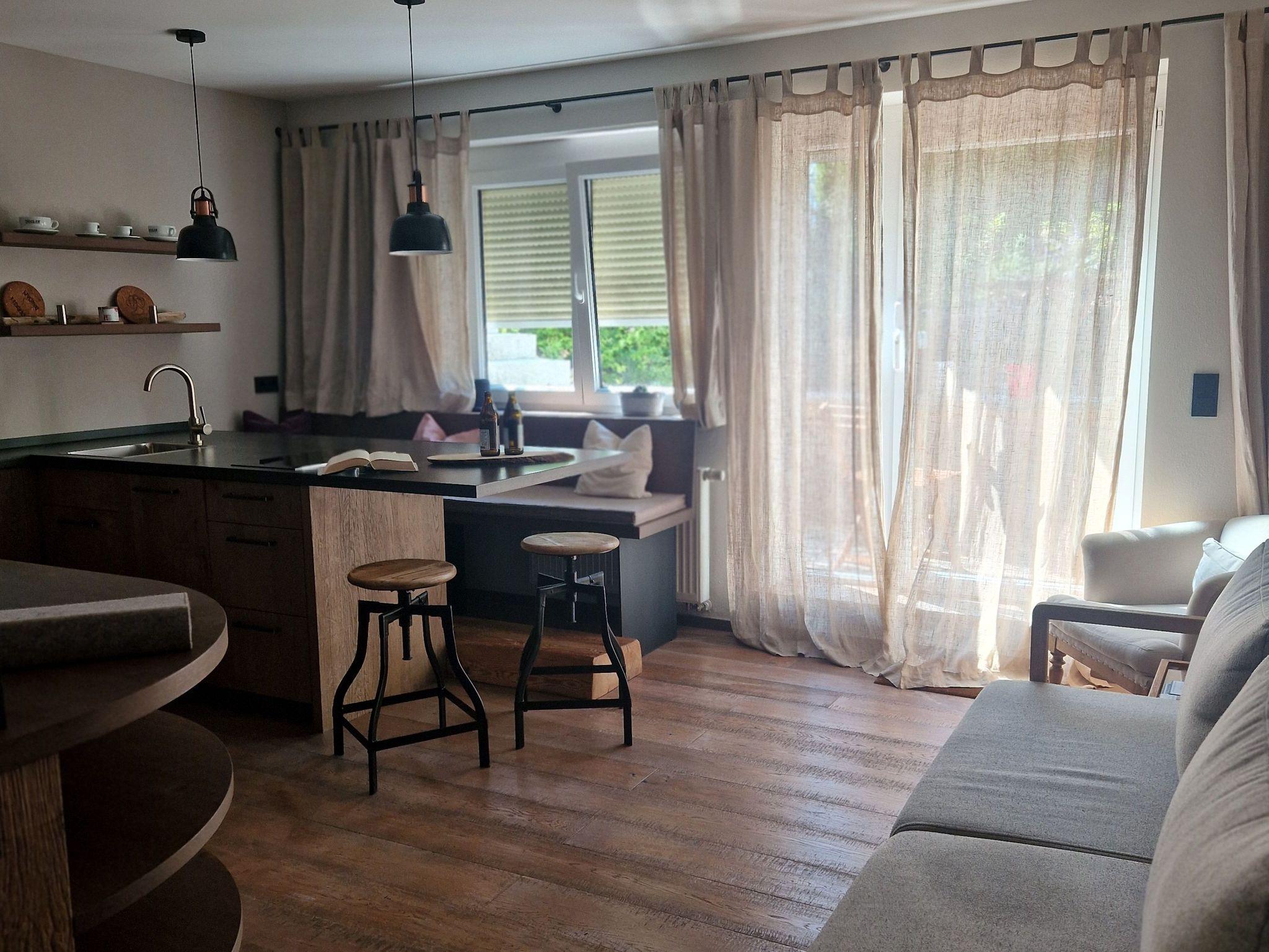 Es gibt zwei separate Schlafzimmer, die beide zur ruhigen Seitenstraße liegen, ein Bad mit begehbarer Dusche sowie eine offene, voll ausgestatteten Küche mit Inselfeeling, Barhockern und Eckbank. Vom lichtdurchfluteten Wohnbereich, in dem sich ein gemütliche Couch und Lesesessel befinden kommt man direkt zur sonnigen Terrasse .