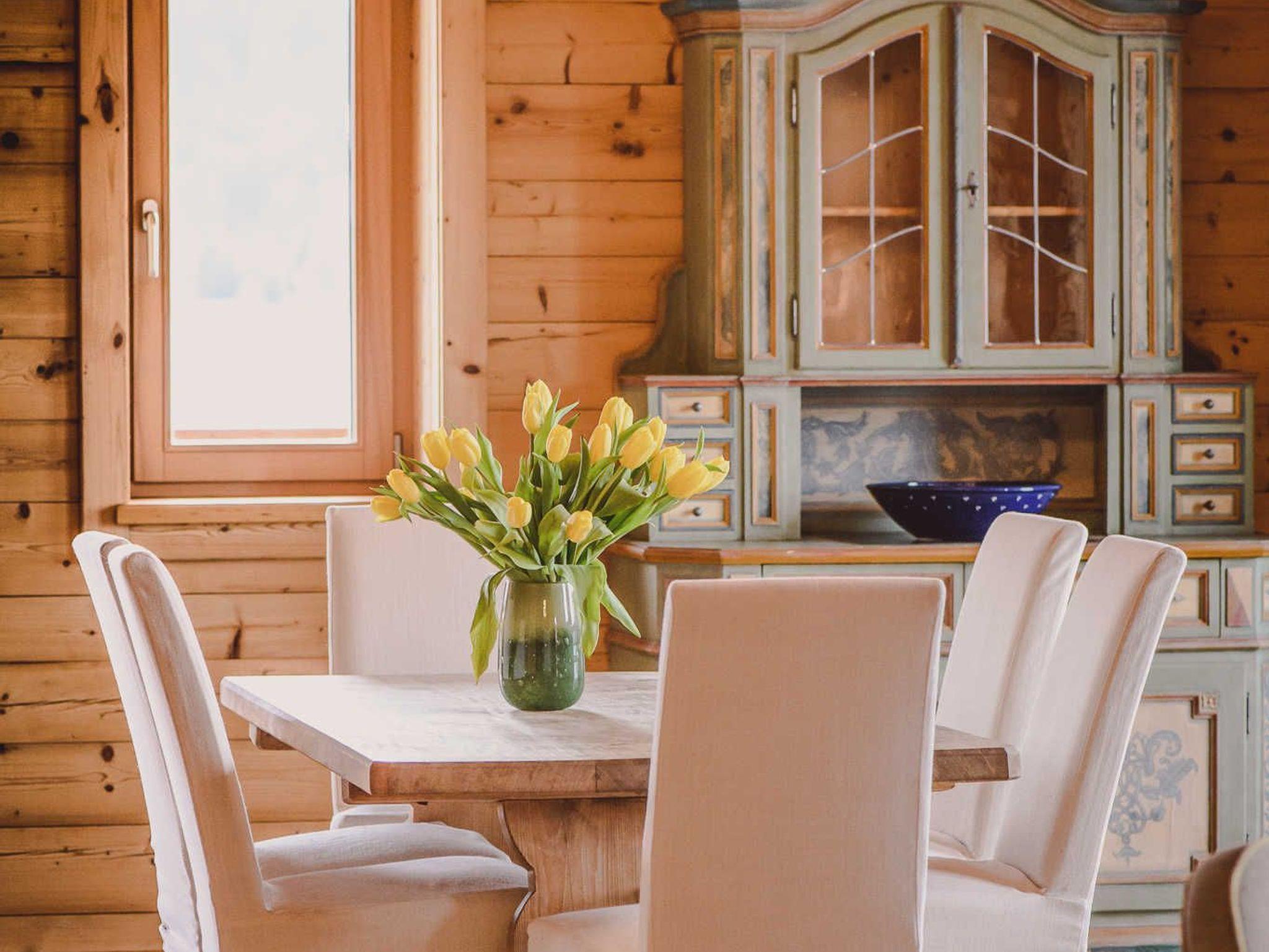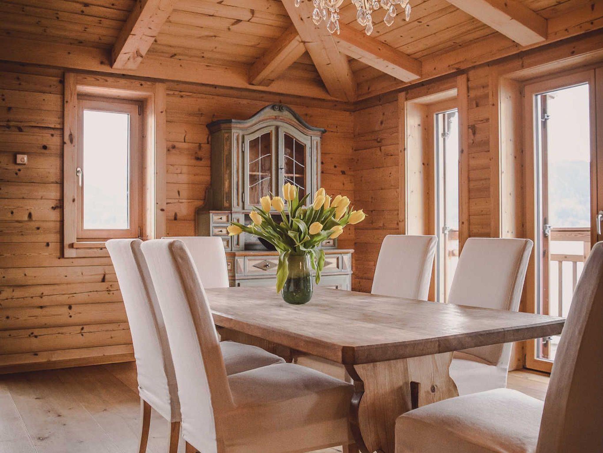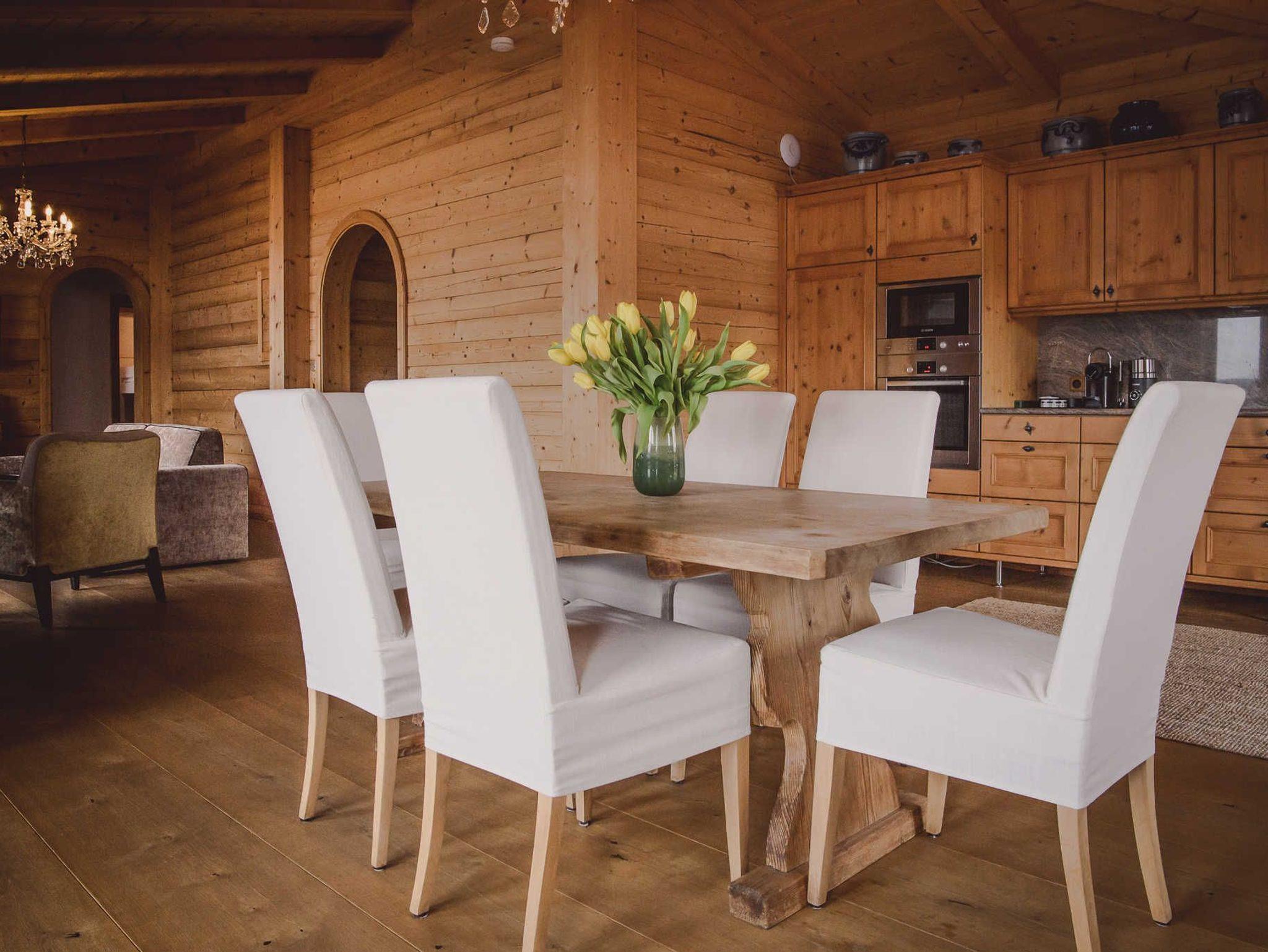 Im Wohnraum befindet sich ein großzügiger Esstisch für 6 Personen.