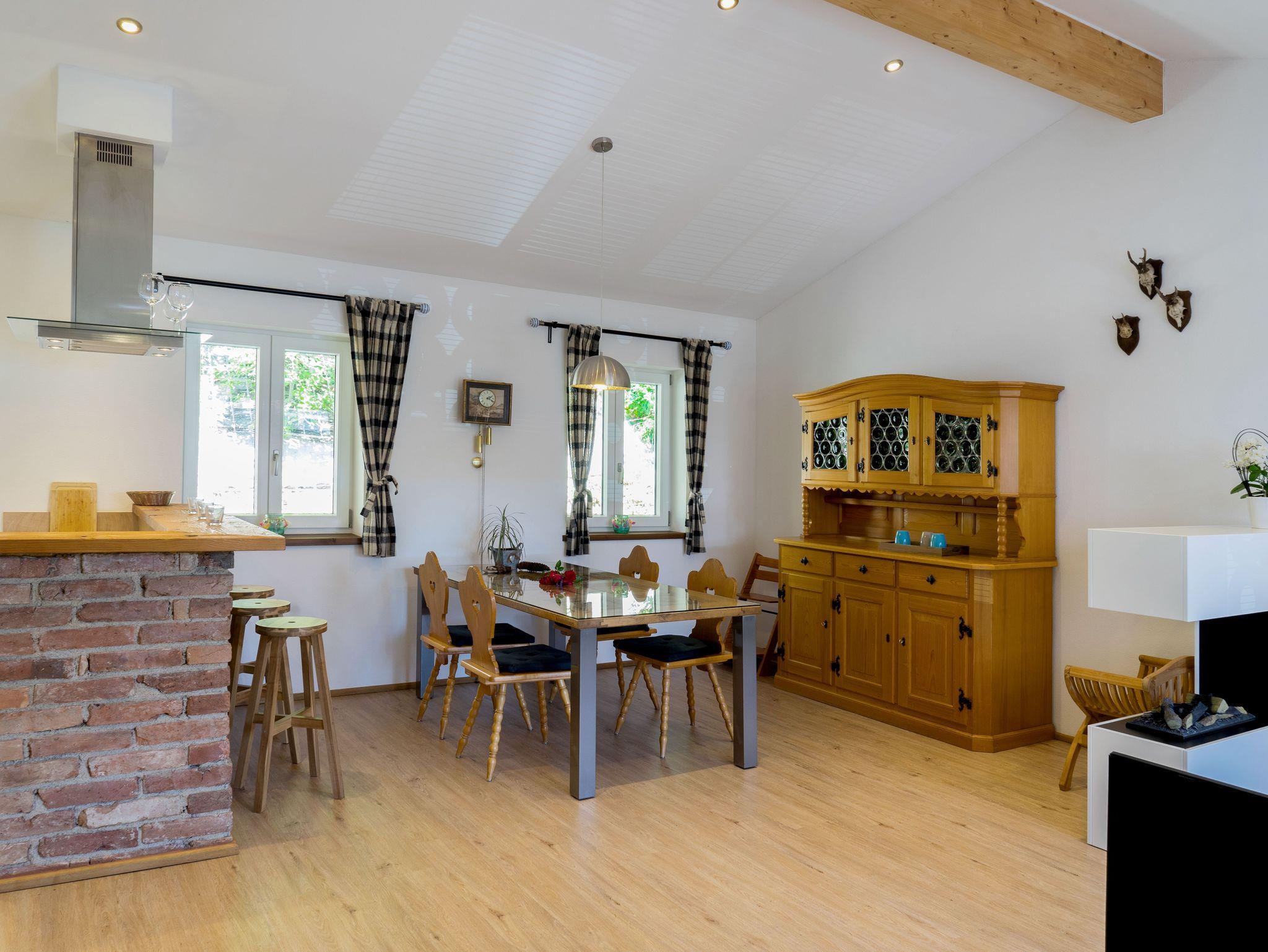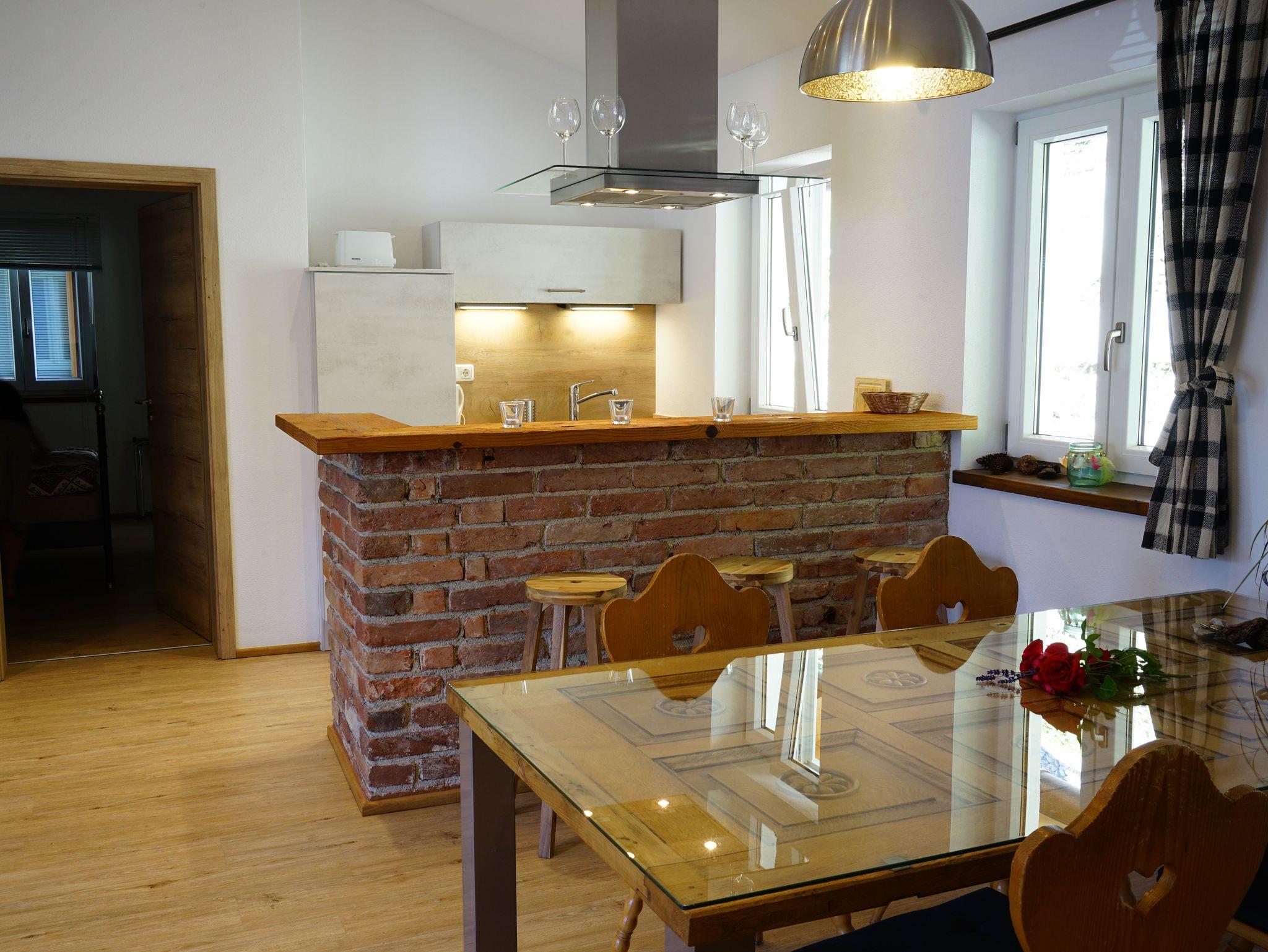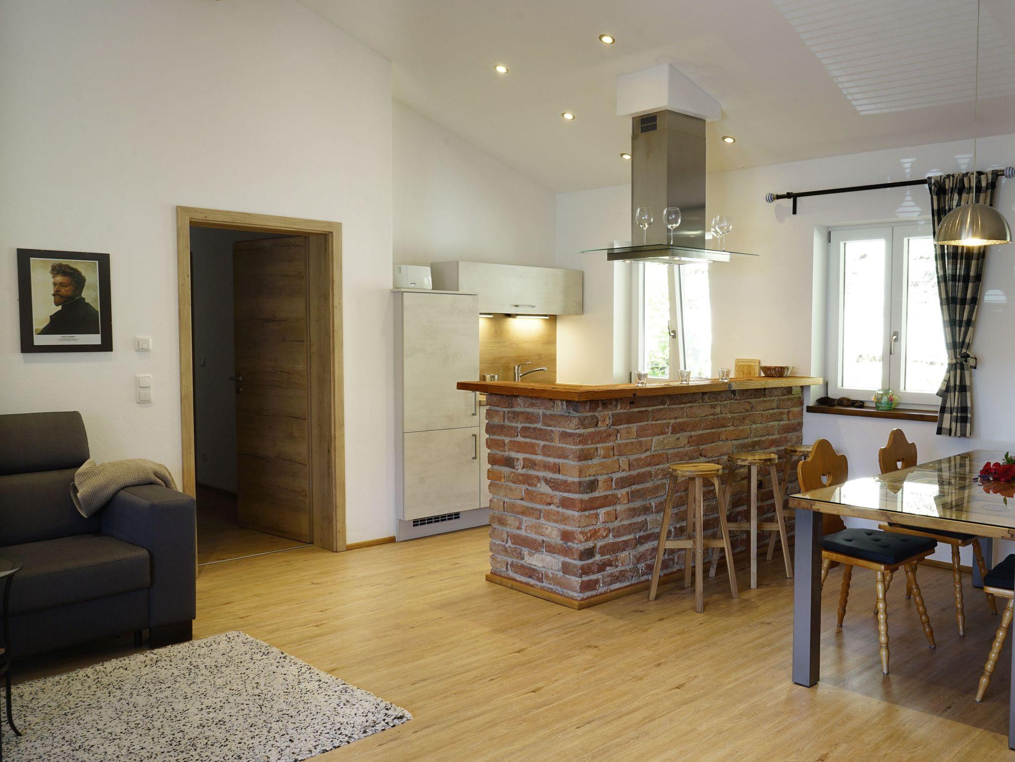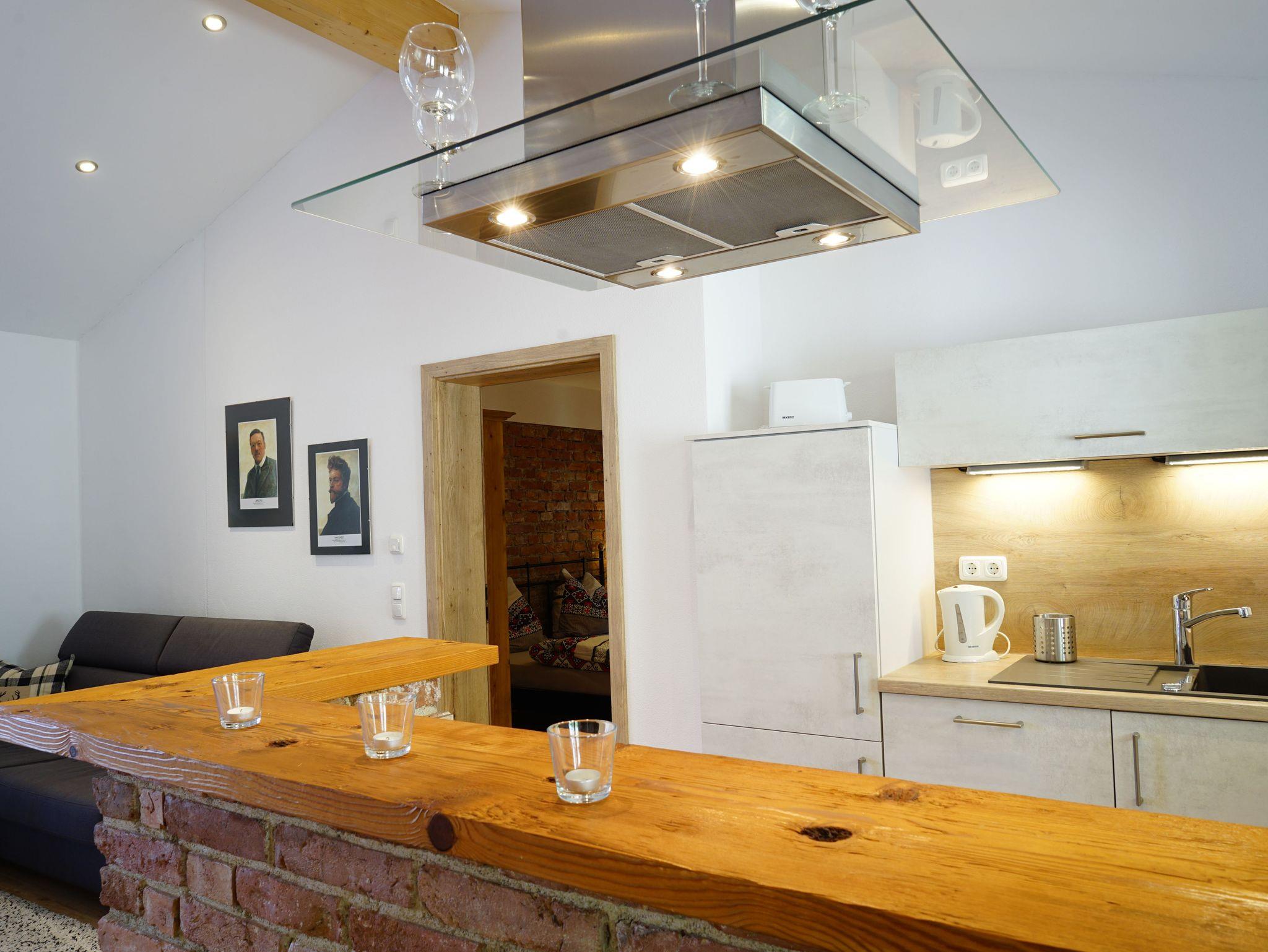 Wunderschöne Ferienwohnung ( 50qm ) im 1. Stock mit Blick auf den Wallberg. Diese ist über eine Außentreppe separat erschlossen und hat eine große Terrasse. Der offene Giebel erzeugt ein großartiges Wohngefühl und ein hochwertiger Deko-Kamin bringt am Abend die Gemütlichkeit. Neu ab 2023: hochwertiges großes Sofa mit verstellbaren Kopfstützen und 50 Zoll 4K Fernseher.