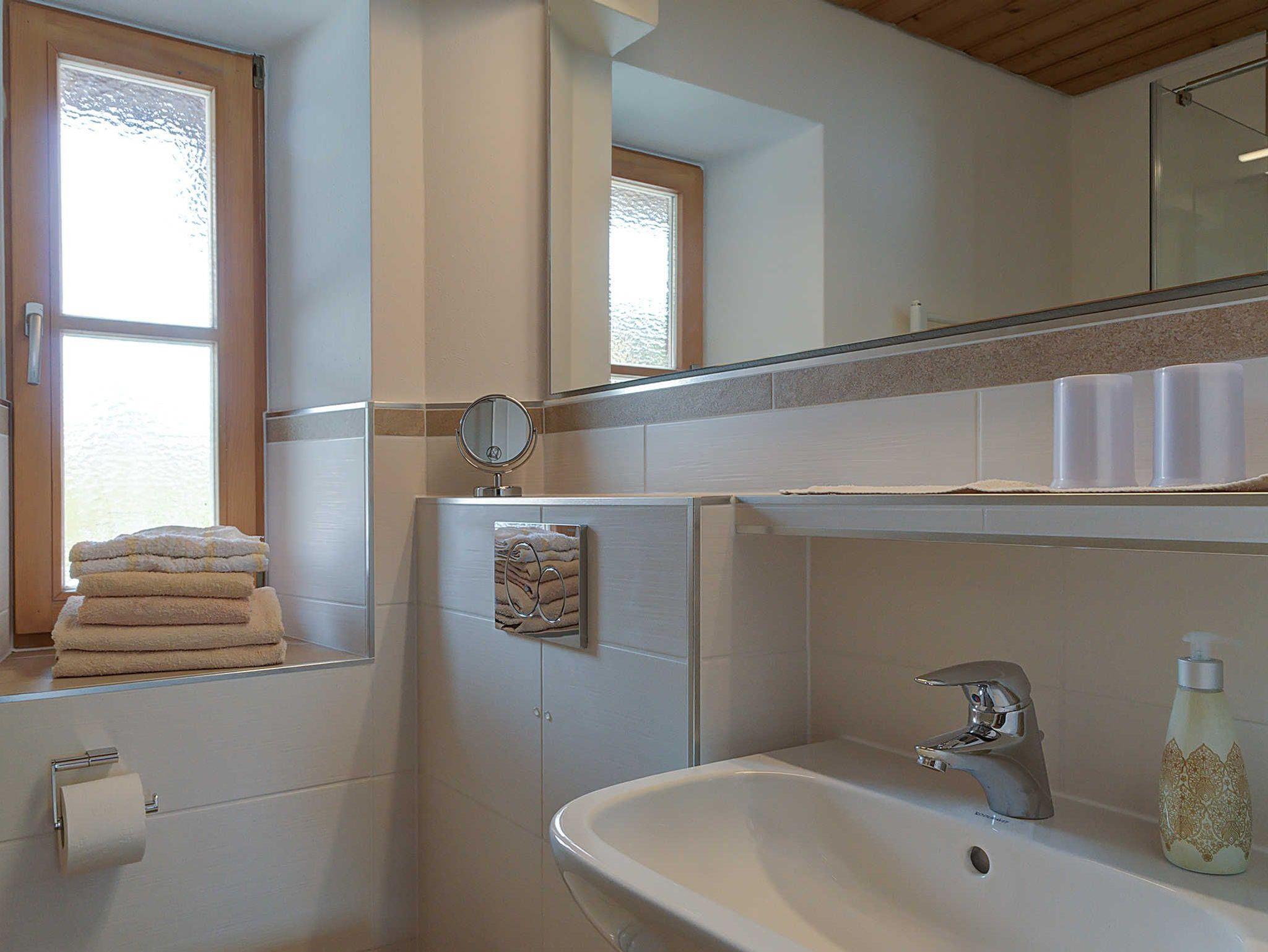 Die Ferienwohnung wurde umfassend erneuert: Holzfußböden, Zirbenholz-Schlafzimmer für guten Schlafkomfort sowie ein komplett neuer Sanitärbereich mit Dusche, Waschbecken, Spiegel über Wandbreite, WC und Fenster . Erneuerung Wohnzimmer Mobiliar und Interieur aller Zimmer Toshiba LED Flachbildschirm TV .