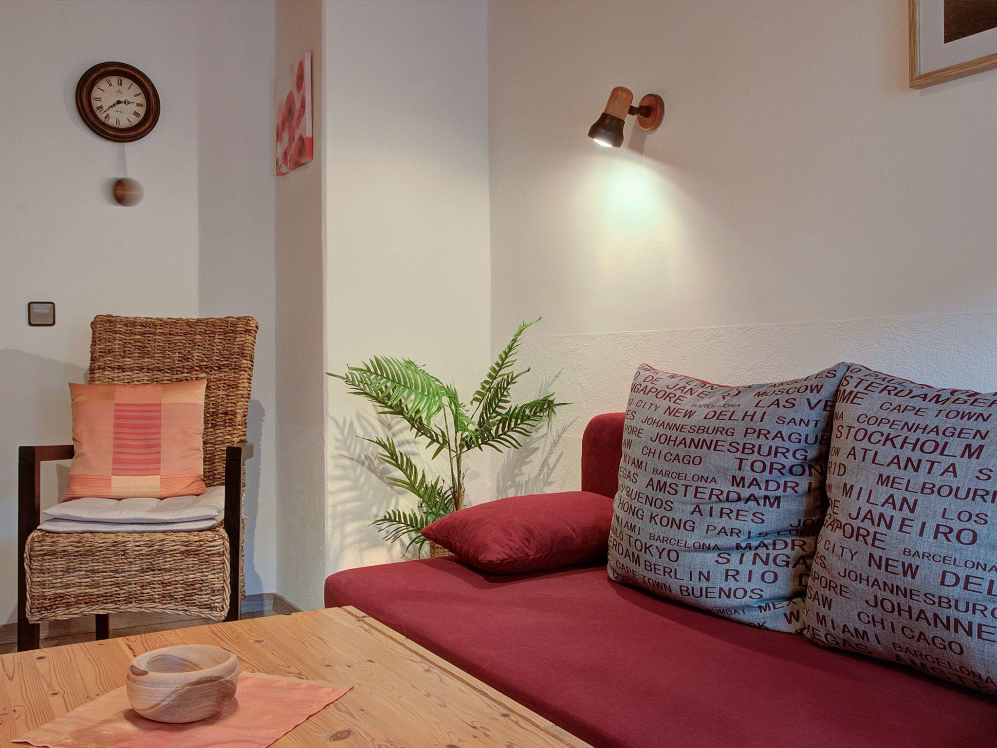 Die Ferienwohnung wurde umfassend erneuert: Holzfußböden, Zirbenholz-Schlafzimmer für guten Schlafkomfort sowie ein komplett neuer Sanitärbereich mit Dusche, Waschbecken, Spiegel über Wandbreite, WC und Fenster . Erneuerung Wohnzimmer Mobiliar , Erneuerung Interieur ( Fotos werden demnächst eingestellt ) Toshiba LED Flachbildschirm TV mit Internet TV falls Gäste Zugangscode mitbringen , CD-Player, Radio und Internet-WLAN sind selbstverständlich vorhanden.