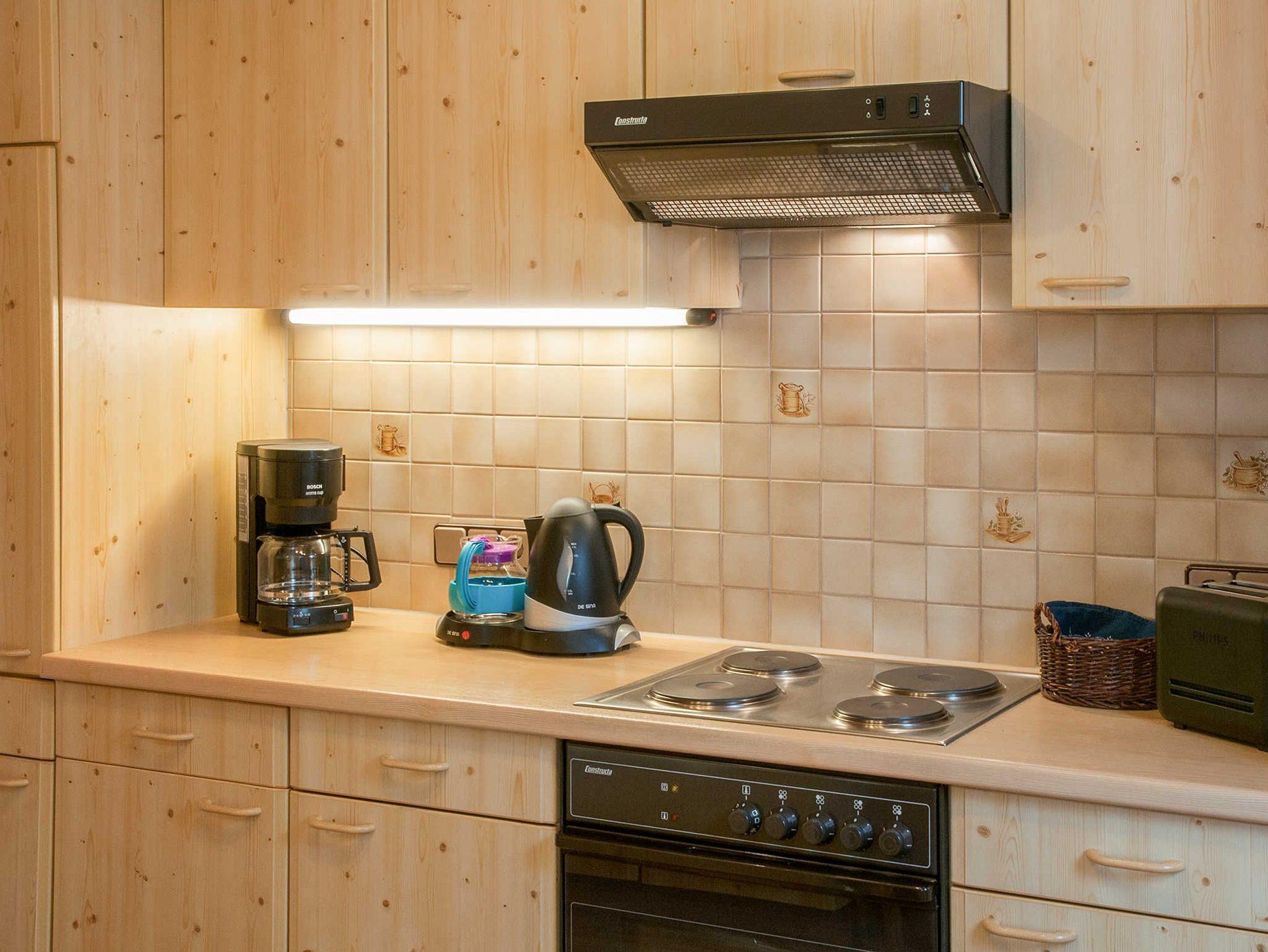 In der gut ausgestatteten Küche gibt es u.a. einen Elektroherd mit Ceranfeld sowie einen Geschirrspüler.