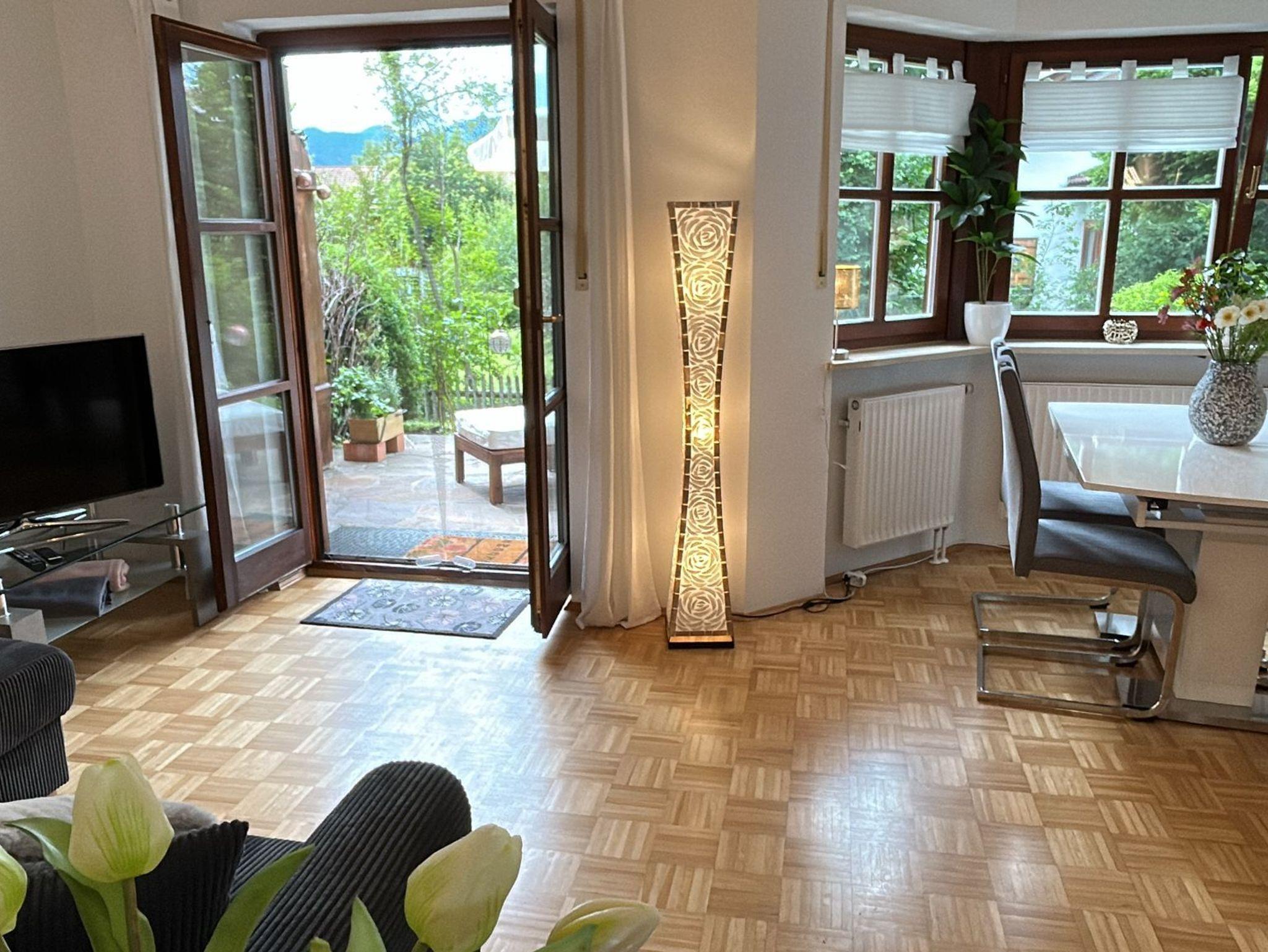 Die Wohnung befindet sich in einem typisch bayerischen, sehr gepflegten Landhaus und bietet trotz ihrer zentralen Lage eine ruhige, entspannende Atmosphäre. Die großzügige Terrasse mit kleinem Gartenanteil und Blick in den Garten sowie auf die Berge von Bad Wiessee lädt zum Entspannen ein. Die moderne geschmackvolle Einrichtung und die durchdachte Raumaufteilung machen die Wohnung zu einem harmonischen Rückzugsort.
