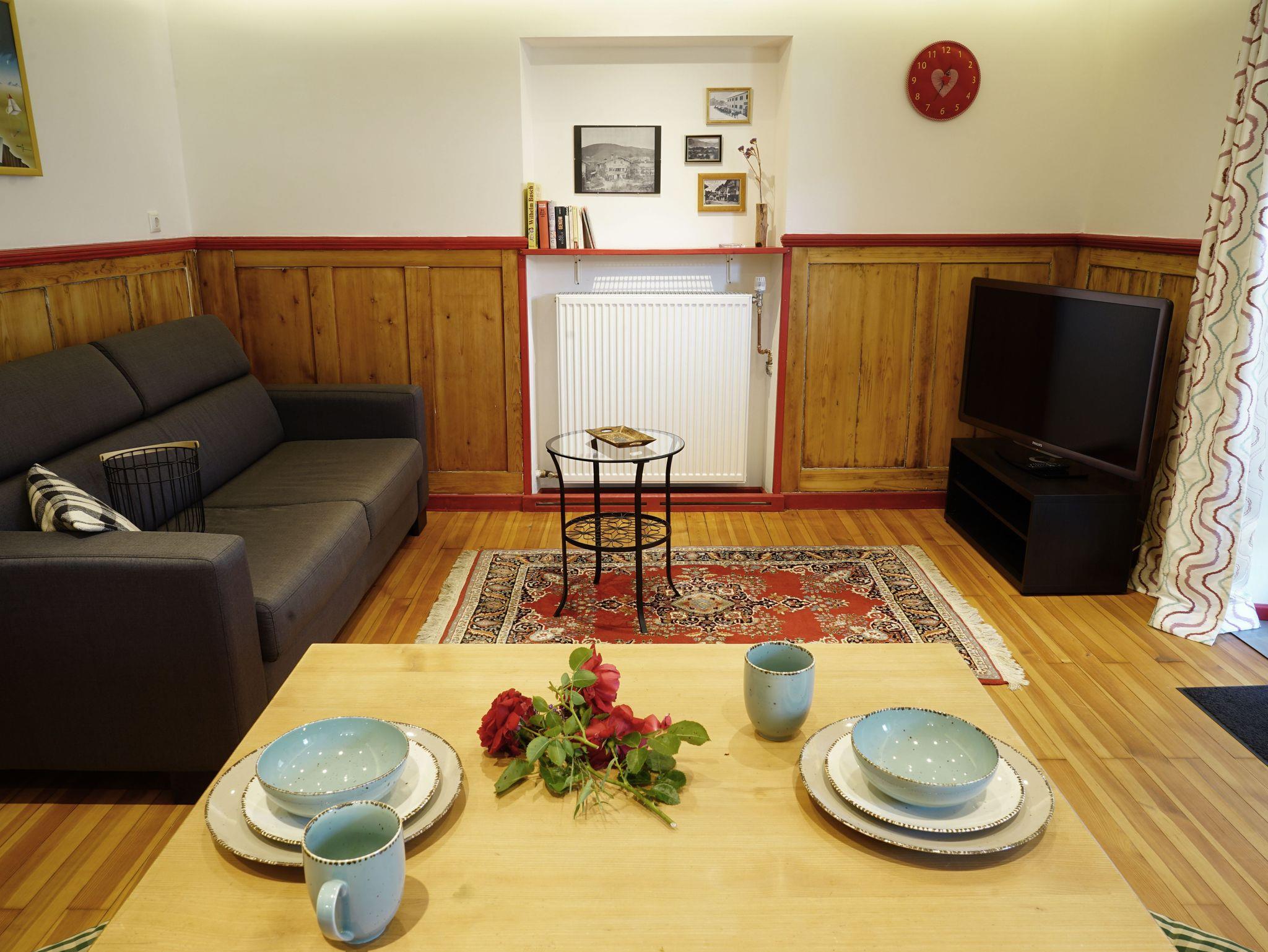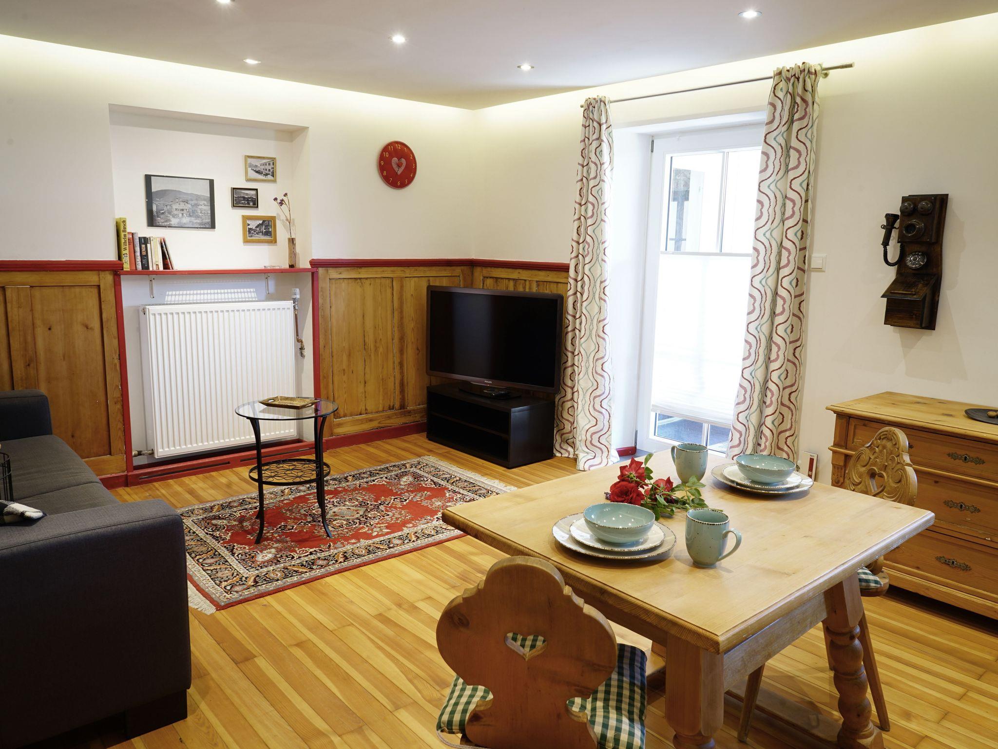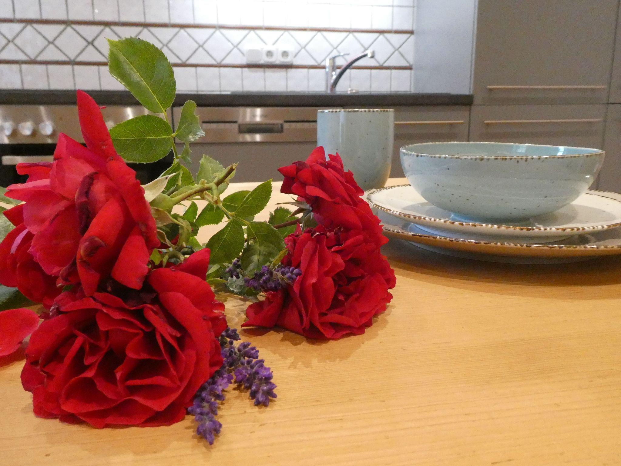 Schicke Ferienwohnung mit 40qm Wohnfläche im Bestandsgebäude. Komplett saniert in 2020. Erdgeschoss, eigener Eingang, hochwertiger Parkettboden im Wohnzimmer. Edle und behagliche Kombination aus alten und neuen Elementen. Große voll ausgestattete Küche mit Spülmaschine. Neu ab 2023: hochwertiges großes Sofa mit verstellbaren Kopfstützen und 50 Zoll 4K Fernseher.