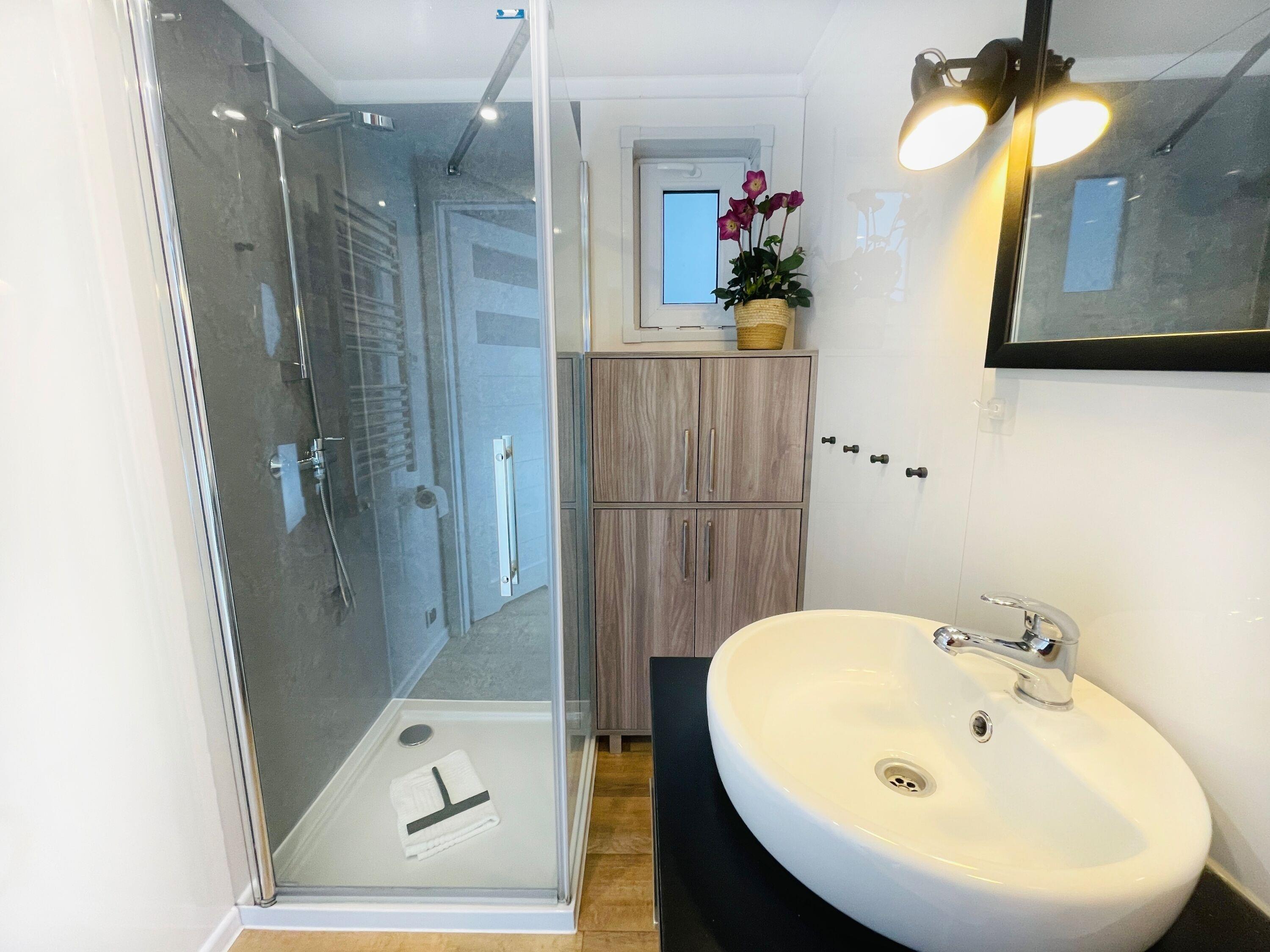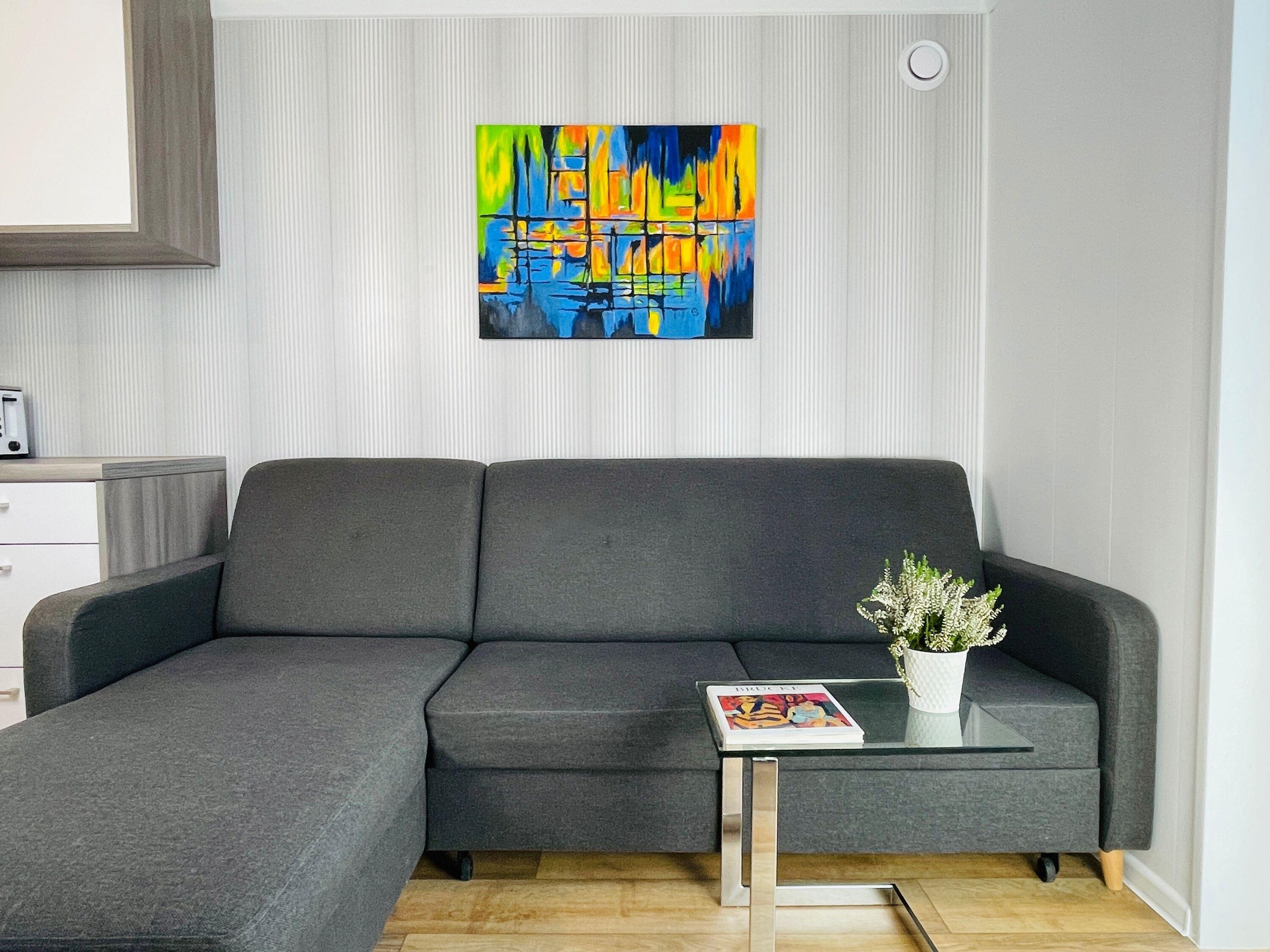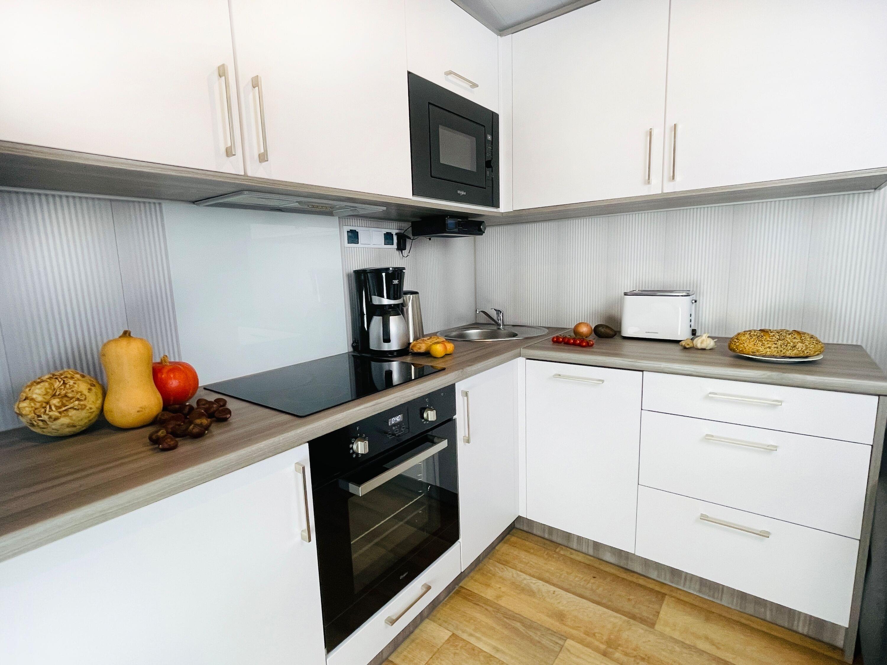 Am Strand des Gutes Teichhof erwartet Sie das Tiny House "Humboldt" für Ihren entspannten Urlaub am Meer. Dieses charmante Strandhaus hat Platz für bis zu 2 Erwachsene und 2 Kinder und bietet einen atemberaubenden Blick auf das Meer. Genießen Sie die Behaglichkeit eines Doppelbettes im Schlafzimmer sowie des eigenen Badezimmers mit Dusche. Die Wohnküche lädt zu gemeinsamen Kocherlebnissen ein und ist mit modernen Annehmlichkeiten wie einer Filterkaffeemaschine, Mikrowelle und Spülmaschine ausgestattet. An sonnigen Tagen lädt Ihre private 15 m2 große Terrasse im Garten zum Entspannen und Genießen ein. Im Wohnzimmer mit TV, DVD und Musikanlage finden Sie erholsame Stunden der Unterhaltung. Der Strand liegt direkt vor Ihrer Tür und verspricht Momente der Ruhe und Erholung. Überdachte Fahrradabstellmöglichkeiten und Parkplätze für Ihr Auto stehen auf dem Gelände des Gutshofs zur Verfügung. Die einzigartige Lage des Teichhofs ermöglicht es Ihnen, die idyllische Natur zu erkunden, während Sie zugleich von der Nähe zu zwei Restaurants und der nächsten Stadt profitieren, die nur 5 Kilometer entfernt liegt und eine Vielzahl von Einkaufs- und Restaurantmöglichkeiten bietet. Zum Be- und Entladen können Sie gerne direkt am Strandhaus halten. Das Check-in erfolgt bequem eigenständig. Auf dem Gelände des Teichhofes erwartet Sie zudem ein Streichel-Zoo mit Schafen und eine Wiese mit Ponys. Das Tiny House James Cook bietet somit die ideale Kombination aus Ruhe und Erholung sowie der Nähe zu verschiedenen Aktivitäten und Annehmlichkeiten für einen unvergesslichen Urlaub.