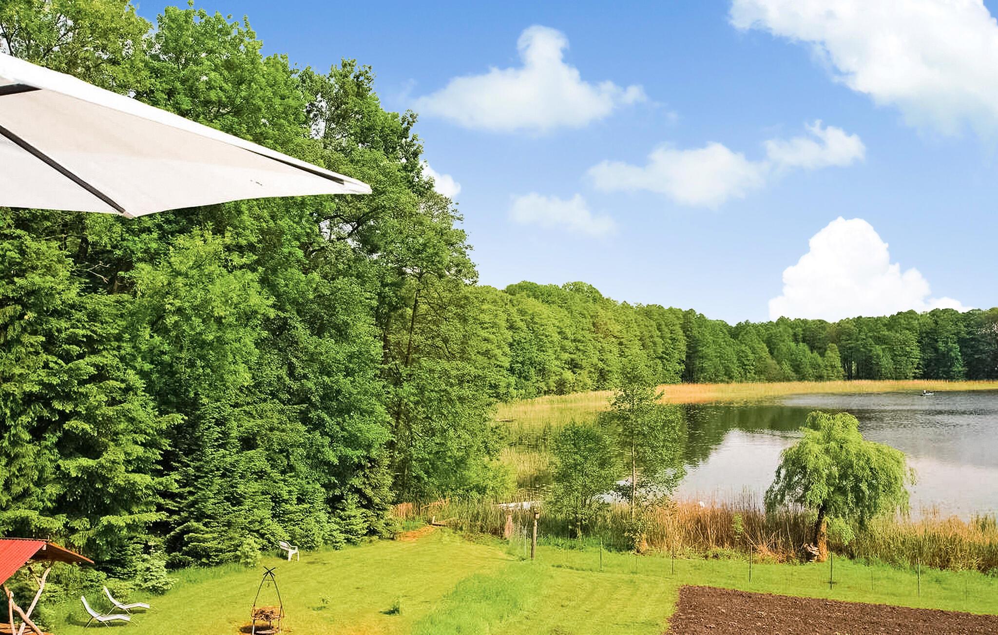 Denne ferielejlighed er en af tre separate ferielejligheder i et sommerhus. Det er bygget i 2006 og ligger på en rolig ejendom ved vandet, direkte ved søen Polsensee, cirka 5 km syd for Templin i Dargersdorf-distriktet. Badestranden ligger ca. 200 m væk. Der er en båd og fiskemole med en robåd (gebyr 3,00 euro/dag), et fælles vaskerum med vaskemaskine, en terrasse, en grillplads, nogle med balkon med udsigt over søen, et område til solbadning og en parkeringsplads. plads. Et selskabs- og festlokale med bar og pejs kan lejes efter behov. Brødservice i weekenden efter aftale. Inkluderet i den samlede pris: sengelinned, vand, energi og slutrengøring. Medbring venligst dine egne håndklæder. Faciliteter med stue (polstrede møbler, satellit-tv, radio), soveværelse (dobbeltseng, liggestol), åbent køkken-alrum med tekøkken, balkon med opholdsområde og søudsigt, bad/toilet, pejs, FB varme, centralvarme. Tremmeseng til levering. Templin er turistcentret i Uckermark. Sikkert ikke kun på grund af de smukke omgivelser fulde af skove og søer. Udendørs swimmingpools, naturkurbade, bådudlejning, passagerbådture i byen. Cirka 4 km uden for byen åbnede den vestlige by Silverlake City i 2004 med forskellige fritidsattraktioner. Trolleyture kan tages mellem Templin og Fürstenberg.