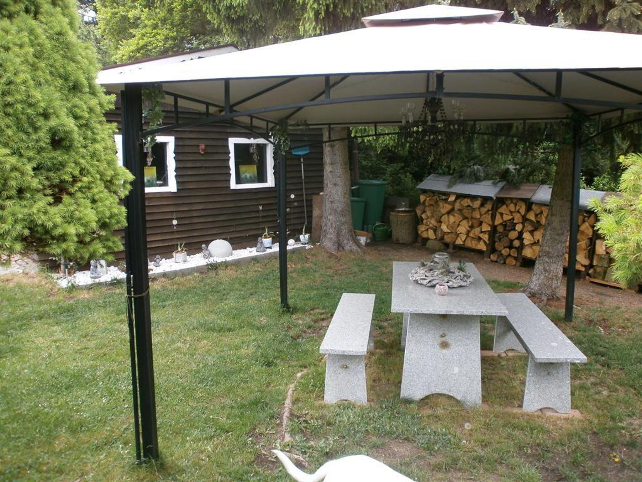 Unser Ferienhaus liegt sehr ruhig in unmittelbarer Nähe von Wald und Wiesen mit Gartensitzecke und kleiner Terrasse.
