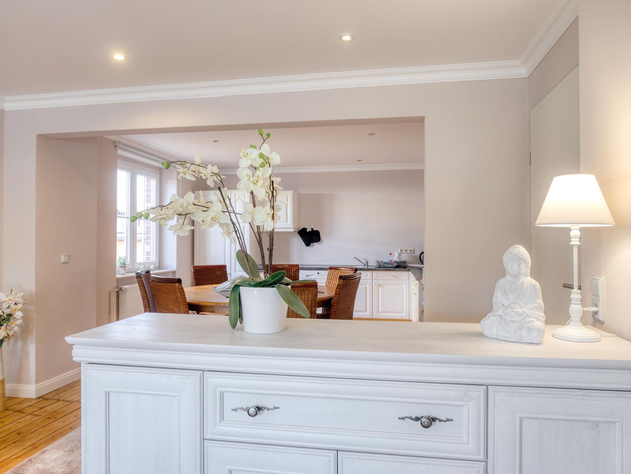 4 komfortabel eingerichtete Ferienwohnungen (zwei Wohnungen in der 1. Etage und eine Wohnung im Dachgeschoss). Mobiliar zum Wohlfühlen und kostenfreies WLAN! Die Wohnungen verfügen über Wohnzimmer mit gemütlicher Sitzecke (Aufbettung möglich) und SAT-TV. Schlafzimmer. Küche mit Geschirrspüler, Backofen, Mikrowelle, E-Herd mit Dunstabzugshaube, große Kühlgefrierkombination, Küchengeräte - Kaffeemaschine, Wasserkocher, Toaster. Anspruchsvolles Bad mit einer Dusche mit ebenerdigem Einstieg. Ansprechende Flurgestaltung. Hofbereich mit Freisitz und Gartenmöbel. Grill. Kostenfreie PKW-Stellplätze. Bei Bedarf Wäscheservice.