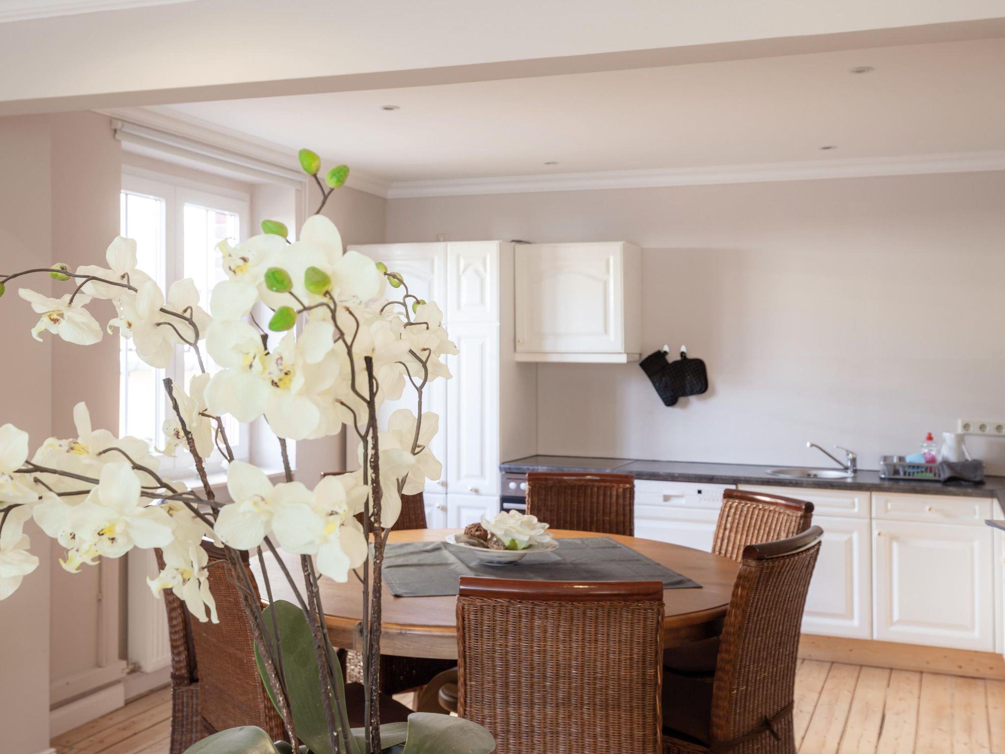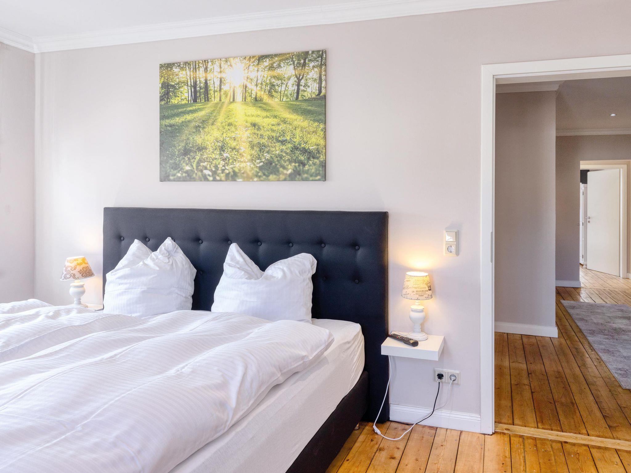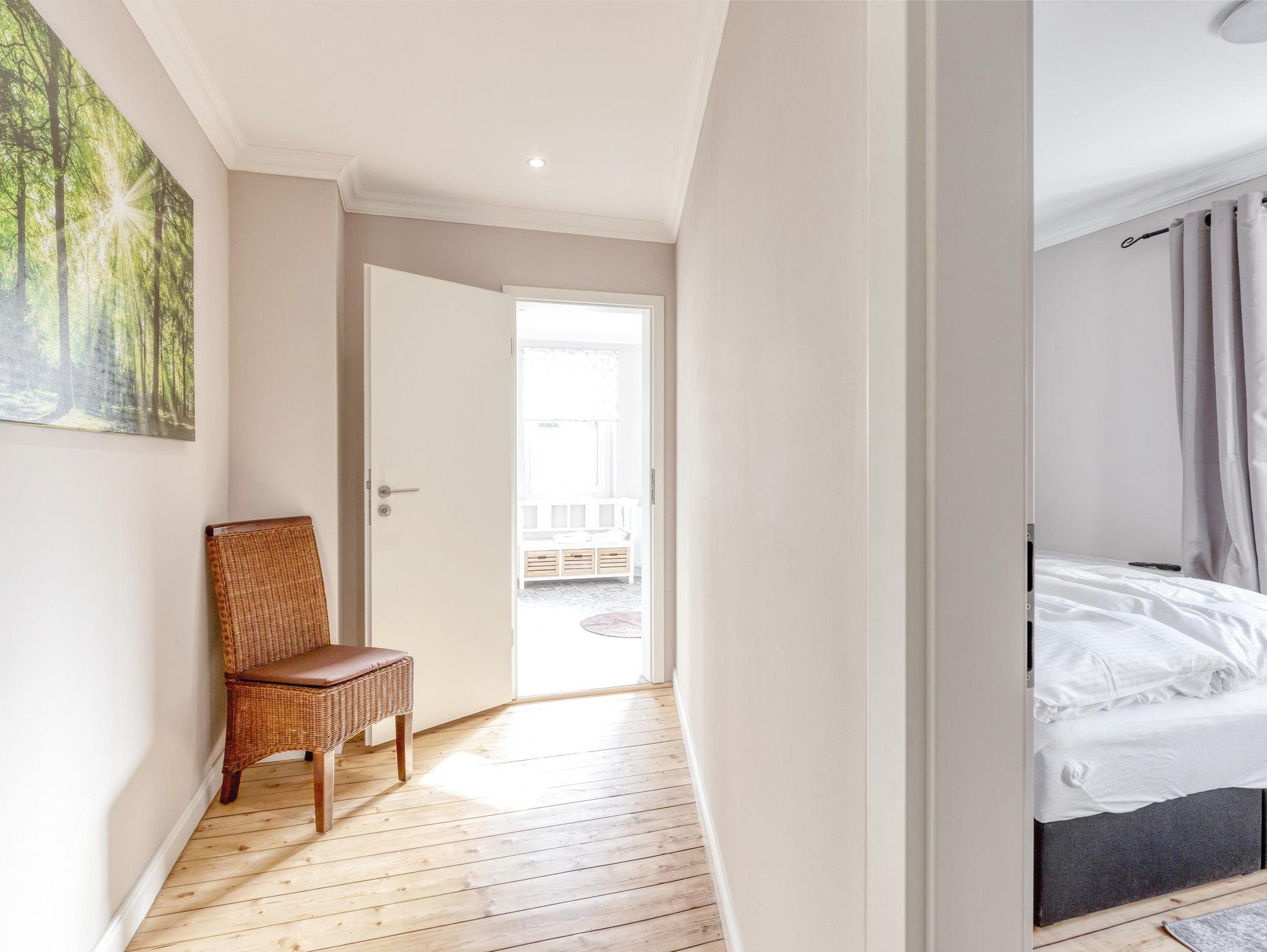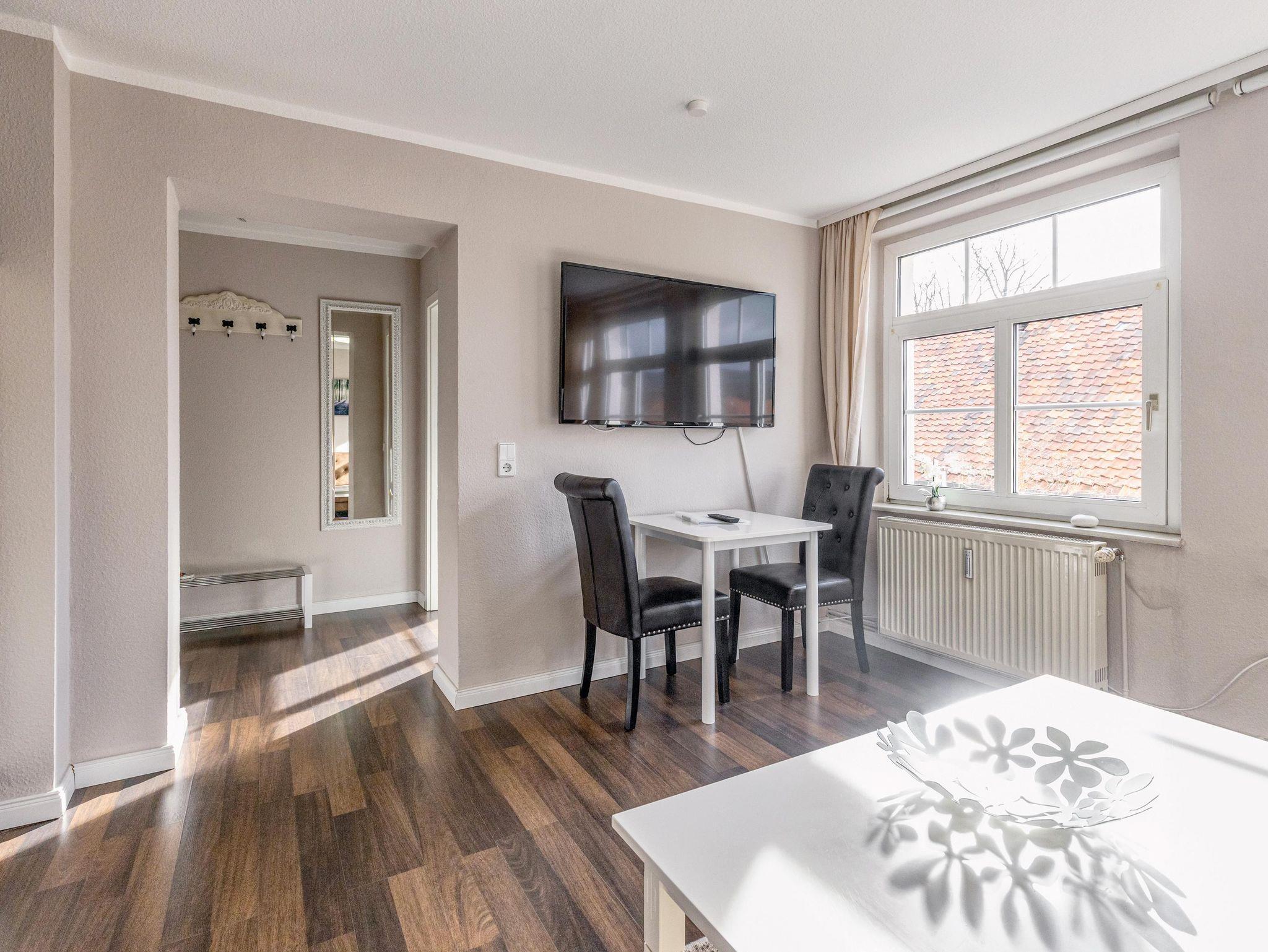 4 komfortabel eingerichtete Ferienwohnungen (zwei Wohnungen in der 1. Etage und eine Wohnung im Dachgeschoss). Mobiliar zum Wohlfühlen und kostenfreies WLAN! Die Wohnungen verfügen über Wohnzimmer mit gemütlicher Sitzecke (Aufbettung möglich) und SAT-TV. Schlafzimmer. Küche mit Geschirrspüler, Backofen, Mikrowelle, E-Herd mit Dunstabzugshaube, große Kühlgefrierkombination, Küchengeräte - Kaffeemaschine, Wasserkocher, Toaster. Anspruchsvolles Bad mit einer Dusche mit ebenerdigem Einstieg. Ansprechende Flurgestaltung. Hofbereich mit Freisitz und Gartenmöbel. Grill. Kostenfreie PKW-Stellplätze. Bei Bedarf Wäscheservice.