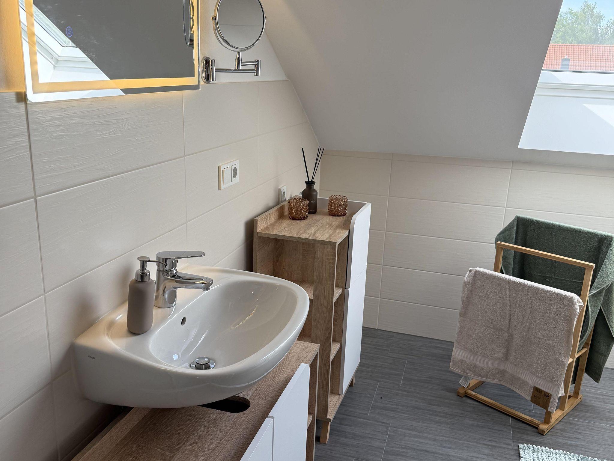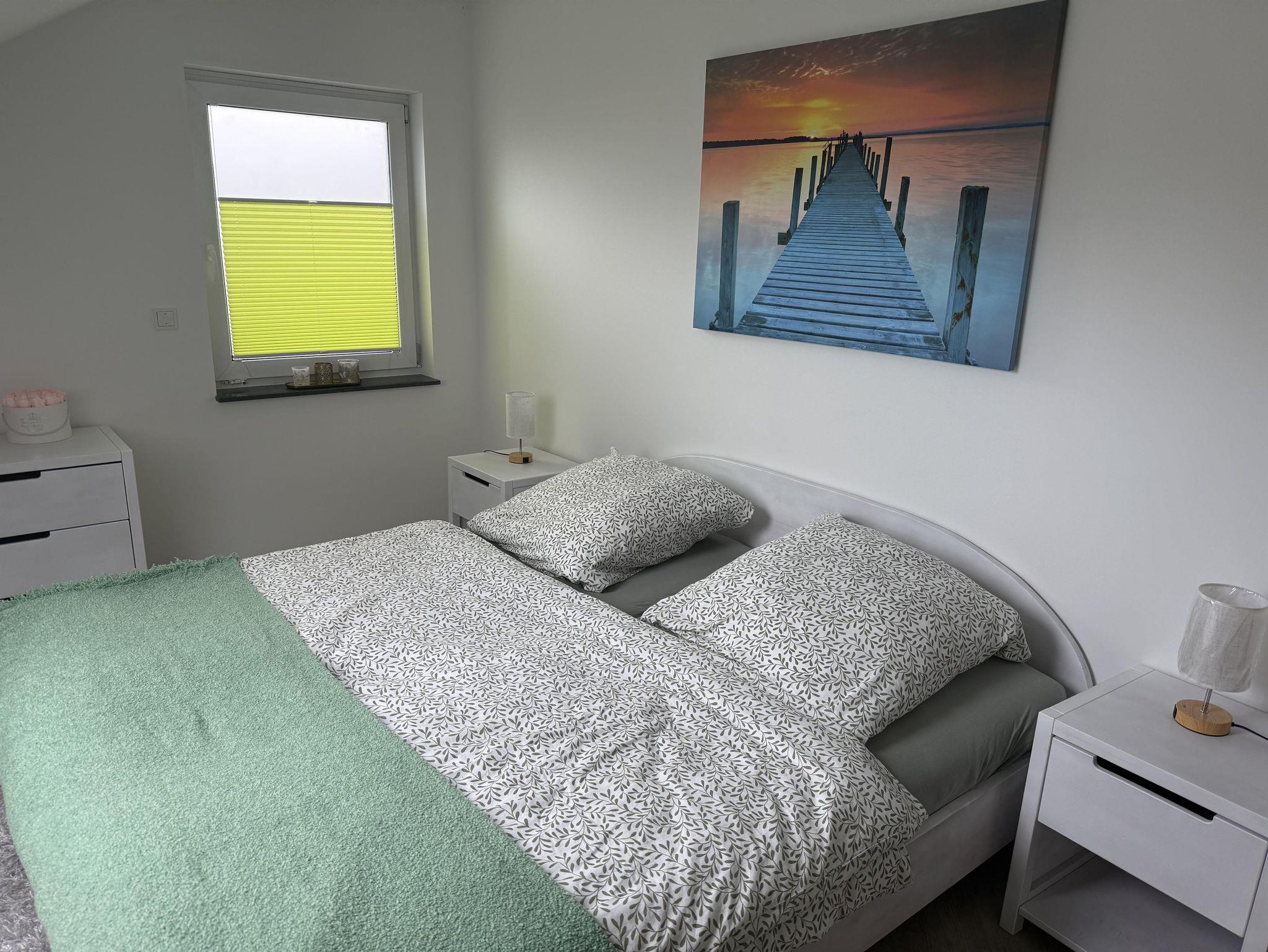 Modern eingerichtete Ferienwohnung mit separatem Eingang, Flurbereich, geräumigem Wohnzimmer, Sitz-und Essbereich, TV. Schlafzimmer mit Doppelbett. Ankleidezimmer. Gut ausgestatte Küche mit E-Herd, Geschirrspülmaschine, Kühlschrank, Kaffeemaschine, Toaster, Wasserkocher. Bad mit Dusche/WC. PKW-Stellplatz direkt am Haus. Sitzmöglichkeit im Aussenbereich, Grill vorhanden. Im Übernachtungspreis enthalten Bettwäsche/Handtücher in der Erstausstattung, Endreinigung und weitere Verbrauchskosten. Babybett und Kinderhochstuhl vorhanden. Der Gästebeitrag/Kurtaxe ist exklusive. Ihr Hund ist bei uns Willkommen.Aufpreis Hund/Nacht: 8,00 Euro