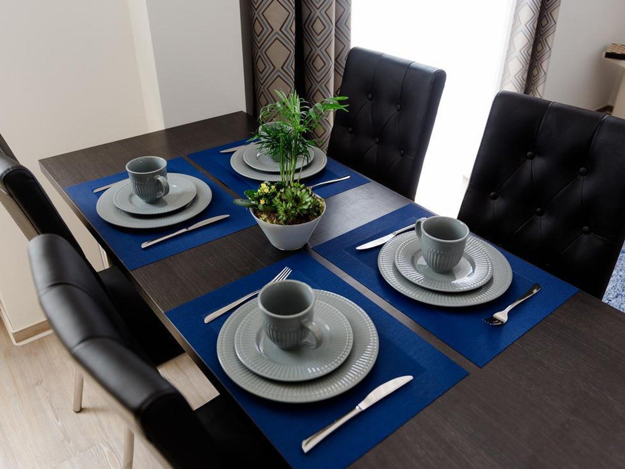Die Ferienwohnung ble (blau) verfügt über ein Wohnzimmer mit Flachbild-Sat-TV. Balkon, Essbereich und eine Küche mit einem Geschirrspüler, Backofen, Mikrowelle, Toaster sowie einer Kaffeemaschine. Das ansprechende Bad ist mit Dusche und WC sowie Haartrockner ausgestattet. Schlafzimmer mit Doppelbett. Kostenfreie Privatparkplätze. Freisitz mit Terrassenmöbel und Grillmöglichkeit. Kostenfreies WLAN.
