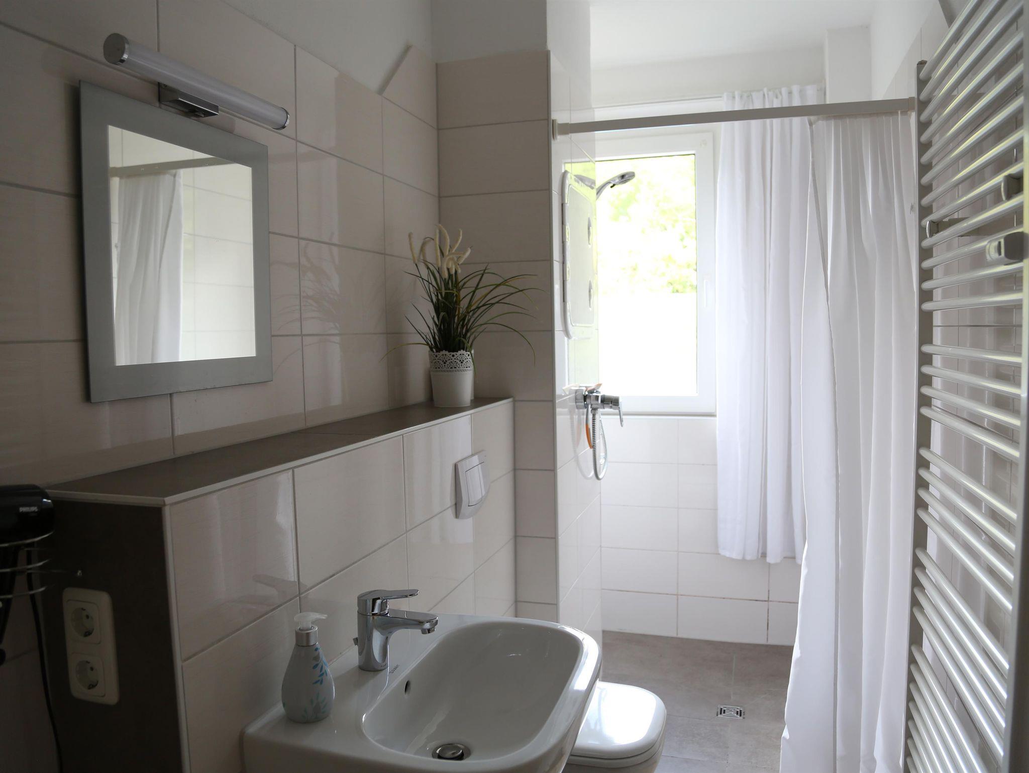 In unserem Bäder befinden sich eine Badewanne (linke WE) oder eine ebenerdigen Dusche (rechte WE).