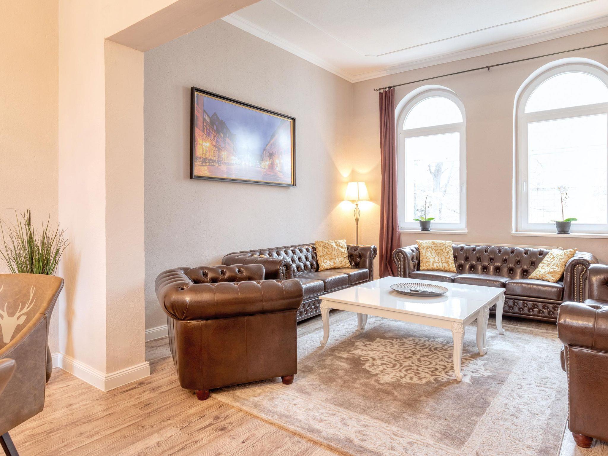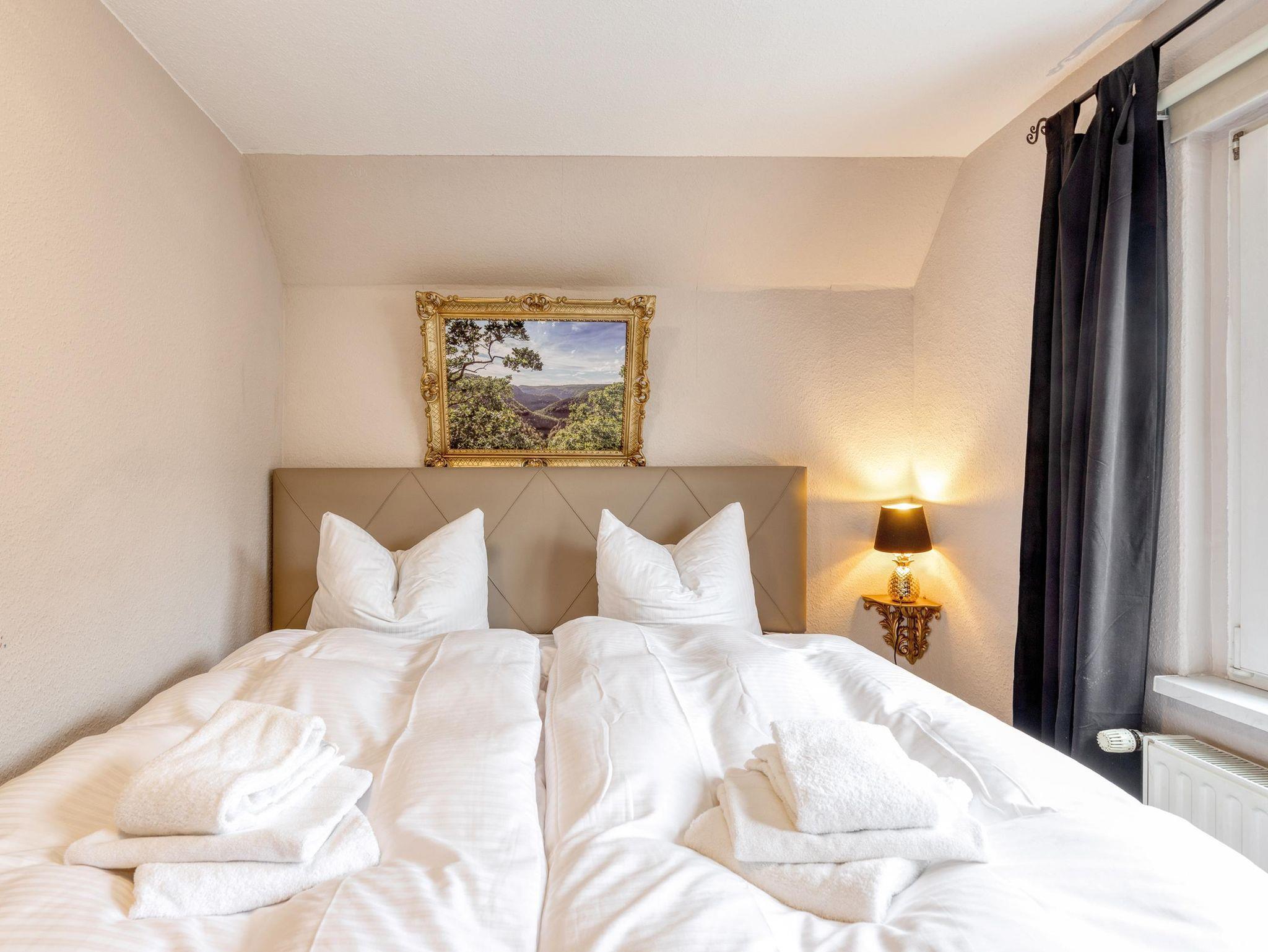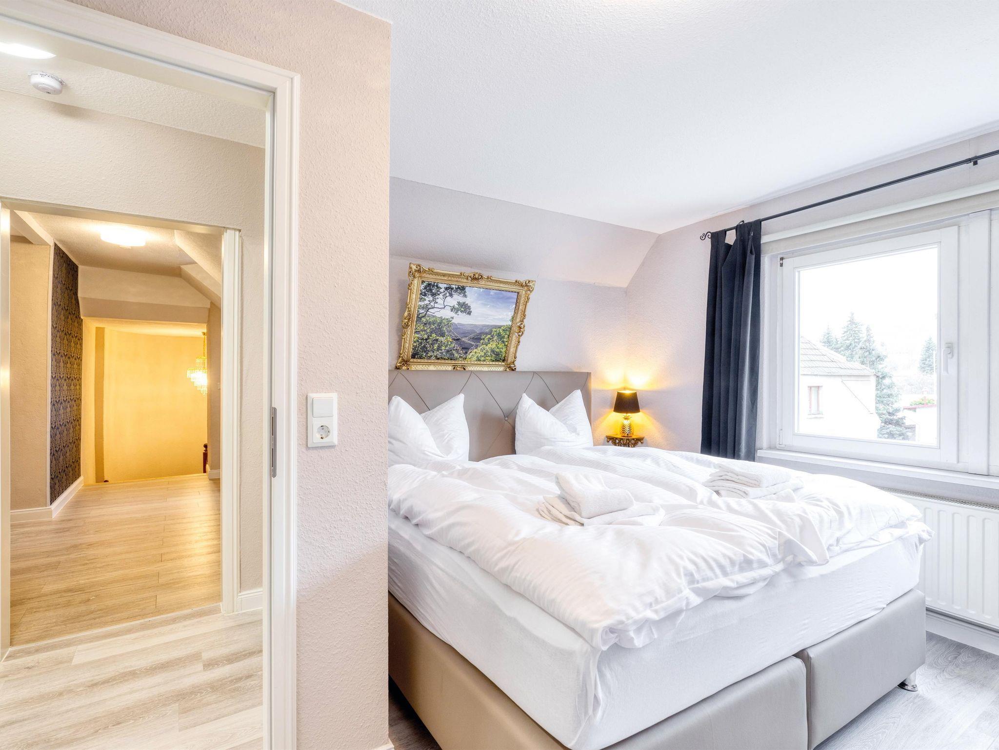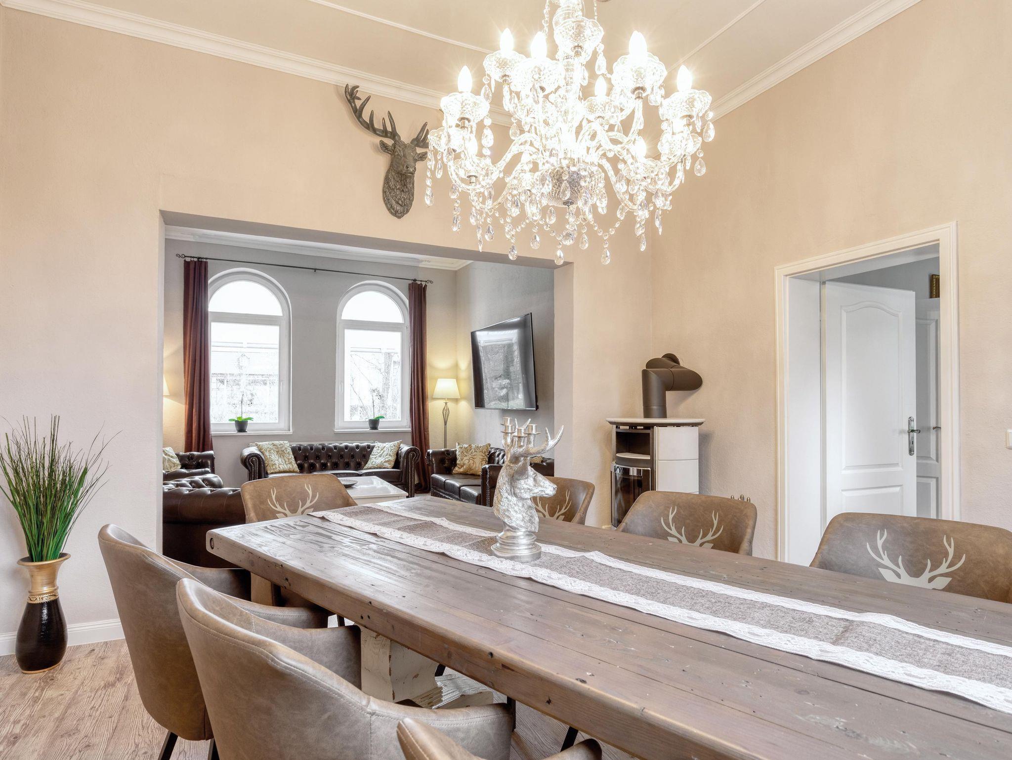 Dieses Ferienhaus im Jugendstil, ist ein Objekt der ganz besonderen Art. Es bietet auf 140 m² viel Platz für 9 Gäste. Nicht nur das Gebäude ist herrschaftlich, auch die Inneneinrichtung spiegelt den Charme wider. Eine Panoramasauna mit Blick auf die Bode und angrenzender Außendusche steht für unsere Übernachtungsgästen, innerhalb der Anlage, kostenfrei zur Verfügung.