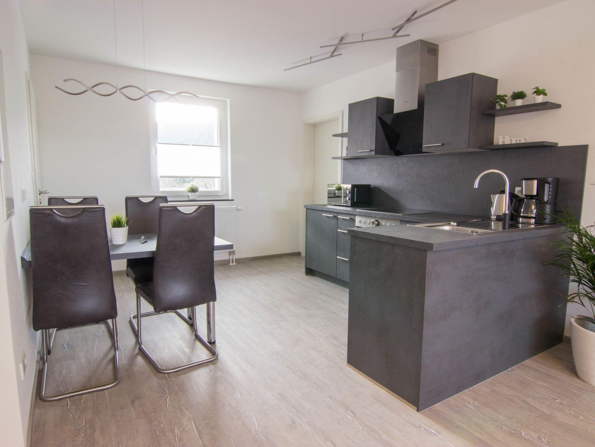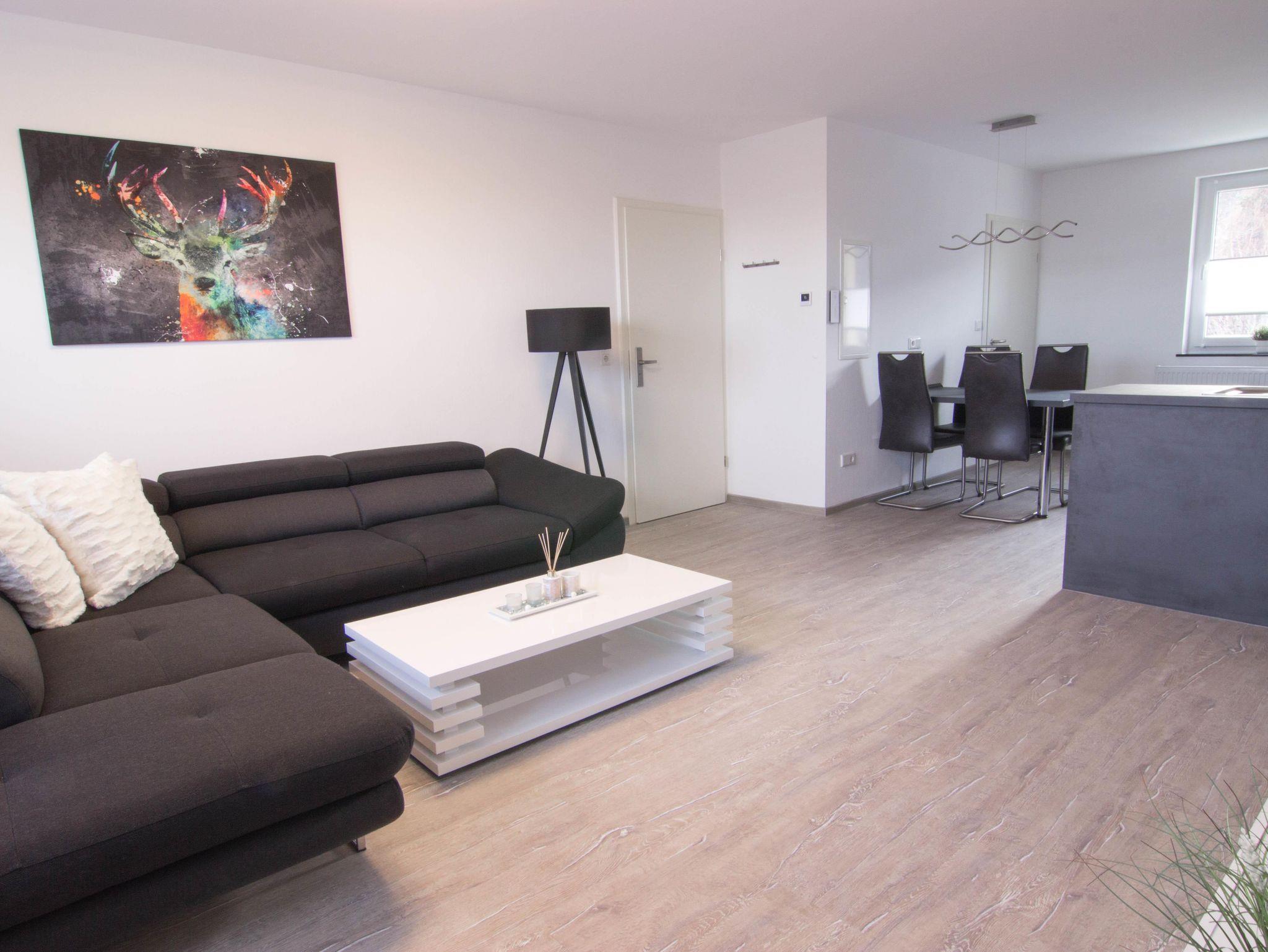 Jede 65 qm große Wohnung besitzt eine komplett ausgestattete Wohnküche mit Geschirrspüler,Kaffeemaschine,Wasserkocher,Toaster,Ceranfeld,Backofen,Kühlschrank mit Gefrierfach u Mikrowelle. Der Wohnbereich ist mit Fußbodenheizung,Eckcouch u Smart-TV(inkl. Magenta-TV)ausgestattet.