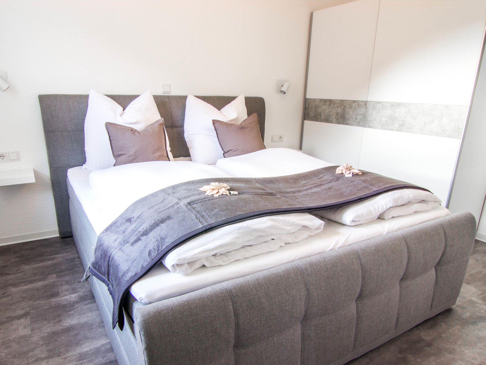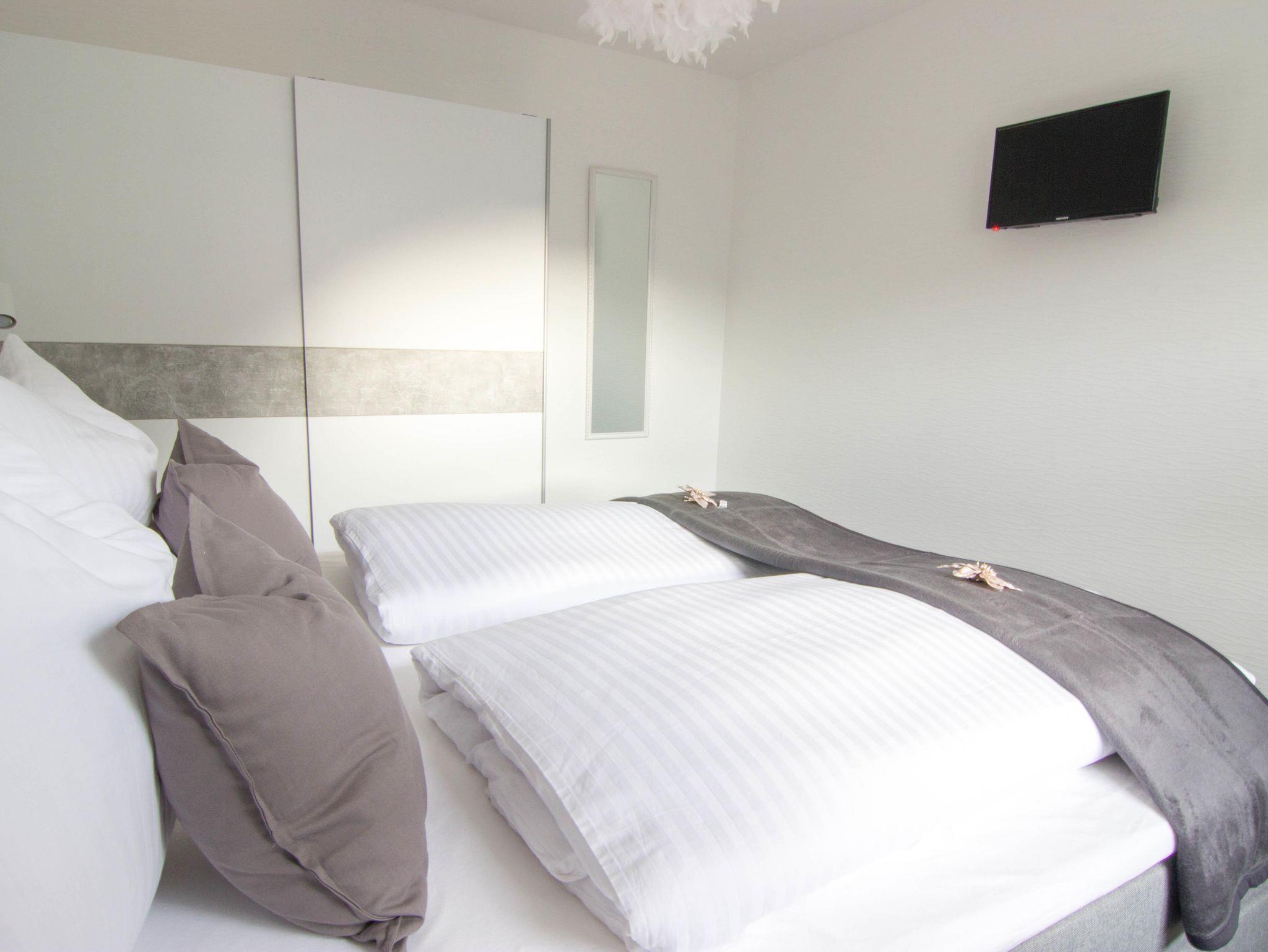 • Zwei separate Schlafzimmer mit Boxspringbett (180x200), Kleiderschrank und TV