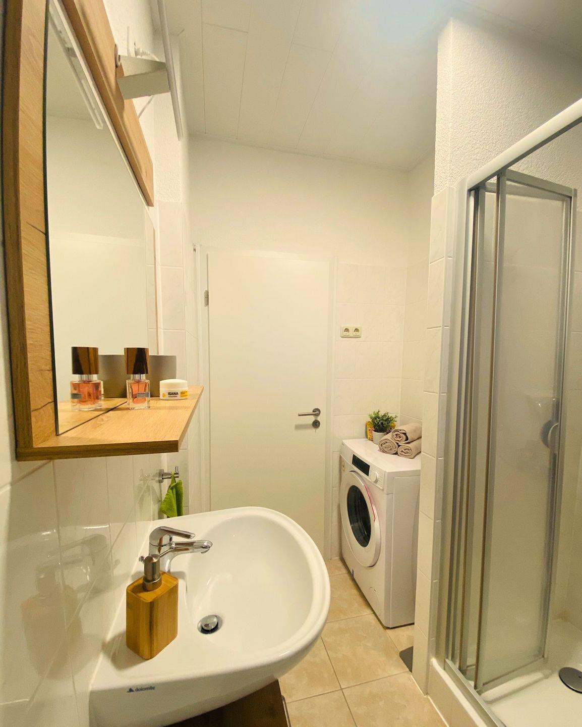 Nach ausgiebigen Wanderungen u.Ä. können unsere Gäste sich im Duschbad erfrischen. Zudem können Sie von der vorhandenen Waschmaschine Gebrauch machen.