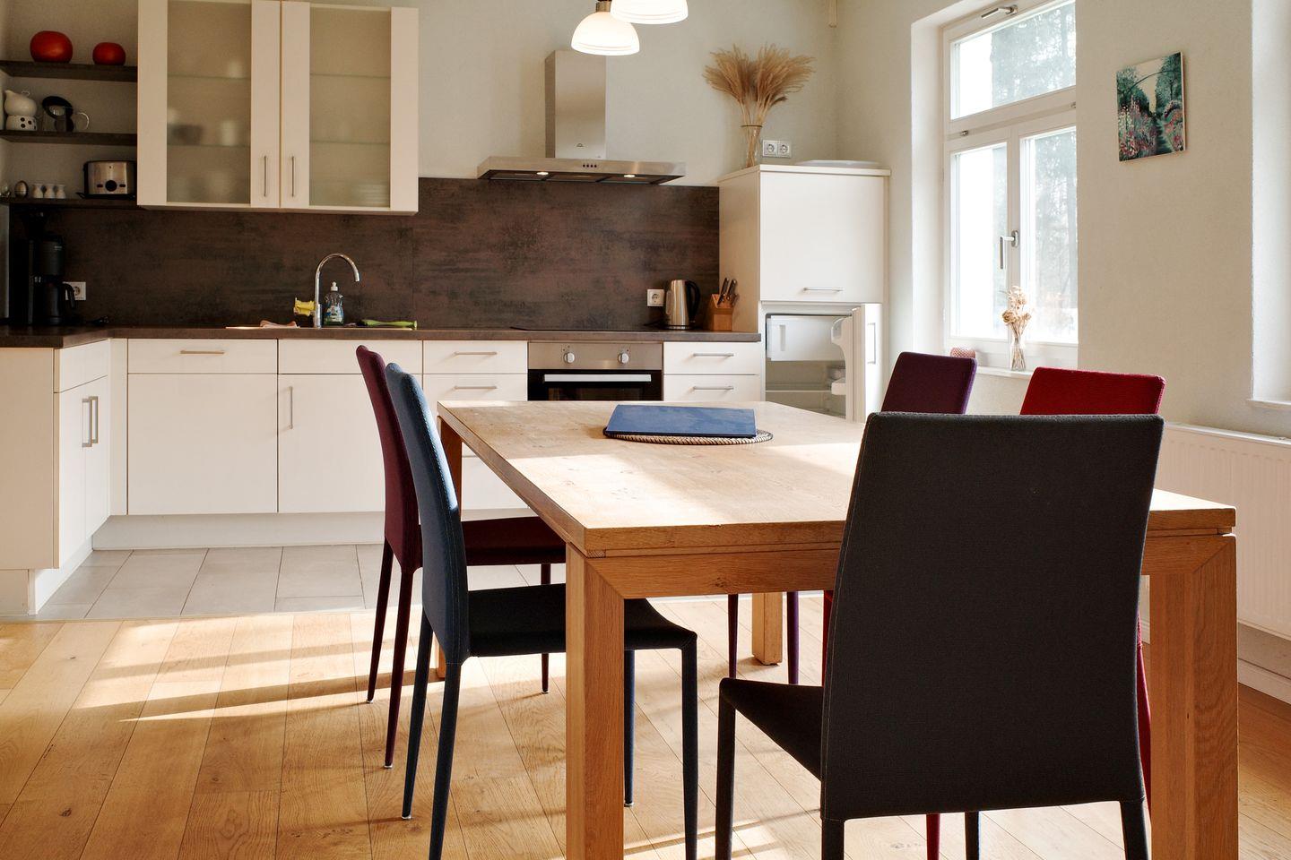- 3 voll ausgestattete Wohnküchen, darunter eine mit großem Esstisch für bis zu 12 Personen