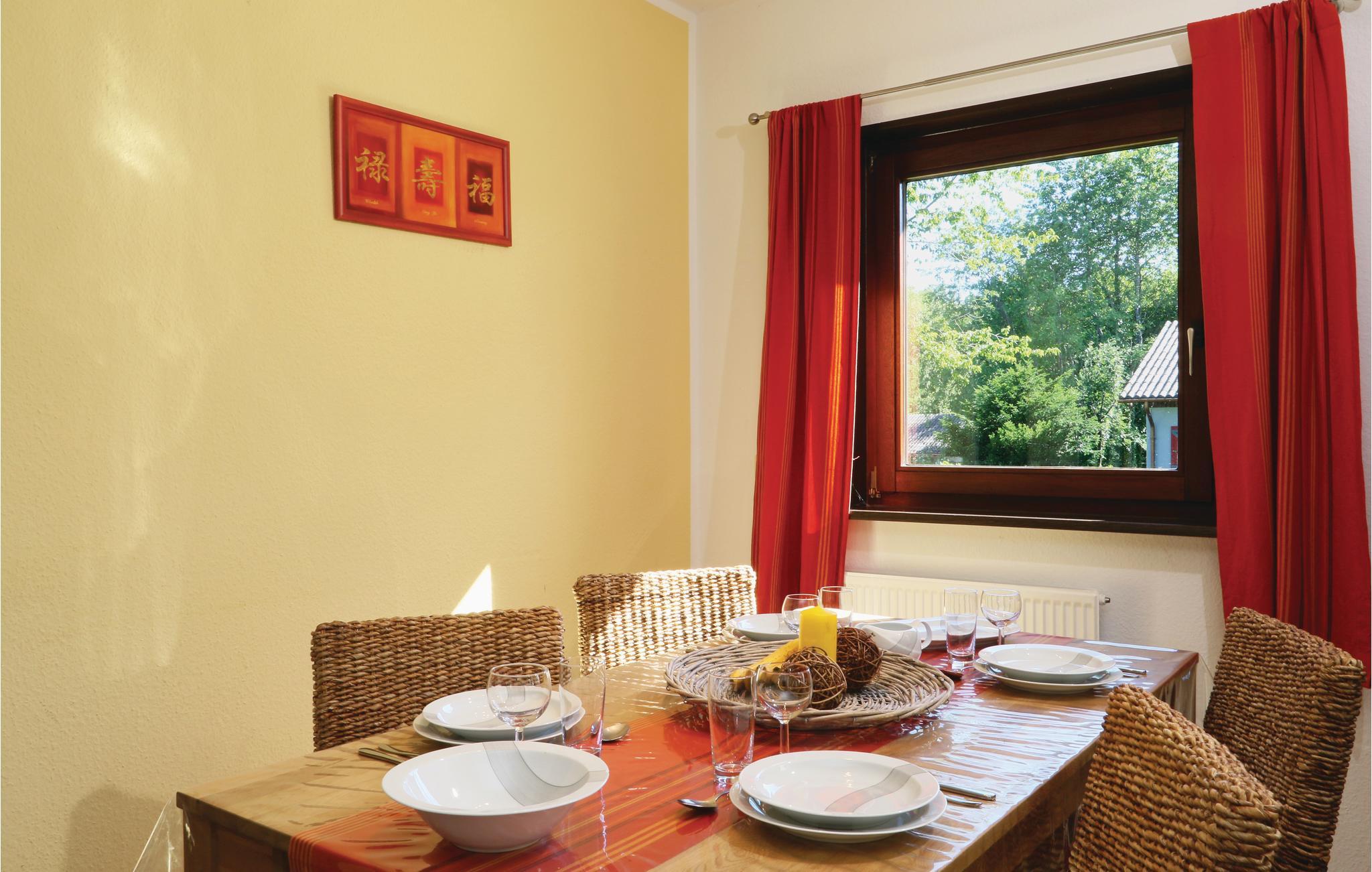 Tilbring jeres ferie i dette smukke og farverige hus i ferieparken Himmelberg, højt beliggende over kurbyen Thalfang. Huset ligger i et plan og er moderne indrettet. Det fuldudstyrede køkken lader ingen ønsker uopfyldt. Huset er omgivet af en stor naturgrund, hvor jeres børn kan lege. På den overdækkede terrasse, der hører til huset, kan I slappe af eller indtage måltider sammen med familien. I ferieparken er der en tennishal og et fitnesscenter, som I kan bruge mod betaling. I kan desuden se frem til at besøge den tilstødende svømmehal.
