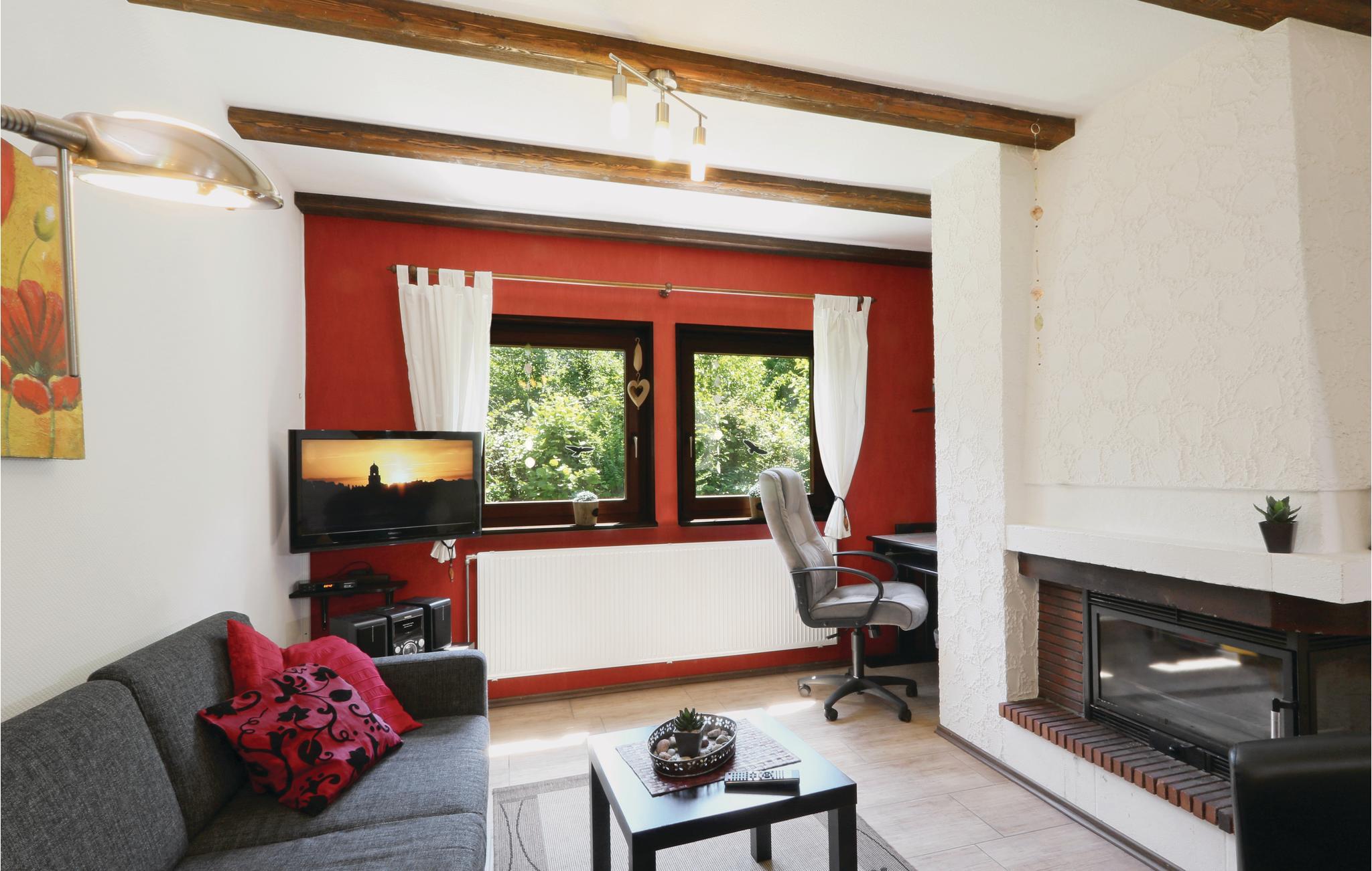 Dette feriehus ligger roligt, omgivet af en skøn naturgrund, i ferieparken Himmeælberg, ovenover kurbyen Thalfang. Det kærligt indrettede feriehus har et åbent opholds- og spiseområde med rustikal brændeovn til hyggelige aftener. I husets udstyr kombineres tradition med mange moderne elementer, som for eksempel det fuldudstyrede køkken, hvor der findes komfortable køkkenredskaber.