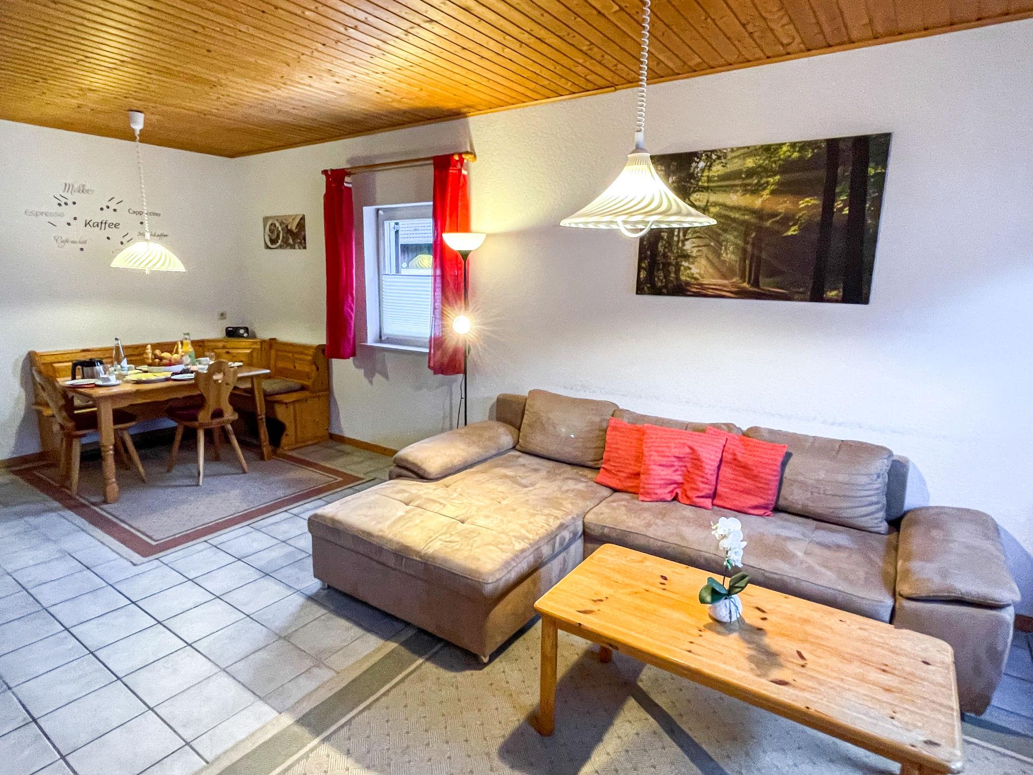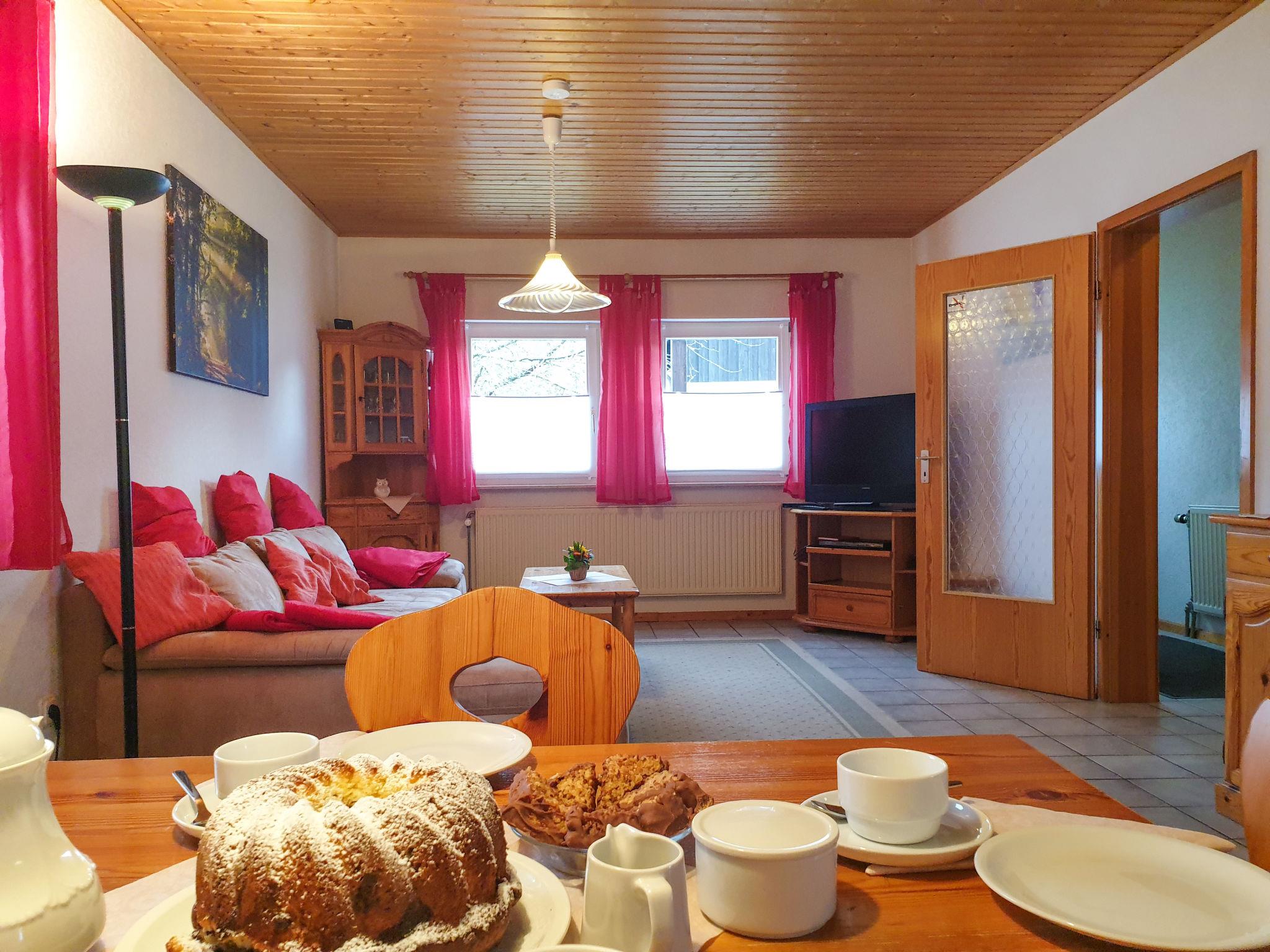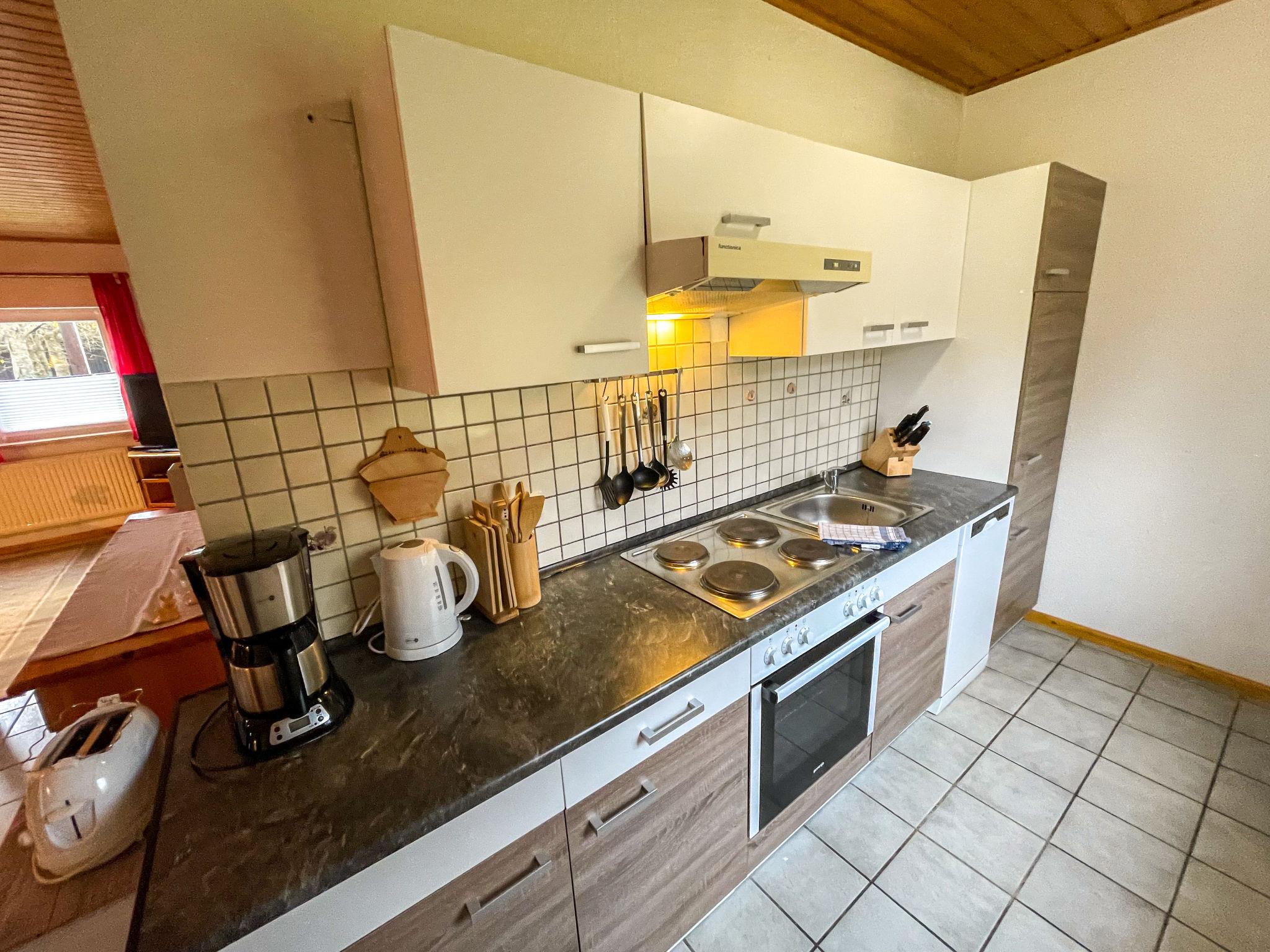"Haus Tausendschön", 3-room house 70 m2, on the ground floor. Comfortable and cosy furnishings: living/dining room 25 m2 with satellite TV (flat screen), CD-player and DVD. 2 rooms 9 m2, each room with 2 beds (90 cm, length 200 cm). Open kitchen 6 m2 (4 hot plates, oven, dishwasher, microwave, freezer, electric coffee machine). Shower/WC. Gas heating. Small terrace 6 m2 partly roofed, garden 300 m2, lawn 250 m2. Terrace furniture, barbecue, box-room. Facilities: children's high chair, hair dryer. Internet (WiFi, free). Parking. Please note: non-smoking house. Maximum 1 pet/ dog allowed. Smoke alarm.