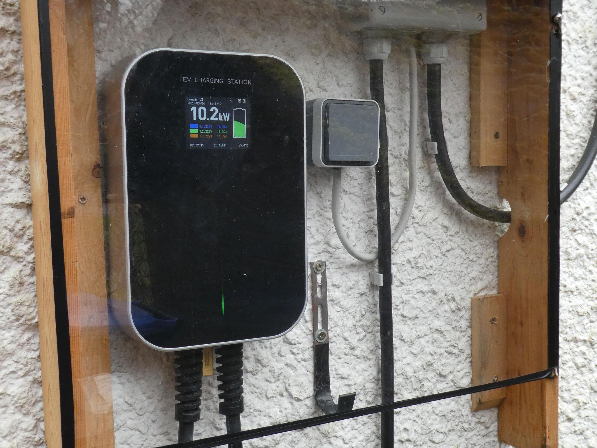 Überdachte Terrasse 9m², Parkplatz vor dem Haus. Elektroauto-Ladestation mit 11 kW.