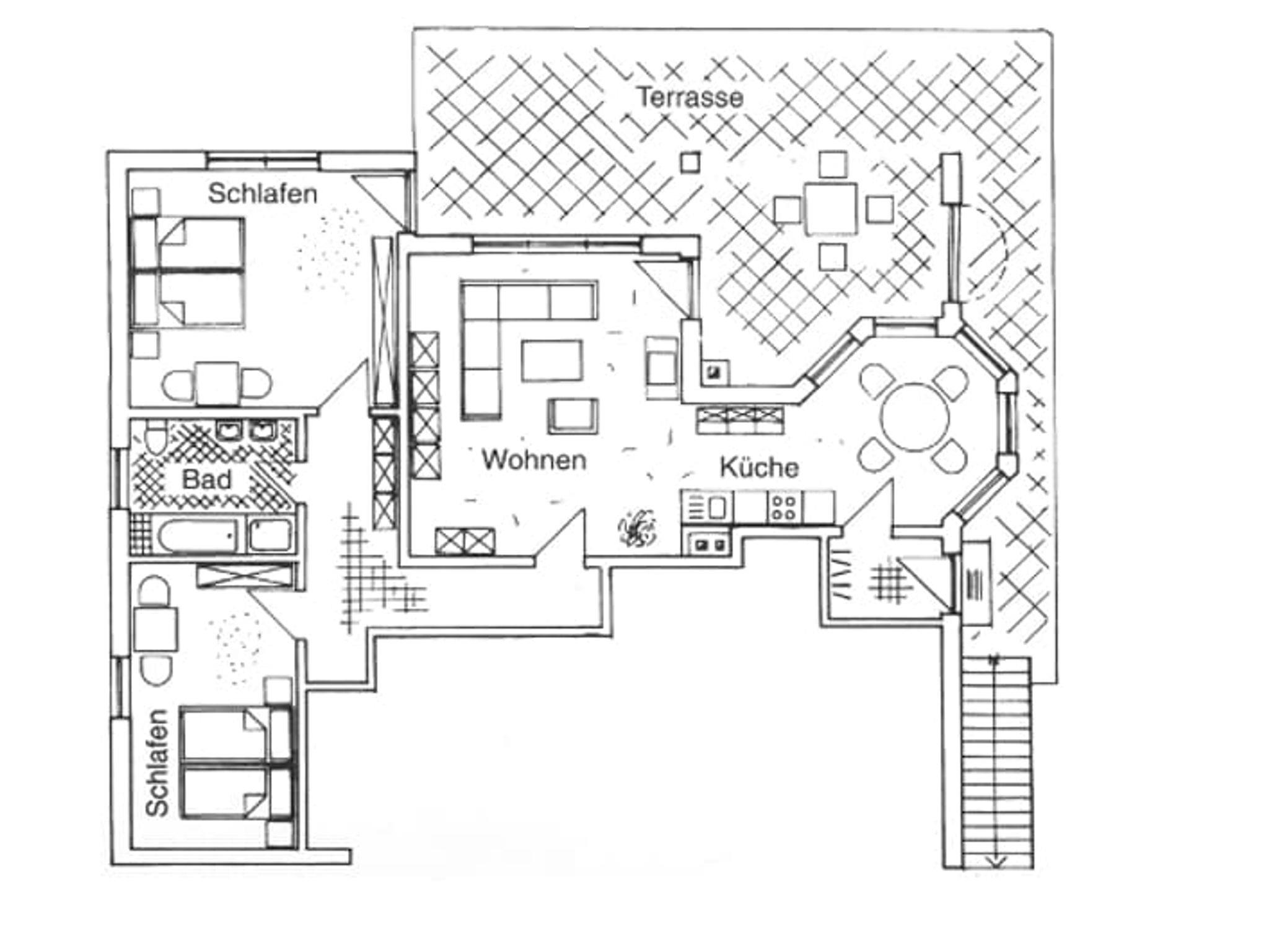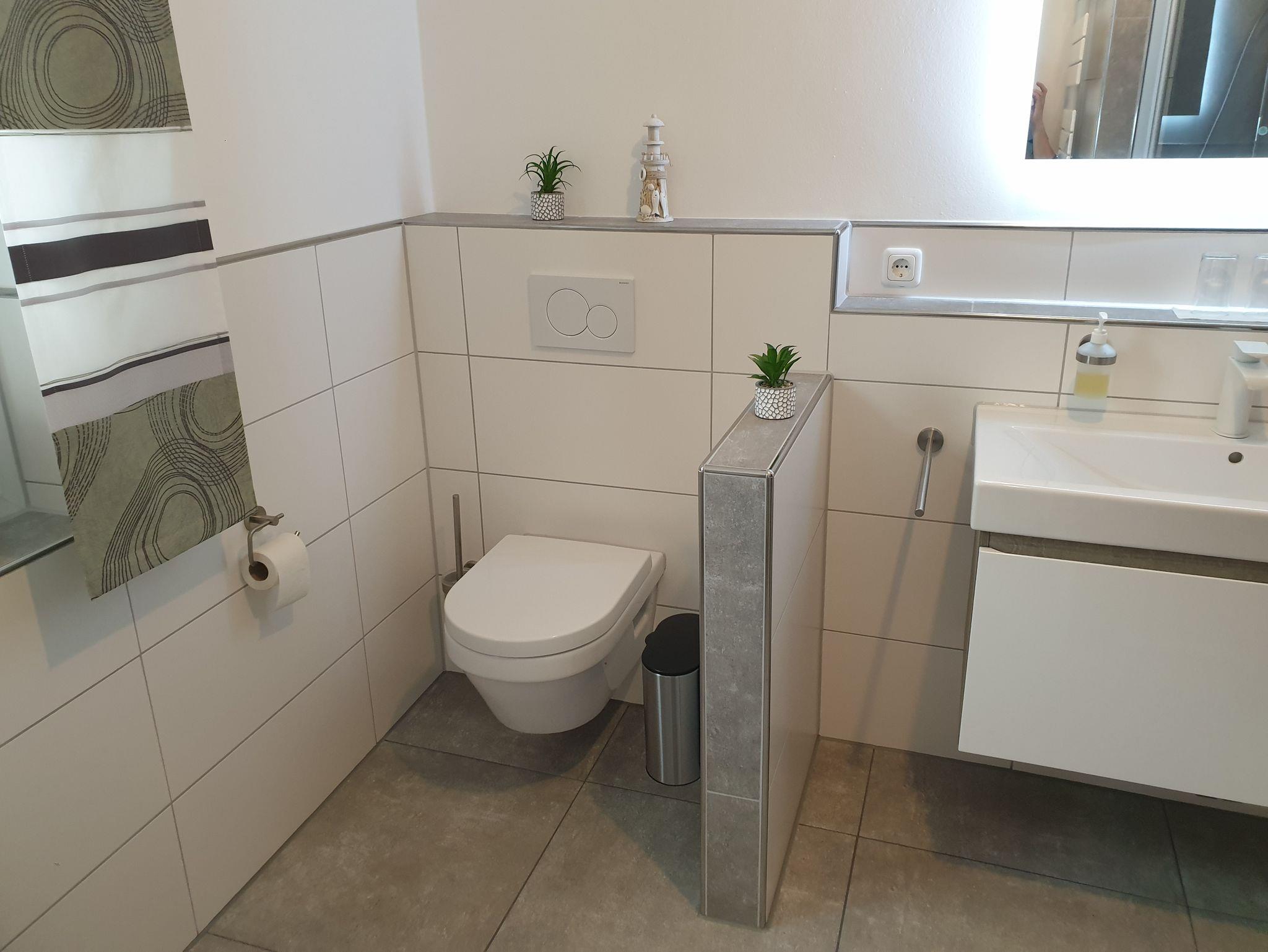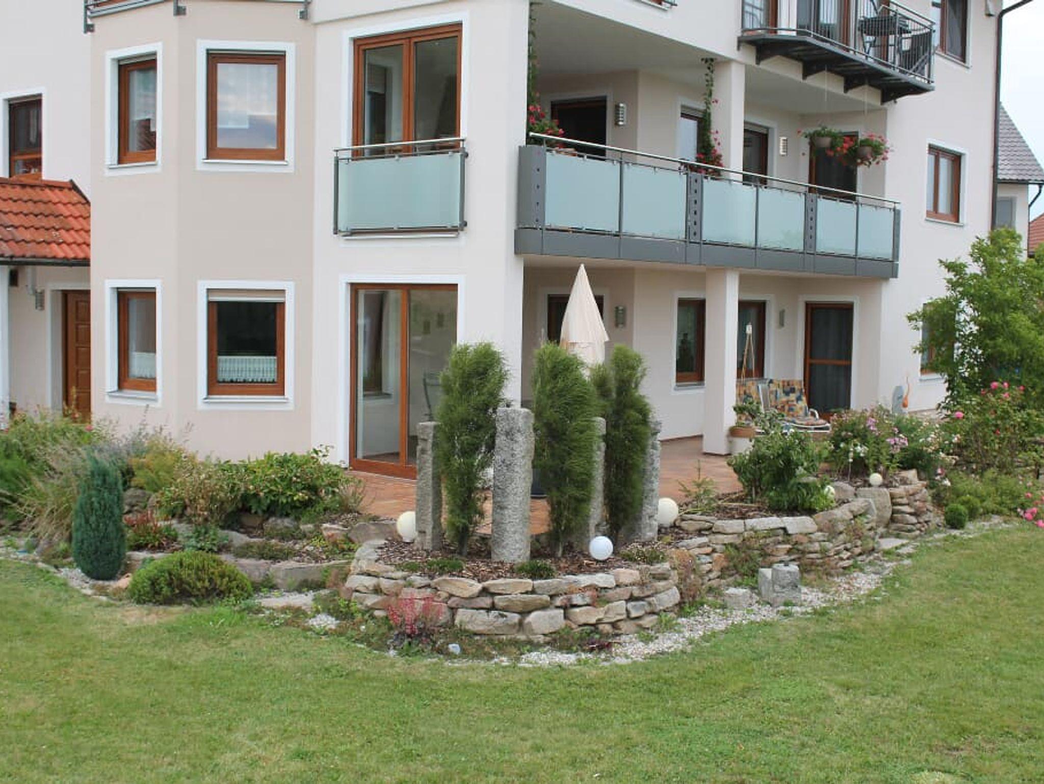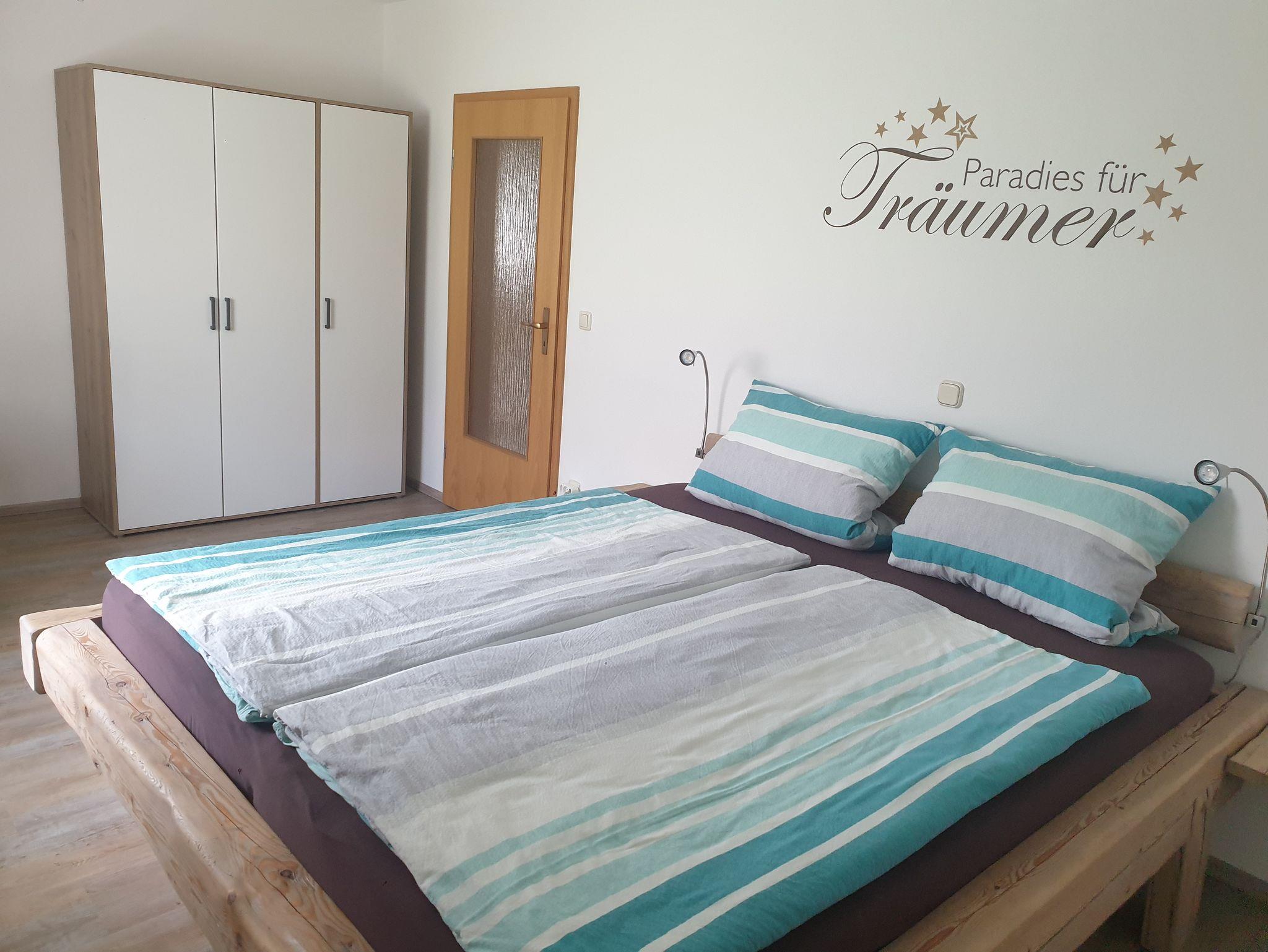 Unsere 108qm große Ferienwohnung im Parterre ist sehr komfortabel ausgestattet. Die Wohnung verfügt über einen separaten Eingang, eine Wohnküche, ein Wohnzimmer mit Couch und Flachbild-TV, 2 Schlafräume, ein Bad mit WC und ebenerdiger Dusche und eine überdachte Terrasse. Die Wohnküche ist ausgestattet mit Backofen, Glaskeramikfeld, Mikrowelle, Geschirrspülmaschine, Kühlschrank mit Gefrierfach, Toaster, Kaffeemaschine und Kaffeepadmaschine, elektrische Brotmaschine, Wasserkocher und Eierkocher. Die beiden Schlafräume sind mit einem Doppelbett 1,80m x 2,00m mit einem erhöhten Betteinstieg ausgestattet und eines zusätzlich mit einem Einzelbett. Unsere Bettdecken haben eine Überlänge (155cmx220cm). Von der großen überdachten Terrasse zur Alleinnutzung haben Sie einen herrlichen Blick ins Tal! Auf der Terrasse finden Sie eine Grillmöglichkeit vor. In der Unterkunft erwartet Sie kostenfreies WLAN. Im Garten befindet sich ein Spielplatz für die Kinder. Für die kleinen Gäste ist ein Gitterbett und ein Hochstuhl vorhanden.