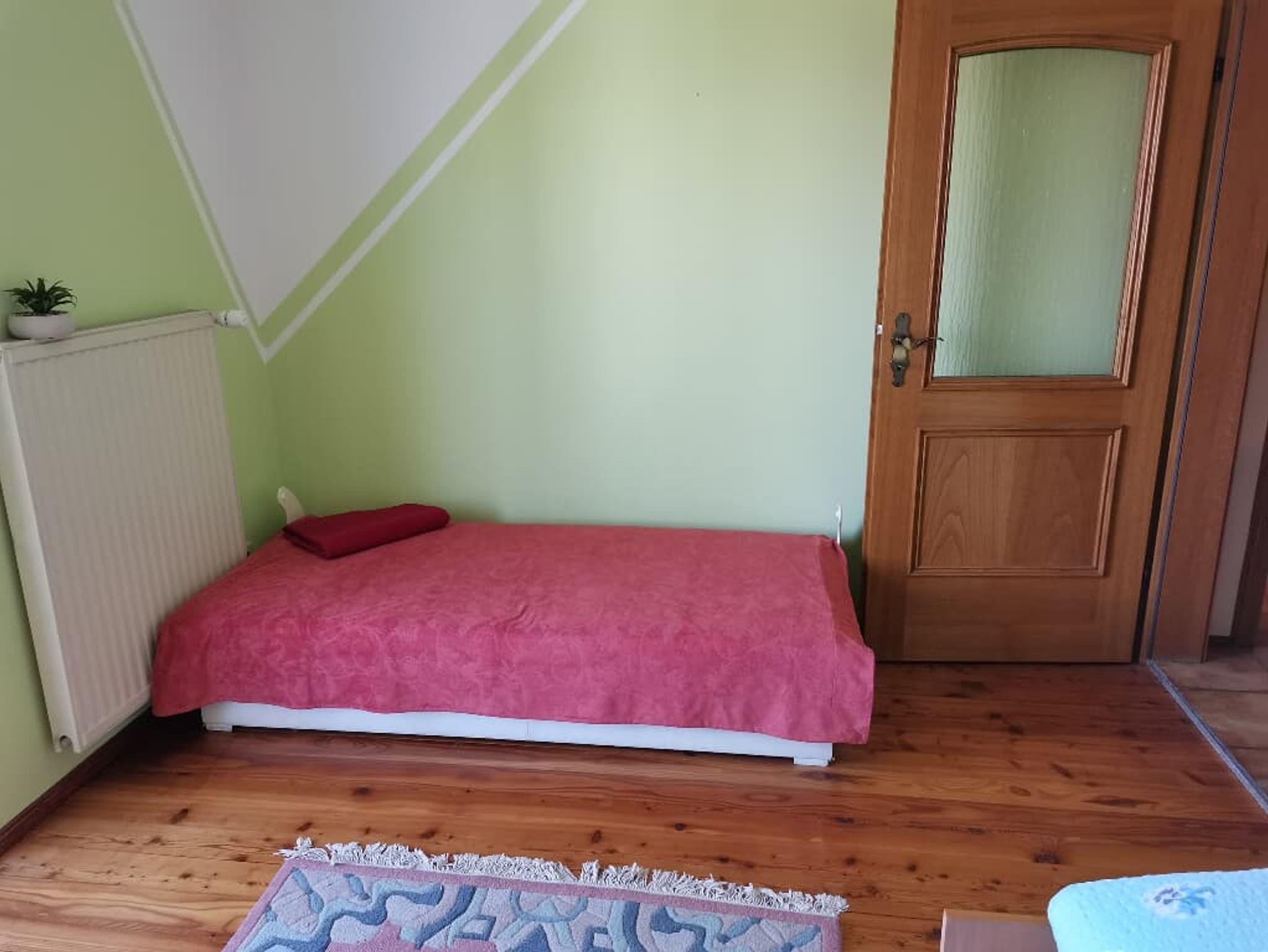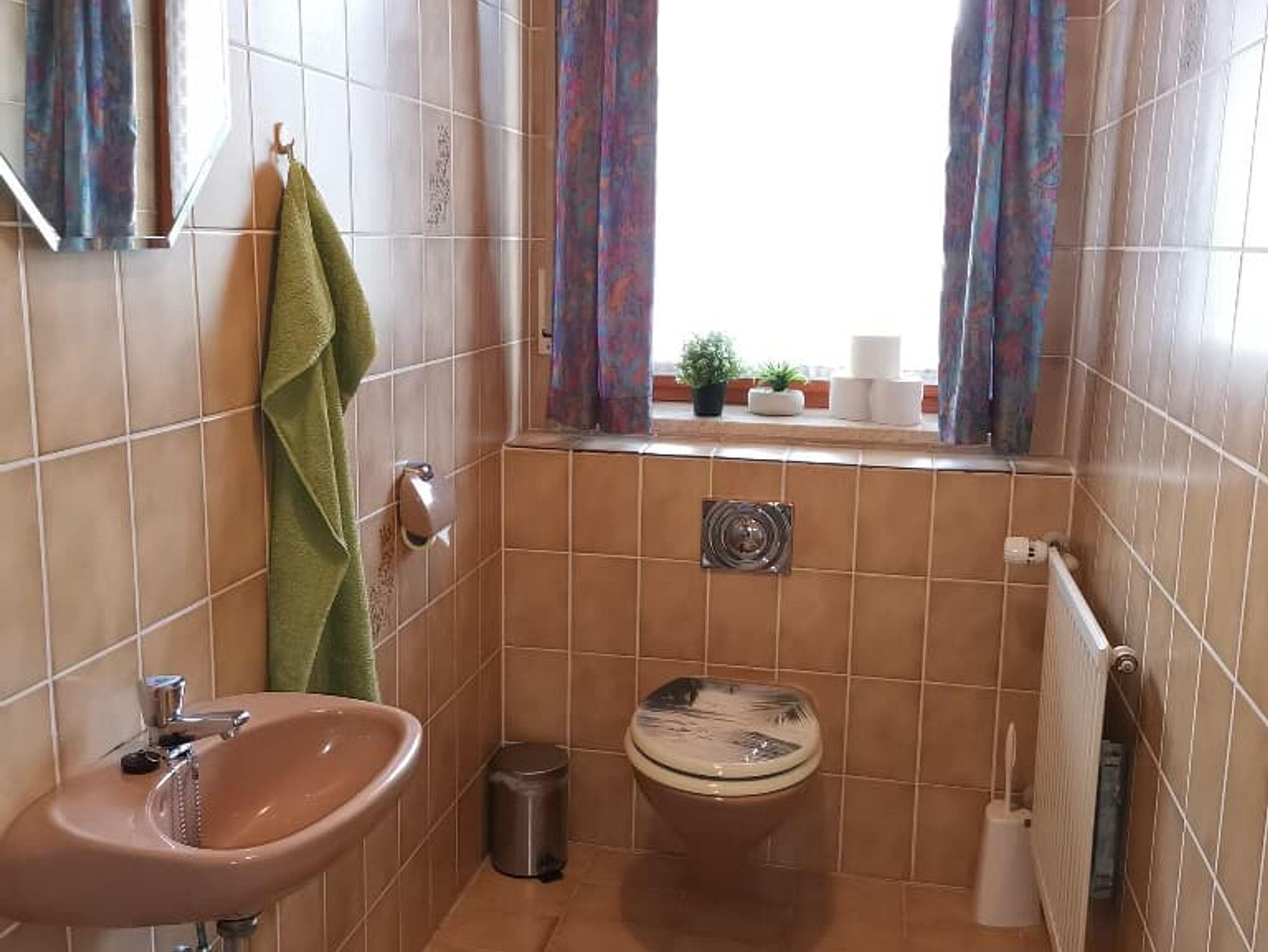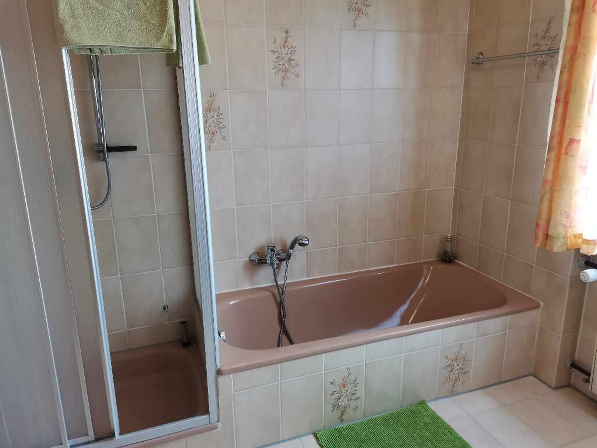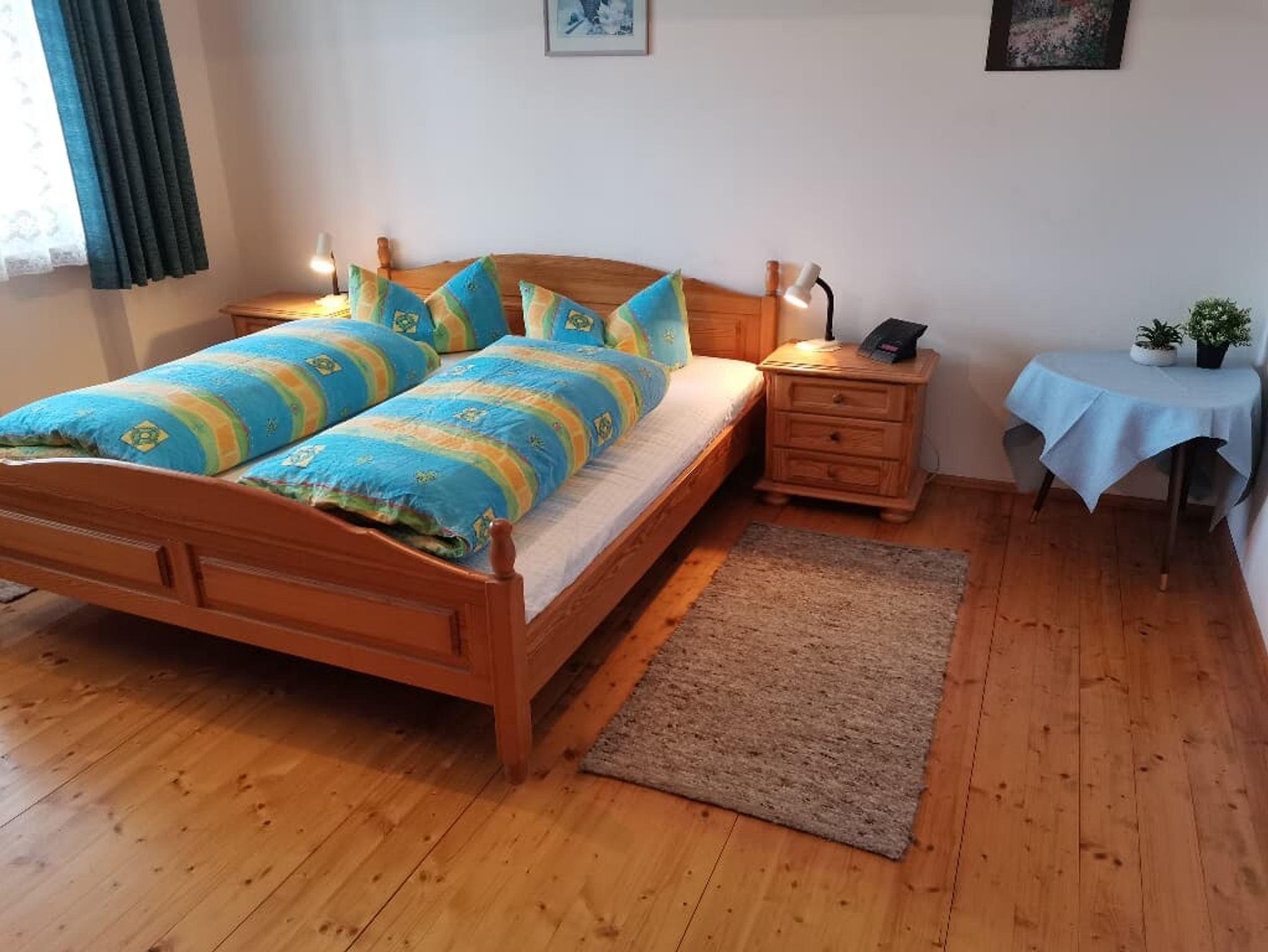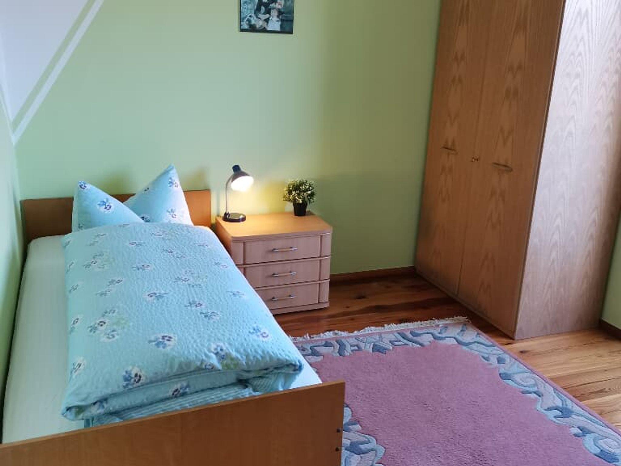 Unsere Ferienwohnung im Erdgeschoss mit 100 m² Wohnfläche bietet Platz für bis zu 6 Personen. Das gemütliche Wohnzimmer mit Flachbild-TV lädt zum Verweilen ein und bietet Zugang zum Balkon. Die komplett ausgestattete Küche mit Kühlschrank, Gefrierfach, Herd, Backofen, Toaster und Kaffeemaschine lässt keine Wünsche offen. Im gemütlichen Esszimmer mit Kachelofen und Eckbank können Sie den Tag in gesellschaftlicher Runde ausklingen lassen. Die Wohnung verfügt über 3 geräumige Schlafzimmer mit zwei Doppelbetten, einem Einzelbett und zusätzlicher Schlafcouch. Das Badezimmer ist ausgestattet mit Dusche, Badewanne und großem Doppelwaschbecken. Vor allem im Sommer können Sie entspannte Grillabende in unserem großen Garten verbringen. Ebenso stehen Spielmöglichkeiten für Kinder bereit, sowie eine Tischtennisplatte. Das WLAN und den Parkplatz vor dem Haus können Sie kostenfrei nutzen. Haustiere sind ebenso herzlich willkommen.