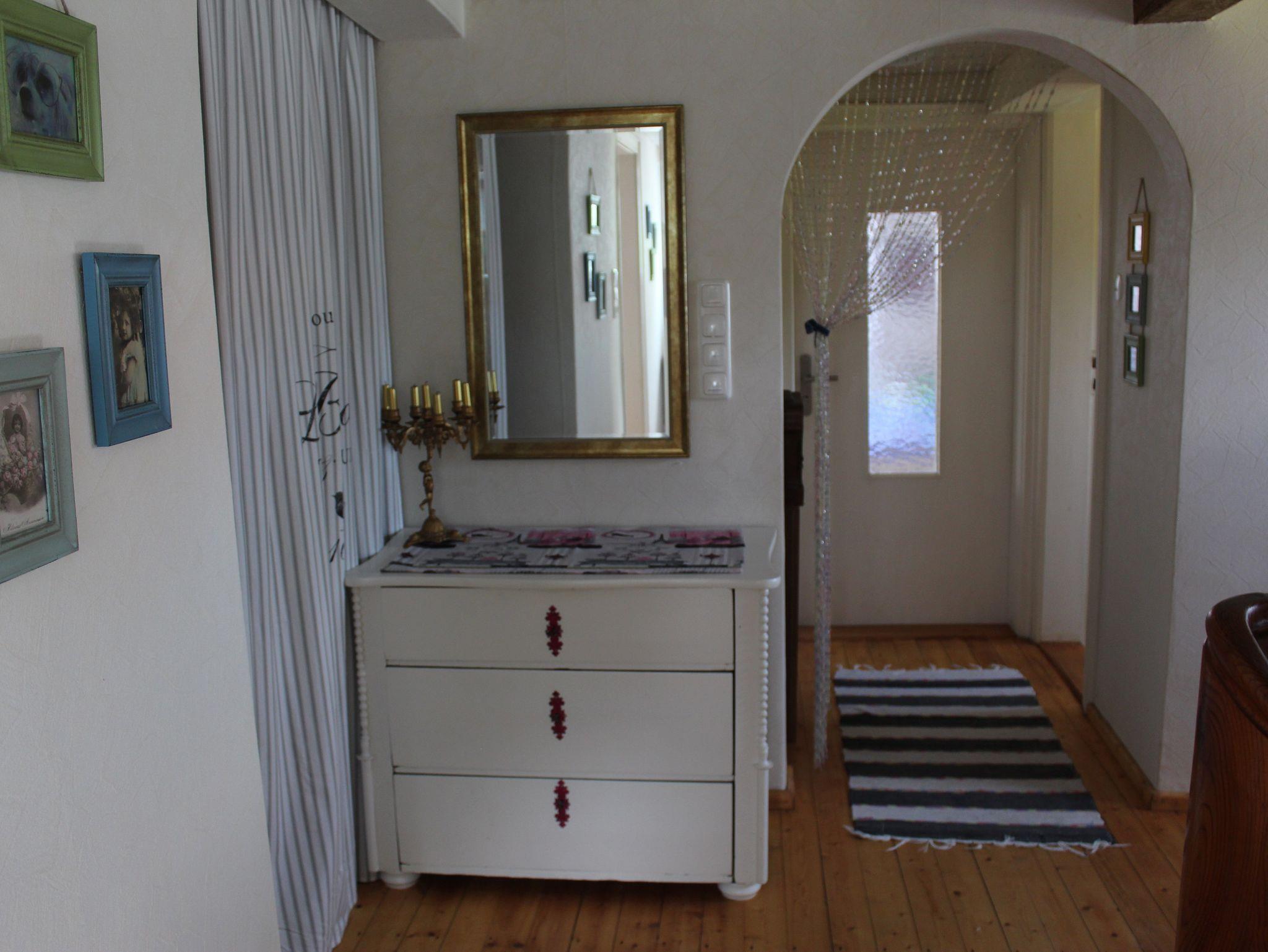 Im Flur befindet sich eine kl. Garderobe, sowie ein kl. Garderobenschrank. Außerdem bieten wir unseren Gästen eine Picknickdecke, eine Stranddecke (für einen Besuch des örtlichen Mainstrandes - teilweise mit Sand (besonders schön für Kinder) - dort ist auch ein Campingplatz mit Bootshafen und Anlegestelle), sowie eine Erste-Hilfe Tasche.