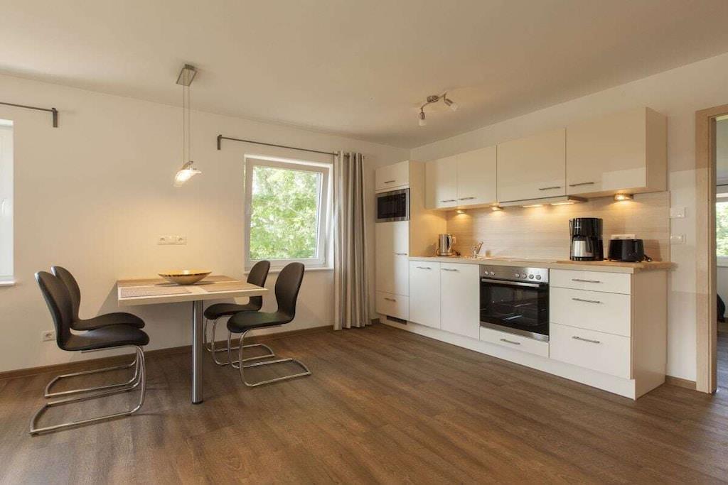 Die Fewo 2 ist für max. 4 Personen (ca. 55m²) geeignet. Kombinierter Wohn- und Essbereich mit großer bequemer Couch, Moderne Küchenausstattung, Spülmaschine, Ceranfeld, Kühlschrank mit Gefrierfach, Kaffeemaschine, Wasserkocher und diversen Küchenutensilien ausgestattet. Das Bad verfügt über eine ebenerdiger Dusche und WC. Die 2 Schlafzimmer sind jeweils mit einem Doppelbett (1,80m x 2,00m ) Kleiderschrank und Nachttischkonsolen eingerichtet. Alle Räume sind mit Fußbodenheizung versehen. 250 Mbit/s Glasfaser-Anschluss (WLAN-Zugangsdaten erhalten Sie vor Ort) Parkplatz PKW direkt am Haus und überdachte Fahrradabstellmöglichkeit sowie Terrasse mit Grill. Ein Kindereisebett und einen Hochstuhl können für je 10,00EURO dazu gebucht werden.