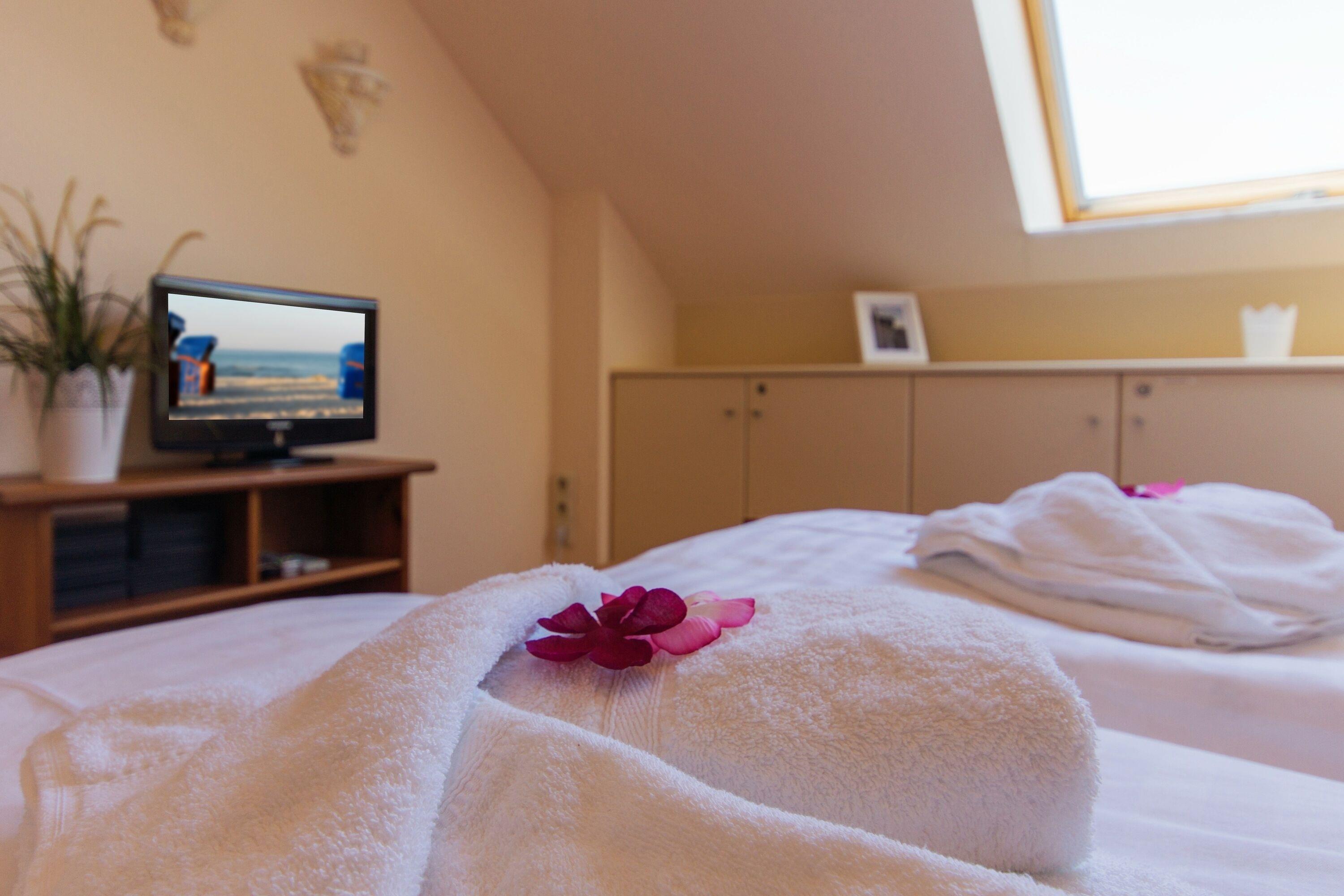 Komfortabel ausgestattet und geschmackvoll-maritim eingerichtet finden Sie hier Ihr persönliches Urlaubsglück, für 2 bis 3 Personen auf ca. 55 m². Jeweils ein Flachbild-TV mit DVD-Player im lichtdurchfluteten Wohn- und Essbereich sowie im Schlafzimmer garantieren spannende Filmabende.