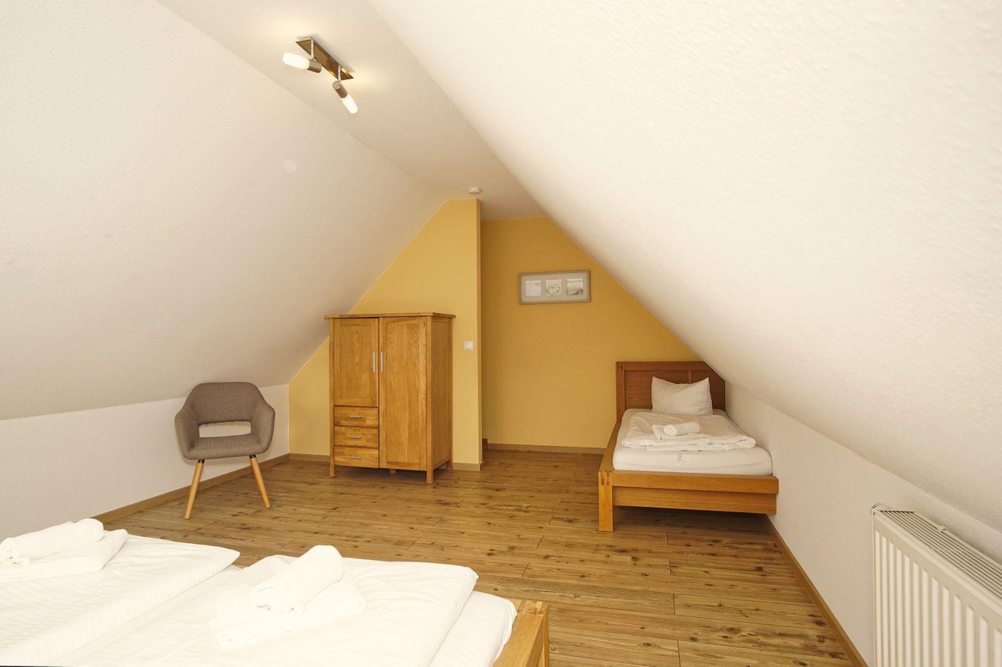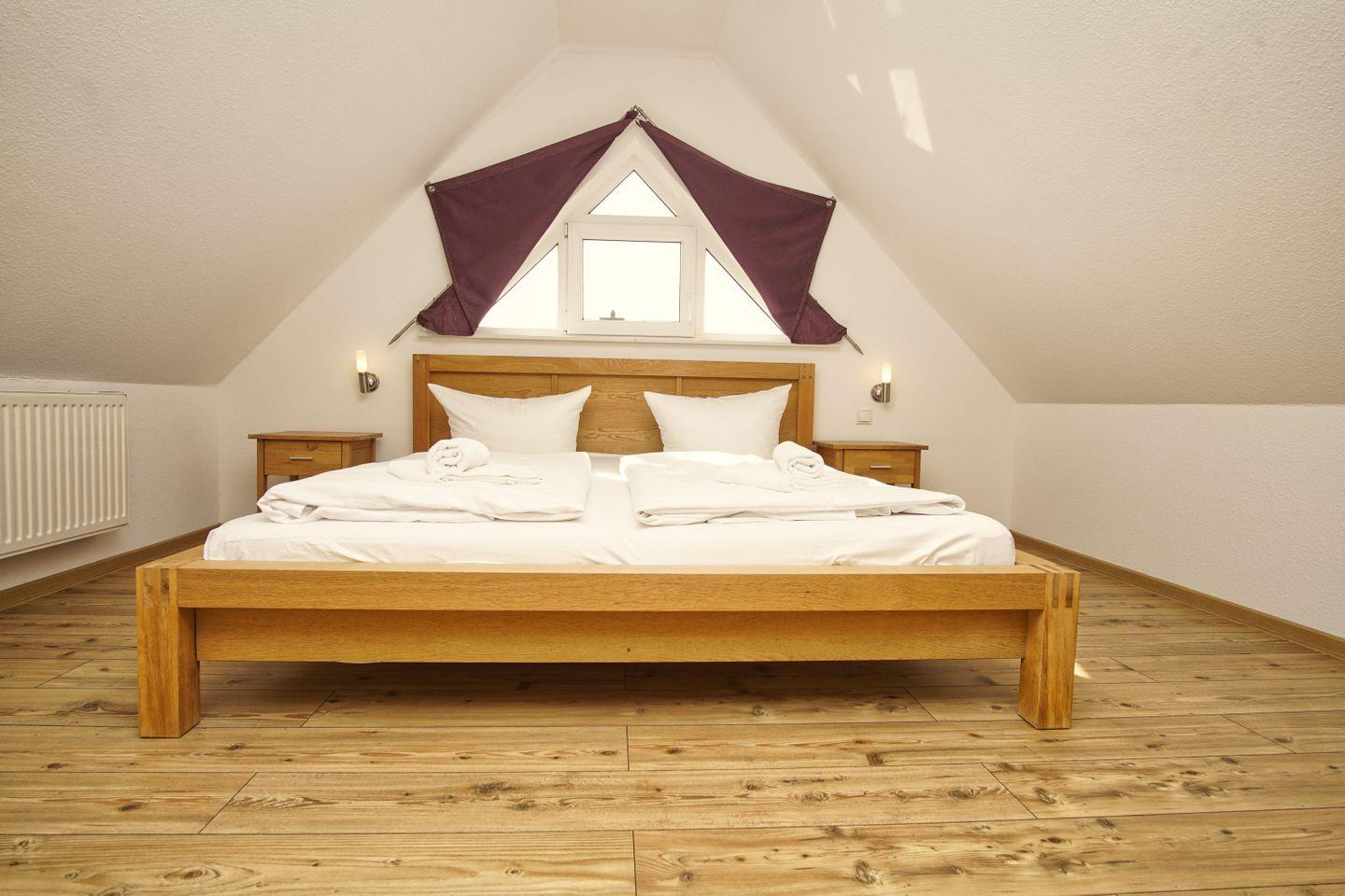SCHLAFEN // ein separates Schlafzimmer im OG mit einem bequemen Doppelbett und Kleiderschrank, zweites Schlafzimmer mit einem bequemen Doppelbett und Einzelbett im Dachgeschoss (leichte Dachschrägen) ++